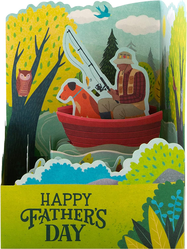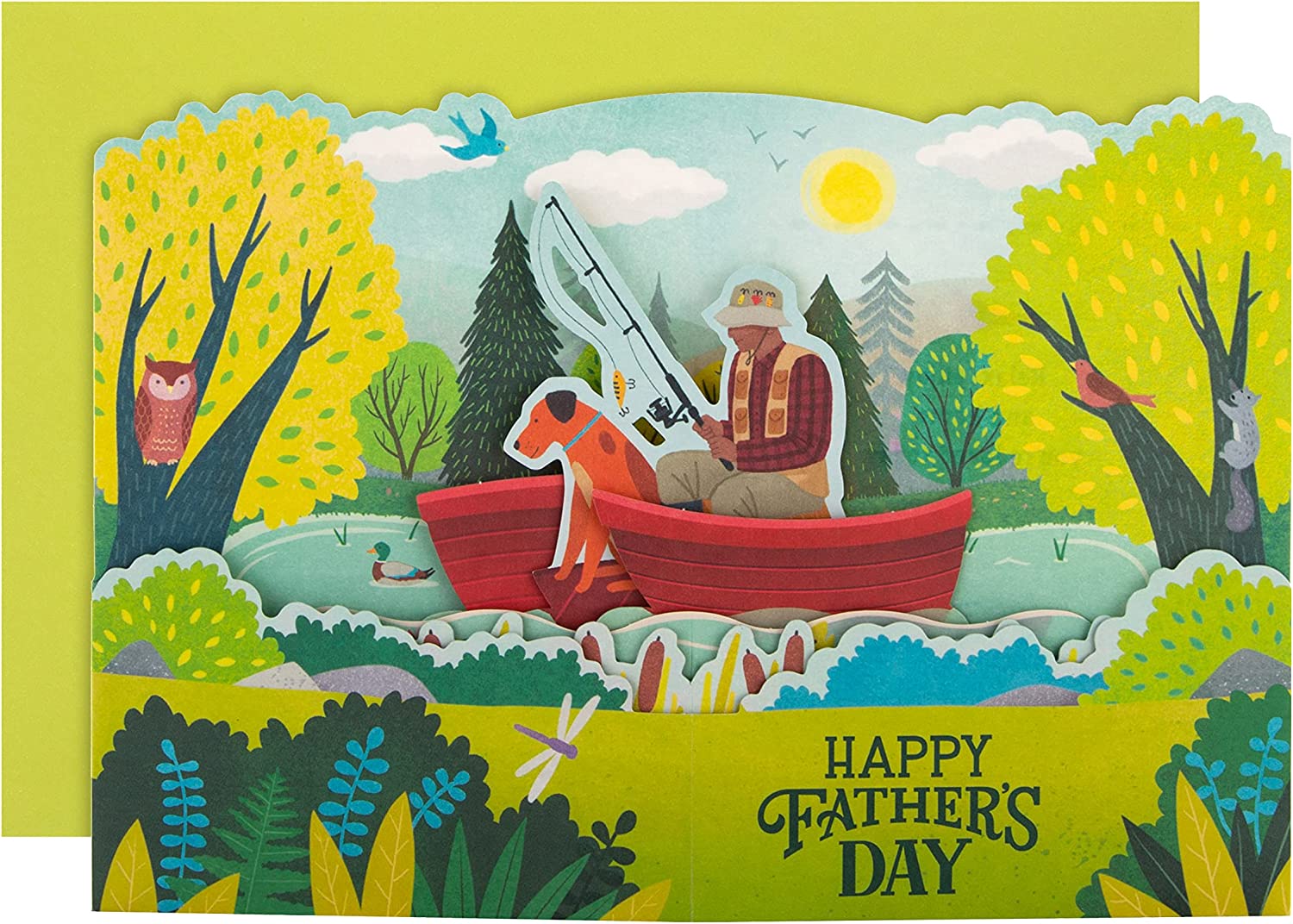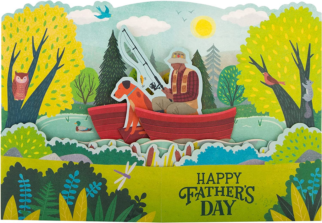 Father's Day Paper Wonder Card - 3D Relaxing Fishing Scene Design