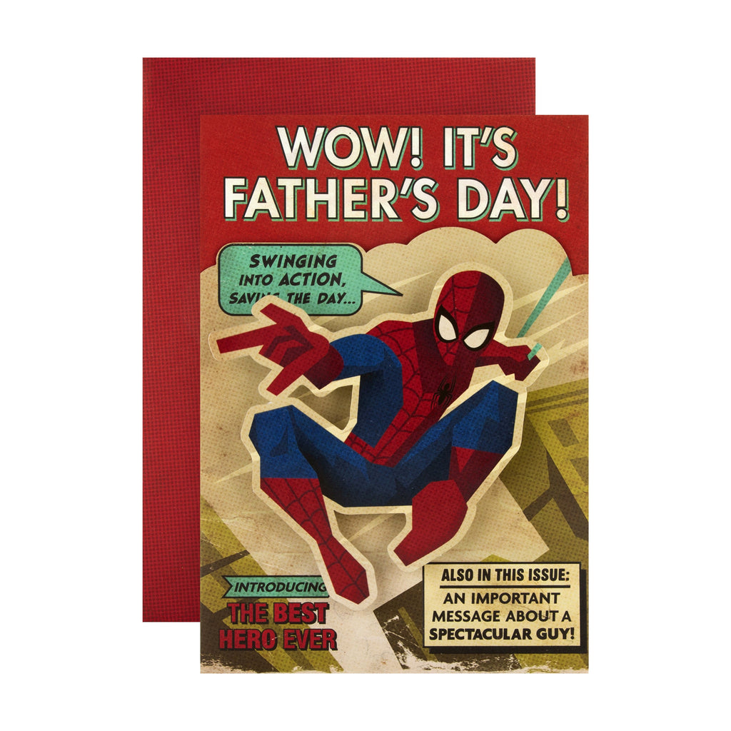 Celebrate your dad’s superpowers with Hallmark’s fantastic collection of Father’s Day Superhero cards. Our range includes personalised superhero cards featuring iconic characters like Superman, Batman, and Spider-Man, perfect for showing your dad he’s your hero. Choose from a variety of designs, including 3D pop-up cards, light up features and musical cards, all crafted with high-quality materials and vibrant artwork inspired by MARVEL and DC comics. Whether you’re looking for a card to celebrate your dad, father, step-dad or grandad, Hallmark has everything you need to make this Father’s Day unforgettable. Enjoy free delivery on orders over £30 and let your dad know he’s truly super with Hallmark.