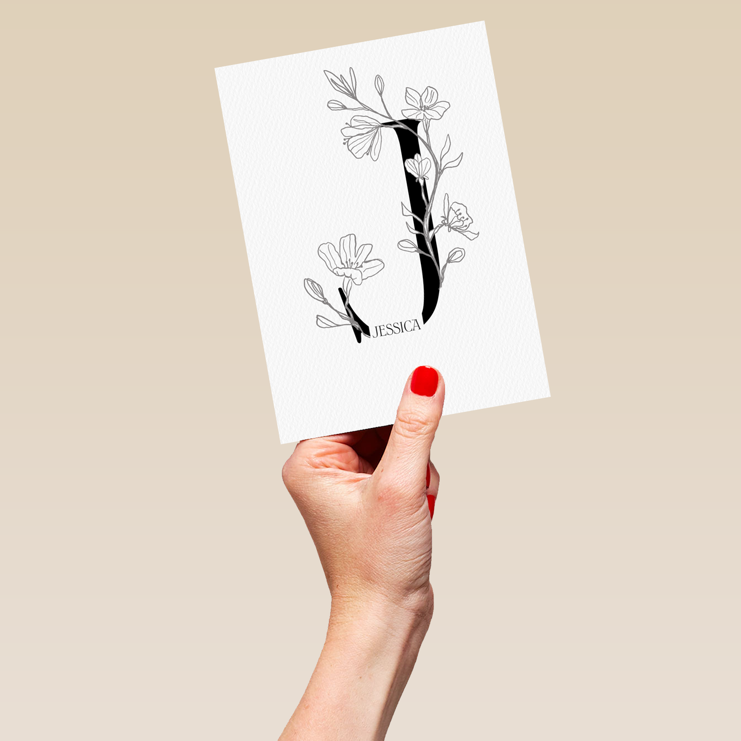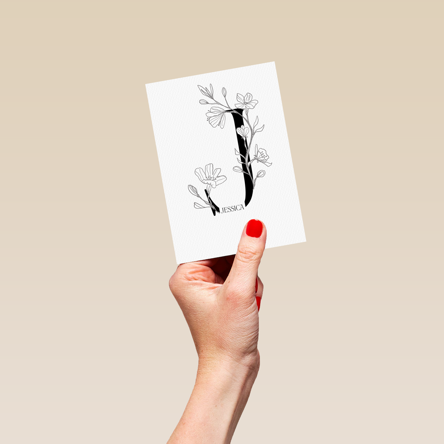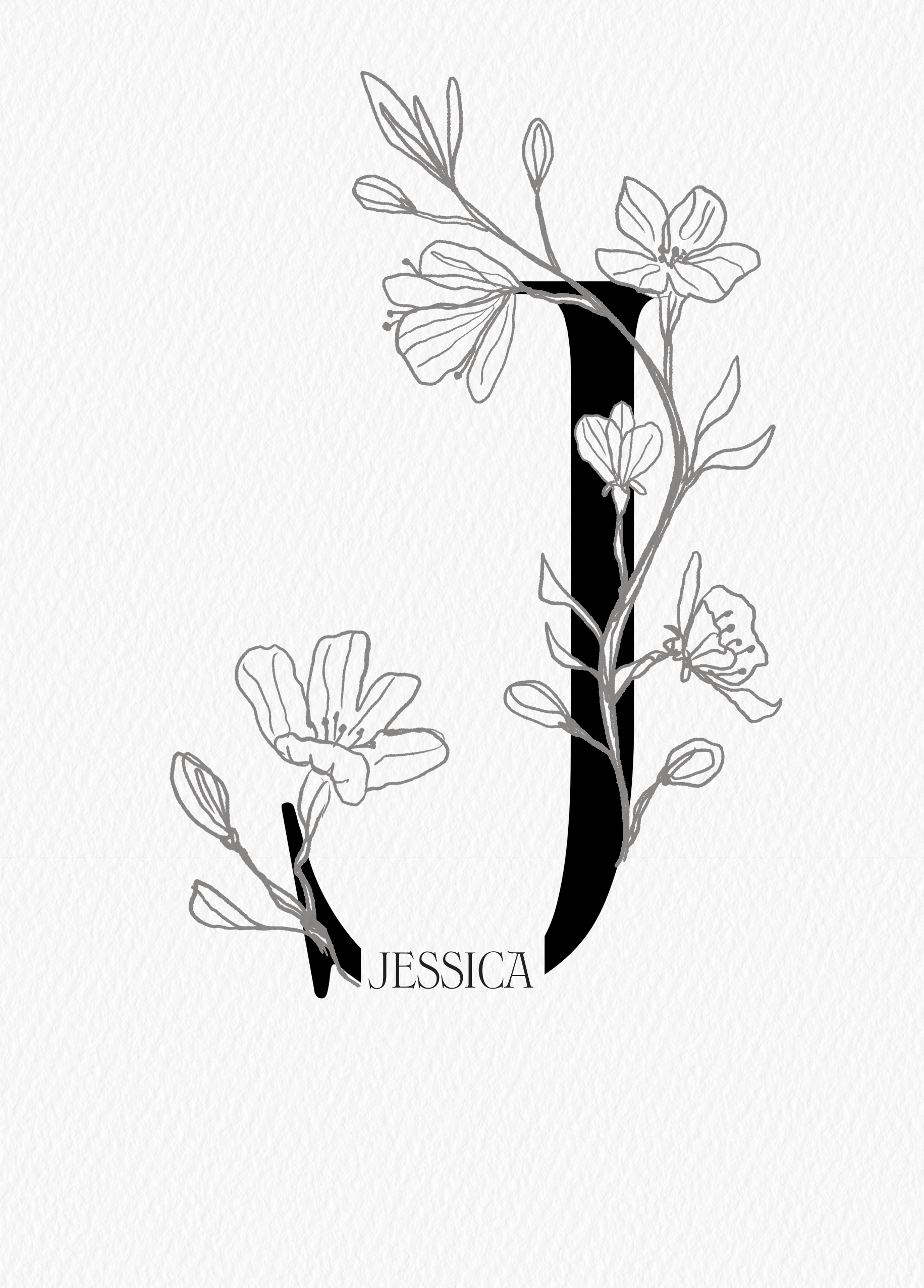 Printed on premium-quality board, this card features an illustrated floral embellished letter J, space to personalise a name, and comes complete with a co-ordinating white envelope.