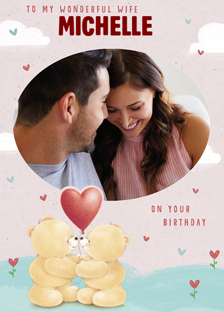 Make someone's special day even brighter with our delightful range of personalised birthday cards. From cute and cuddly designs to elegant and sophisticated options, our Forever Friends birthday cards are perfect for all ages. Add a personal touch with names, special messages, or upload a photo to create a unique card for your wife, husband, daughter and more.