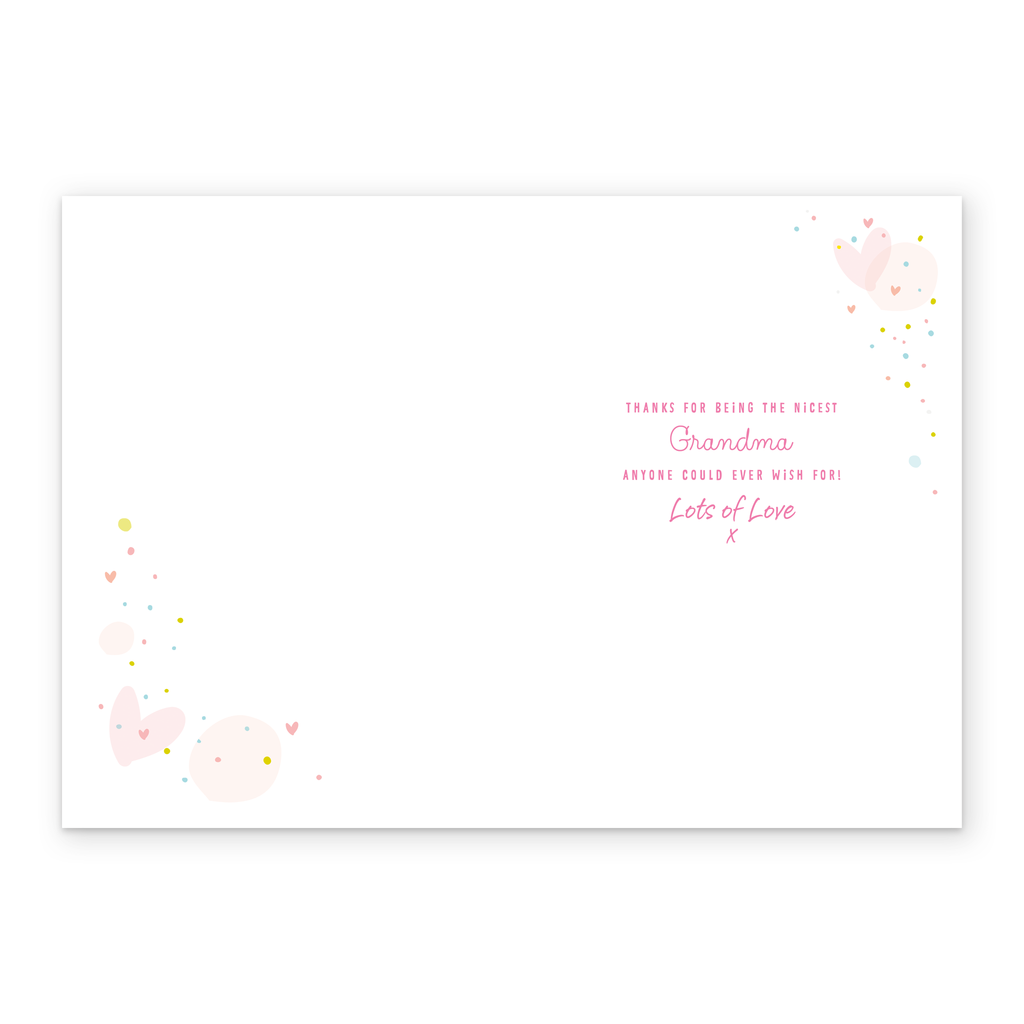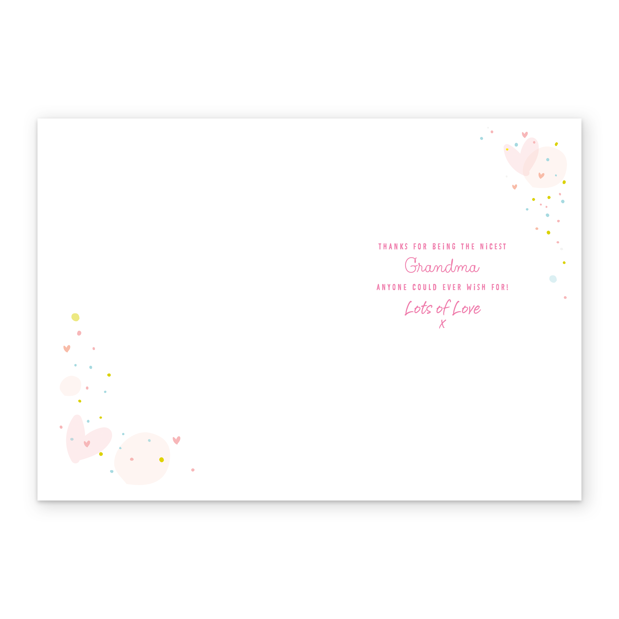 Message inside reads: Thanks for being the nicest Grandma anyone could ever wish for! Lots of love x