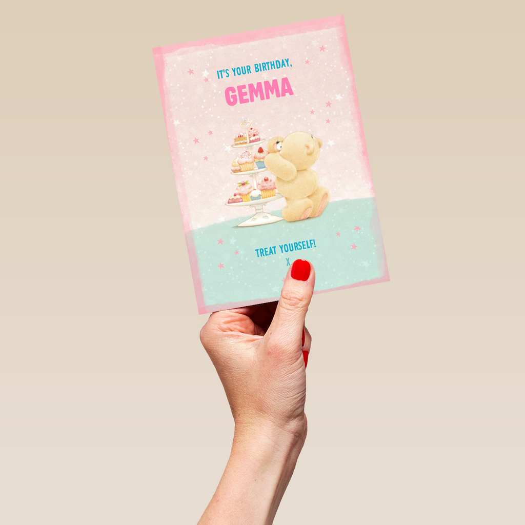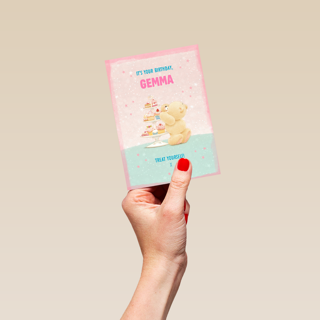 Show them you care with a personalised Forever Friends birthday card from Hallmark. Our bear cards are printed on premium quality, FSC®-certified card & delivered nationwide. This card is available as standard 12cm by 16.7cm and large 15.5cm by 21.6cm.