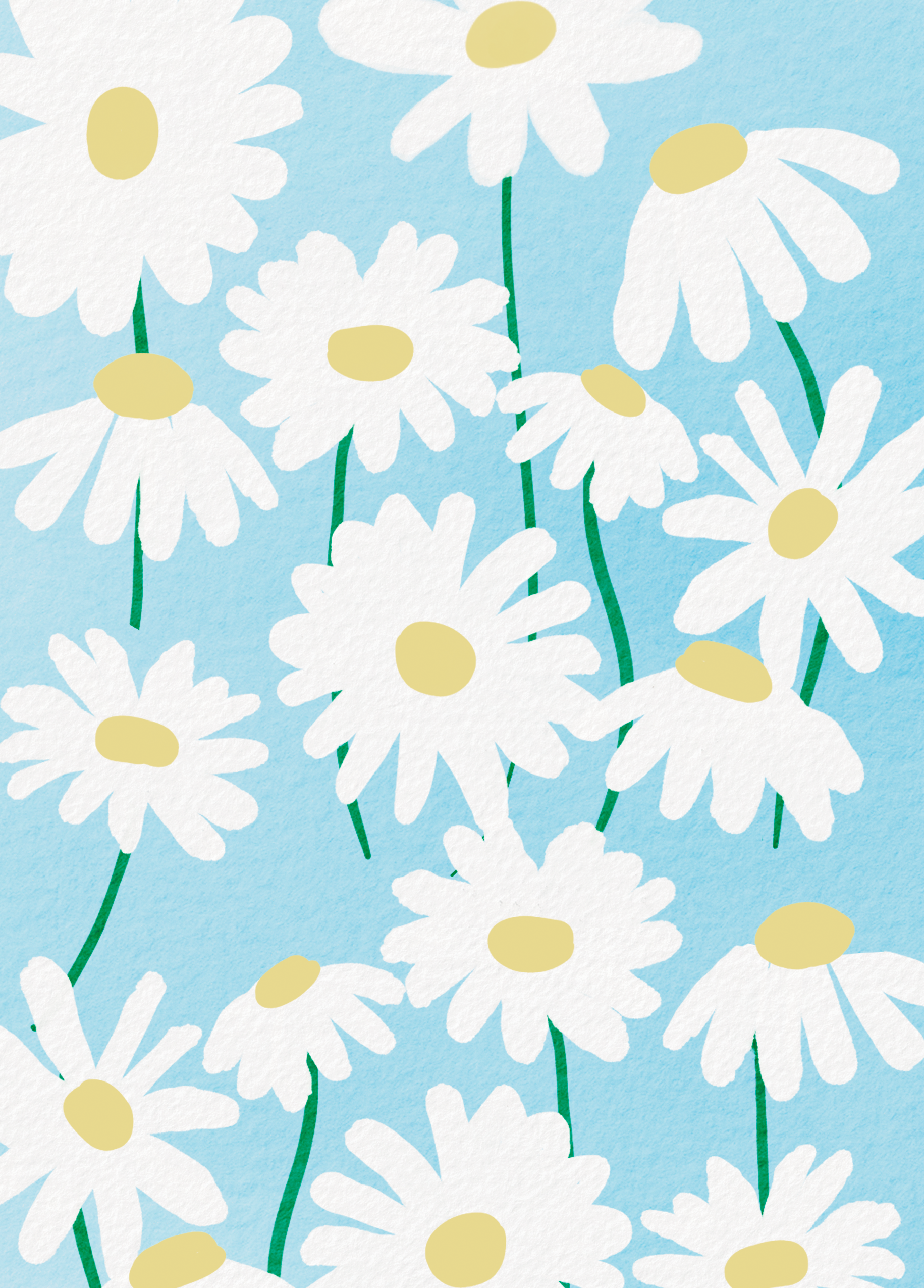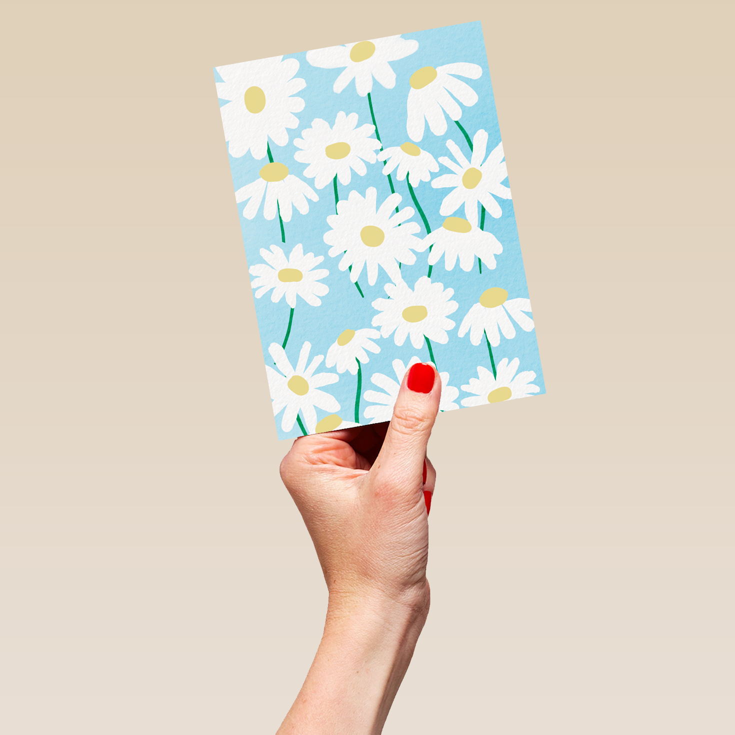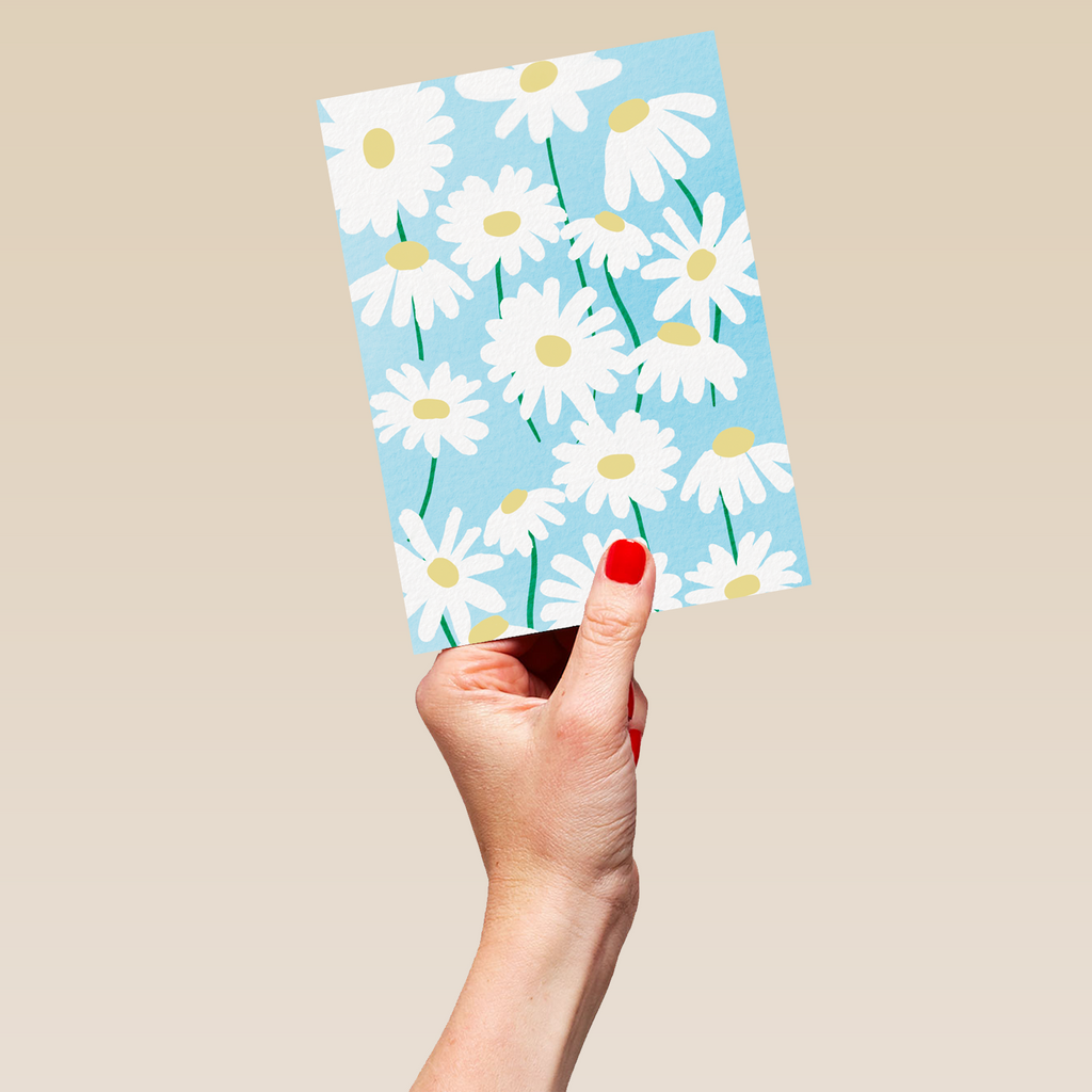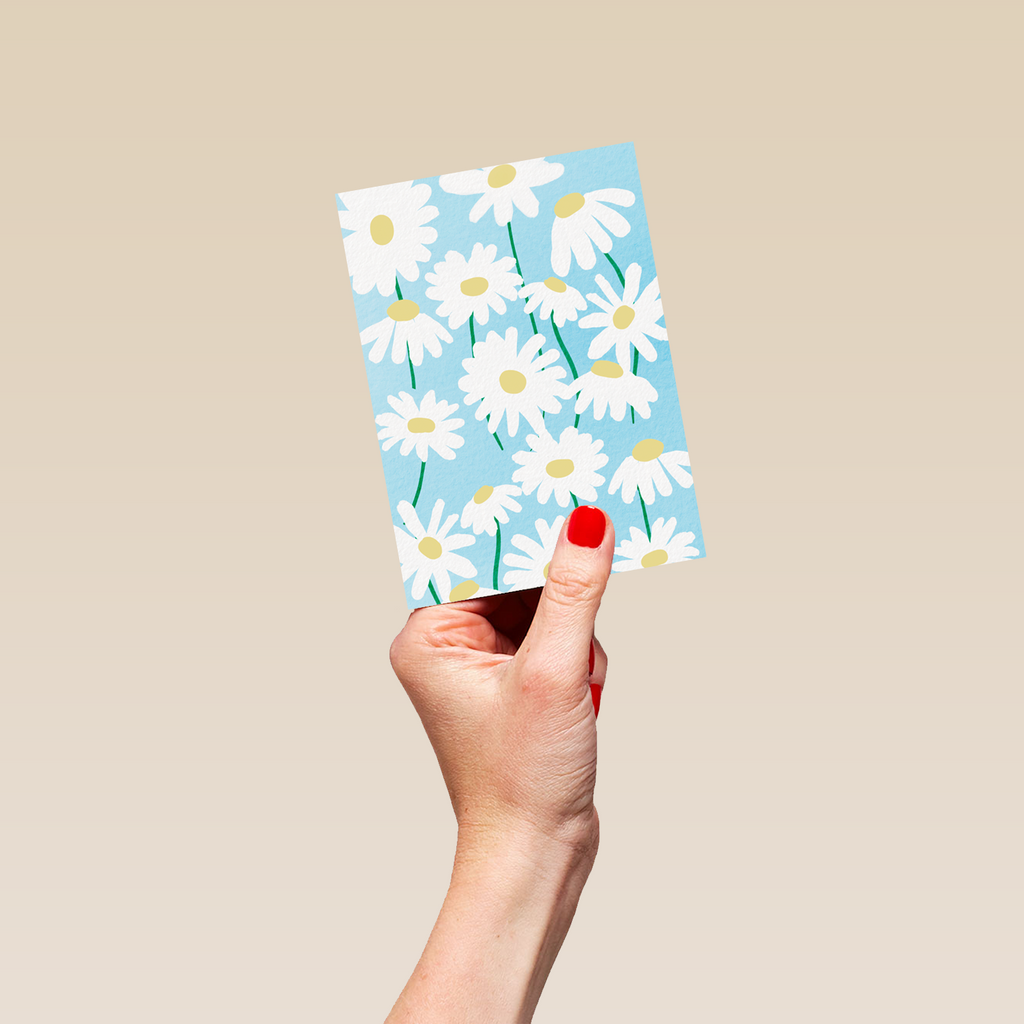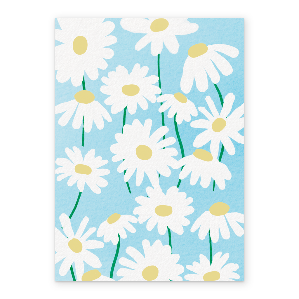 Printed on premium-quality board, this card features a sweet, blue daisy design, and comes complete with a co-ordinating white envelope.