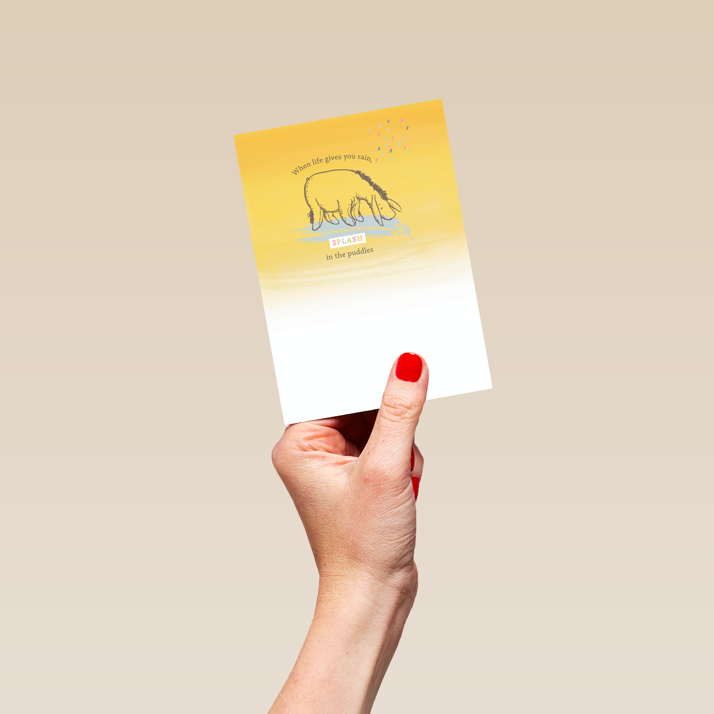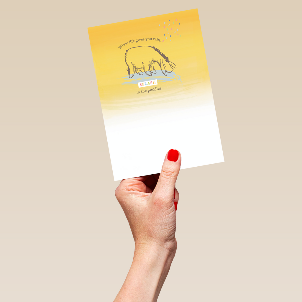 Show them you care with a personalised Winnie The Pooh get well card from Hallmark. Our bear cards are printed on premium quality, FSC®-certified card & delivered nationwide. This card is available as standard 12cm by 16.7cm and large 15.5cm by 21.6cm.