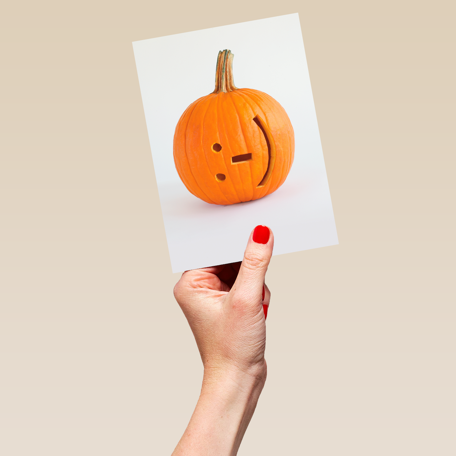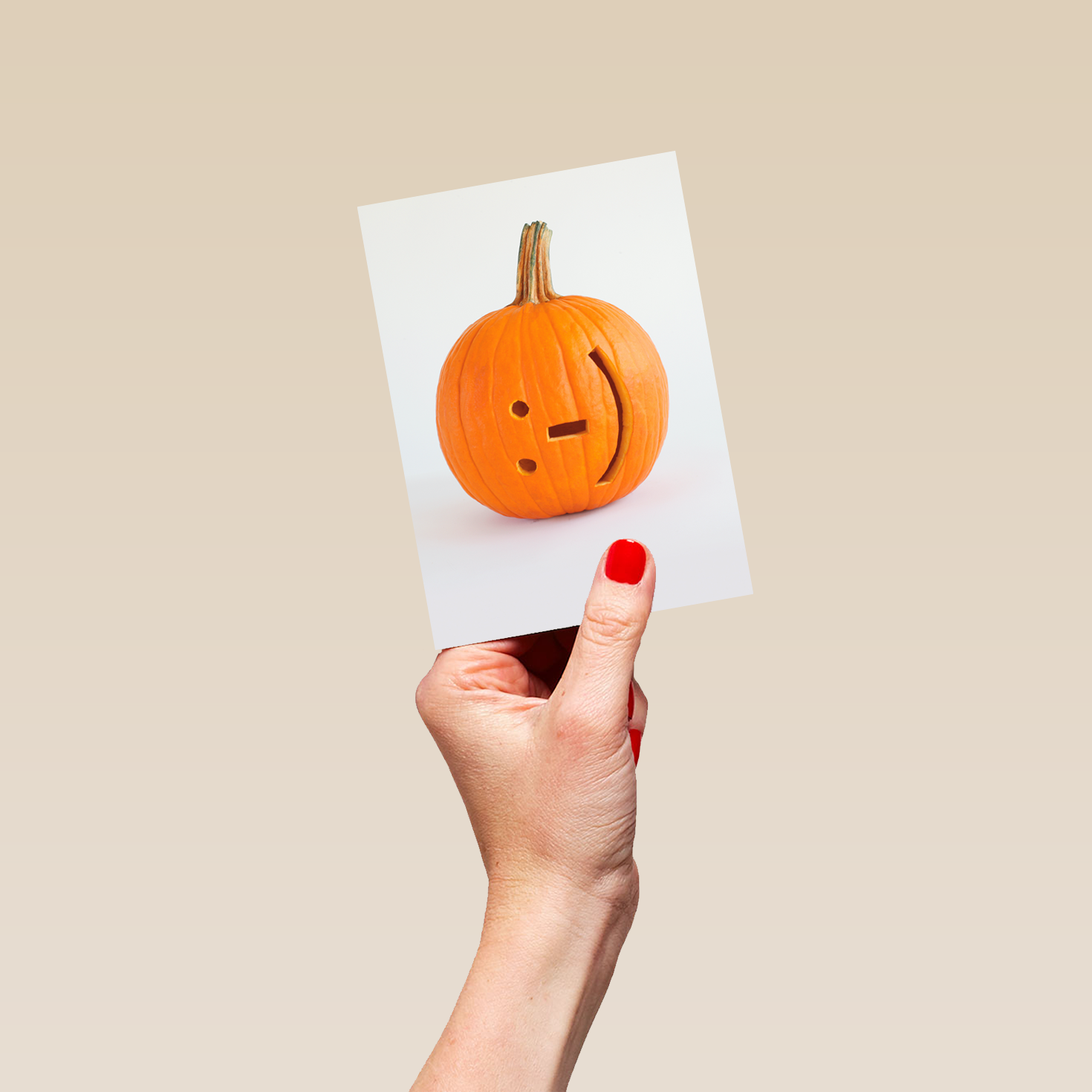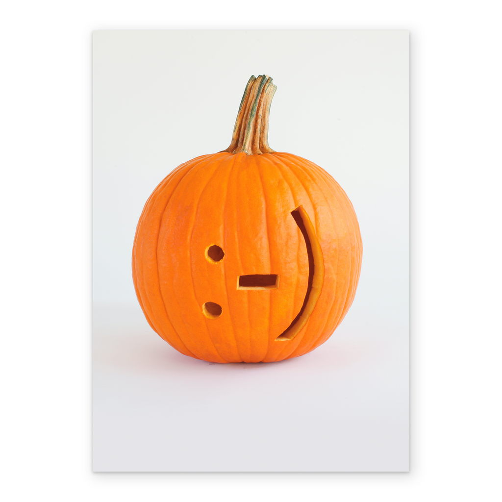 Printed on high-quality board, this card features a fun design of a pumpkin with an emoticons carved in, you can customise the text inside, and comes complete with a co-ordinating white envelope.