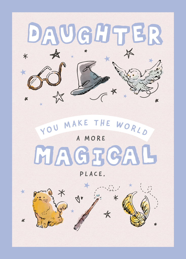 Cast a spell and enter the wizarding world with our exclusive collection of Harry Potter™™ personalised cards at Hallmark. Perfect for any occasion, these cards allow you to add that personal touch to your greetings, making every celebration extra special. Whether it’s a birthday, Christmas, or just a magical surprise, our range features iconic designs, from the Hogwarts™ Express to beloved characters like Harry Potter™, Hermione Granger, and Ron Weasley. With free delivery on orders over £30, it’s never been easier to bring a bit of enchantment to your loved ones. Explore our collection today and create a card that will be cherished forever.