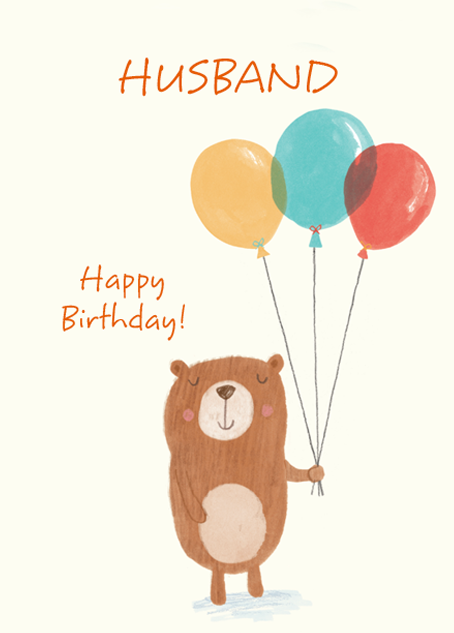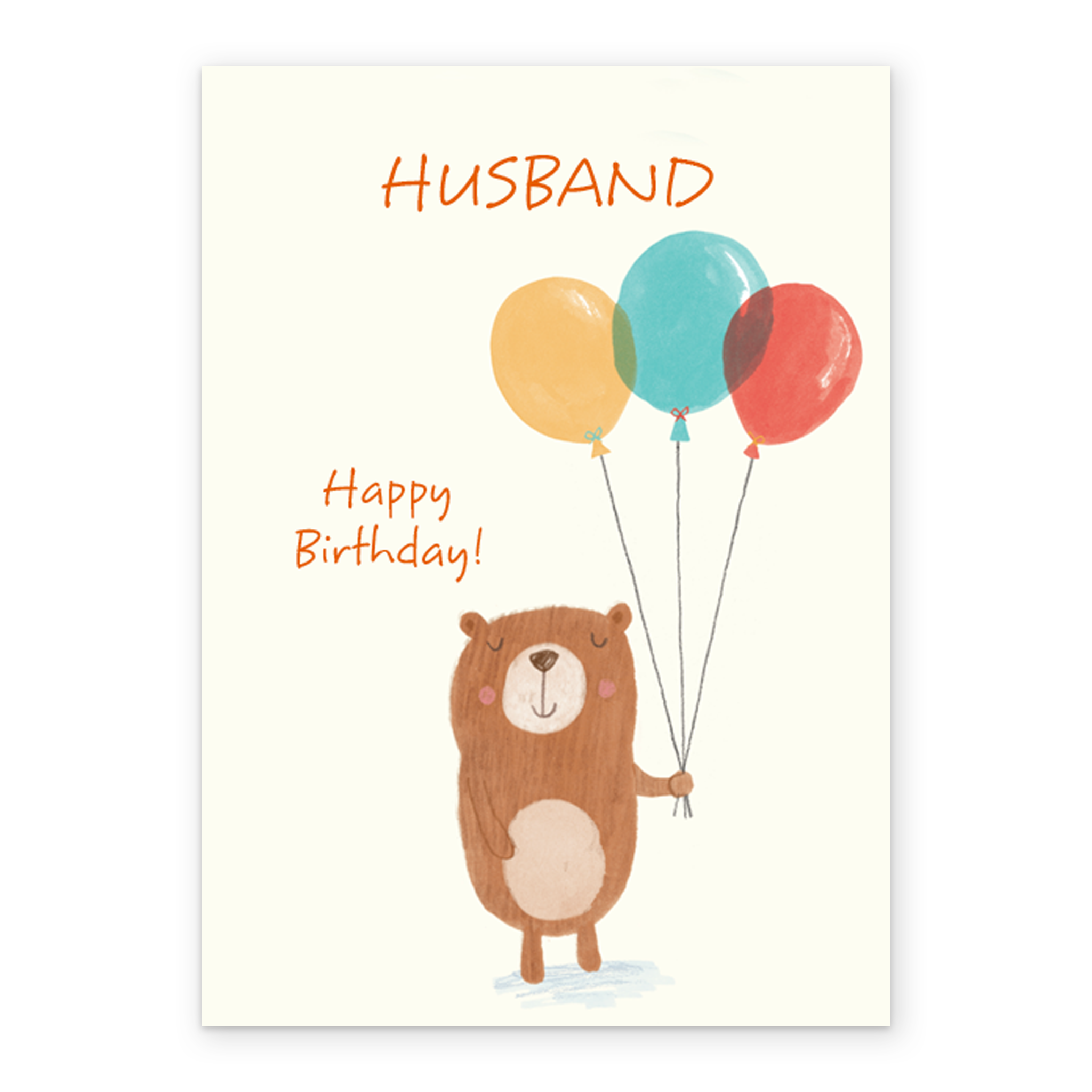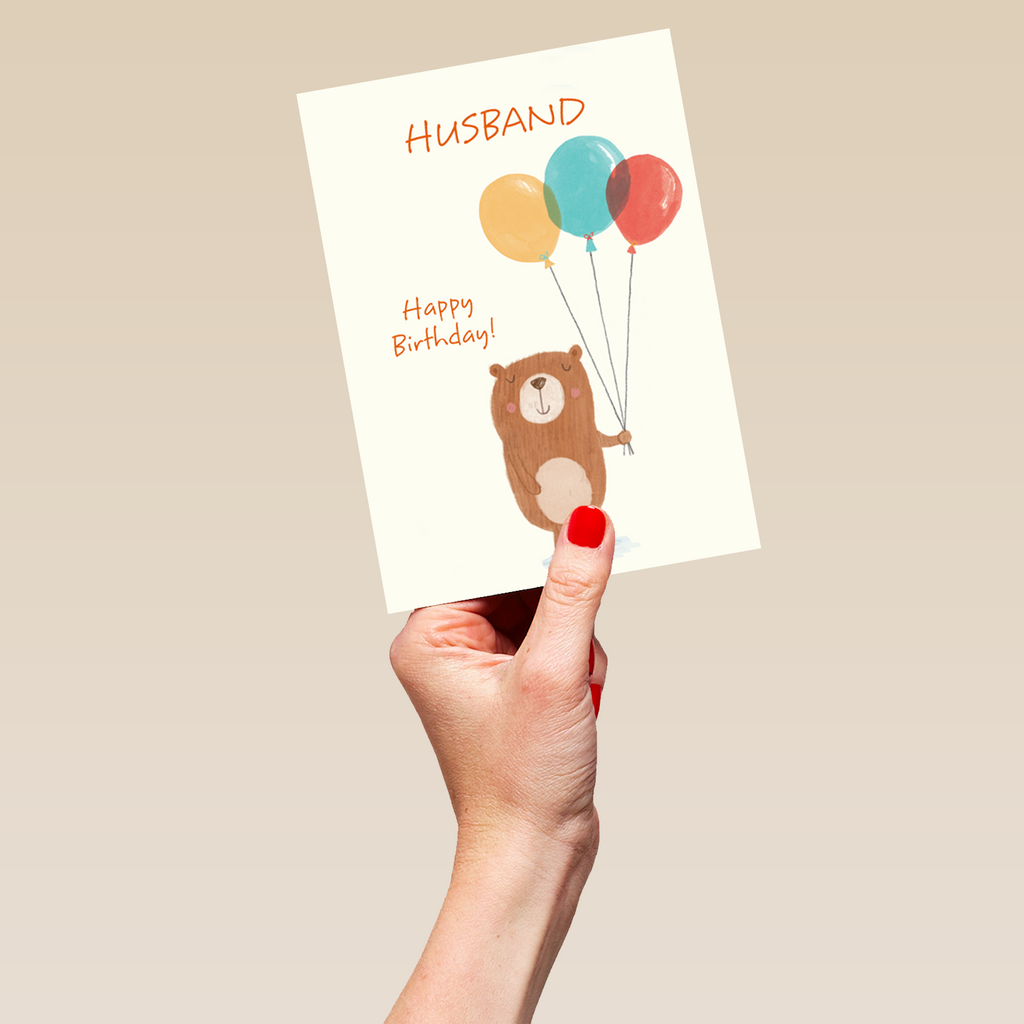 Show them you care with a personalised cute bear and balloons husband birthday card from Hallmark. Our birthday cards are printed on premium quality, FSC®-certified card & delivered nationwide. This card is available as standard 12cm by 16.7cm and large 15.5cm by 21.6cm.