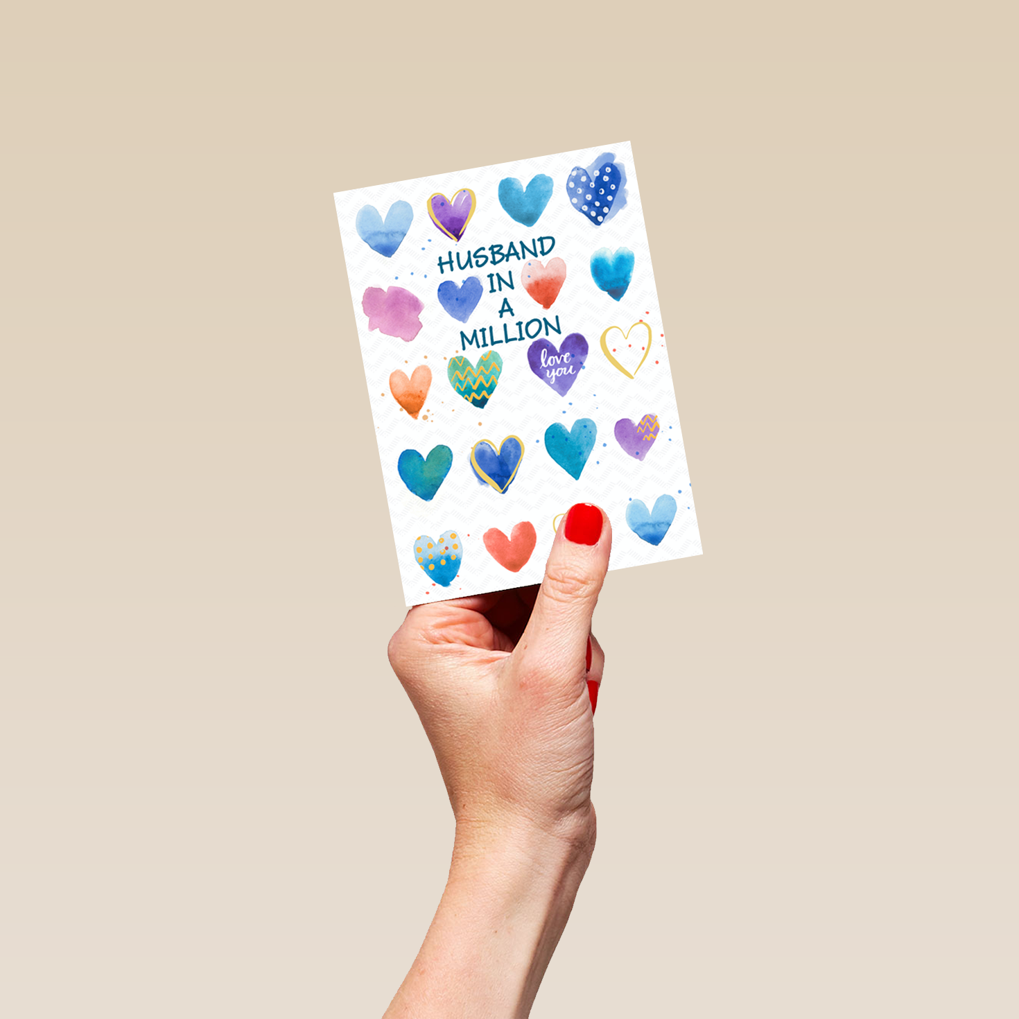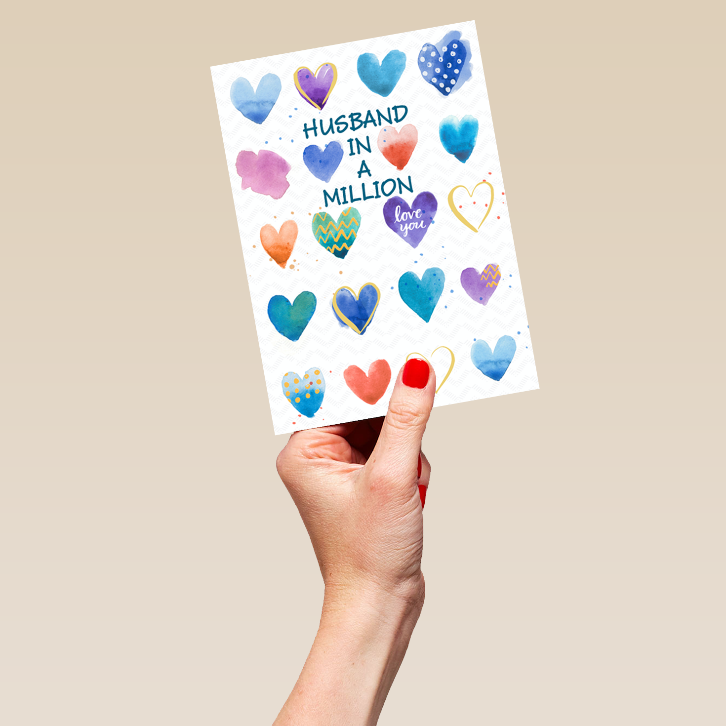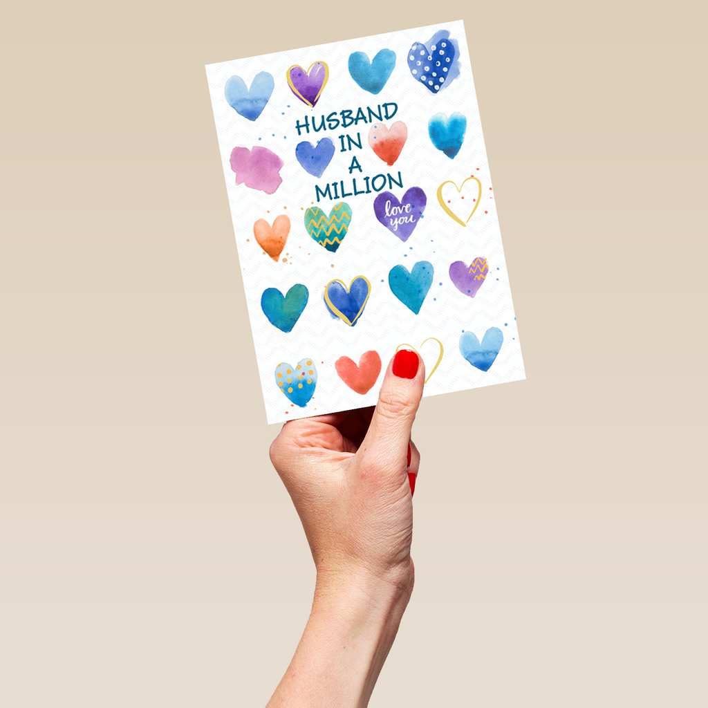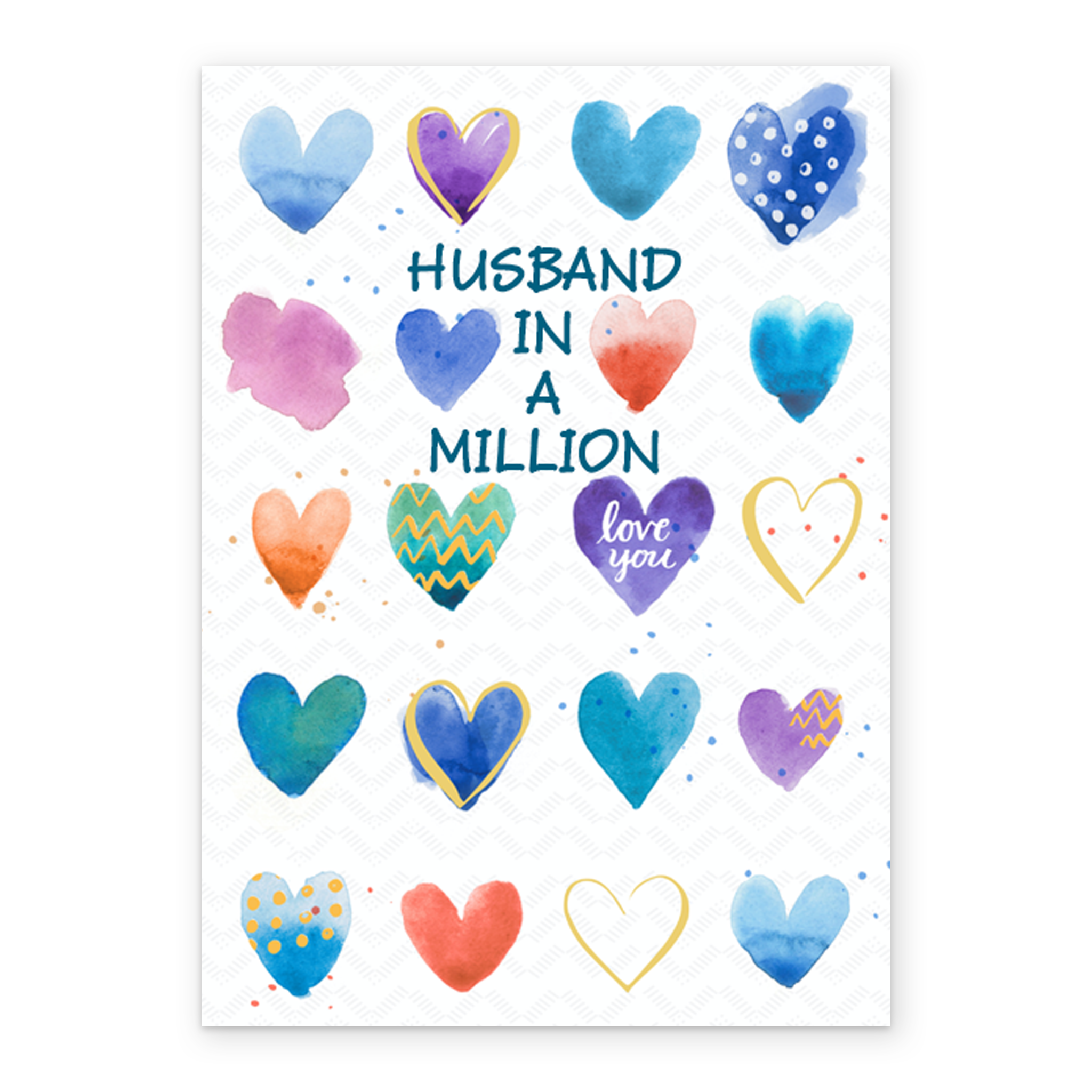 Show them you care with a personalised multi-coloured love heart husband card from Hallmark. Our birthday cards are printed on premium quality, FSC®-certified card & delivered nationwide. This card is available as standard 12cm by 16.7cm and large 15.5cm by 21.6cm.