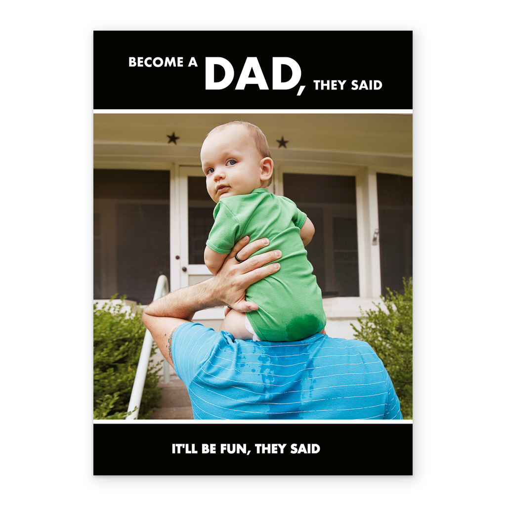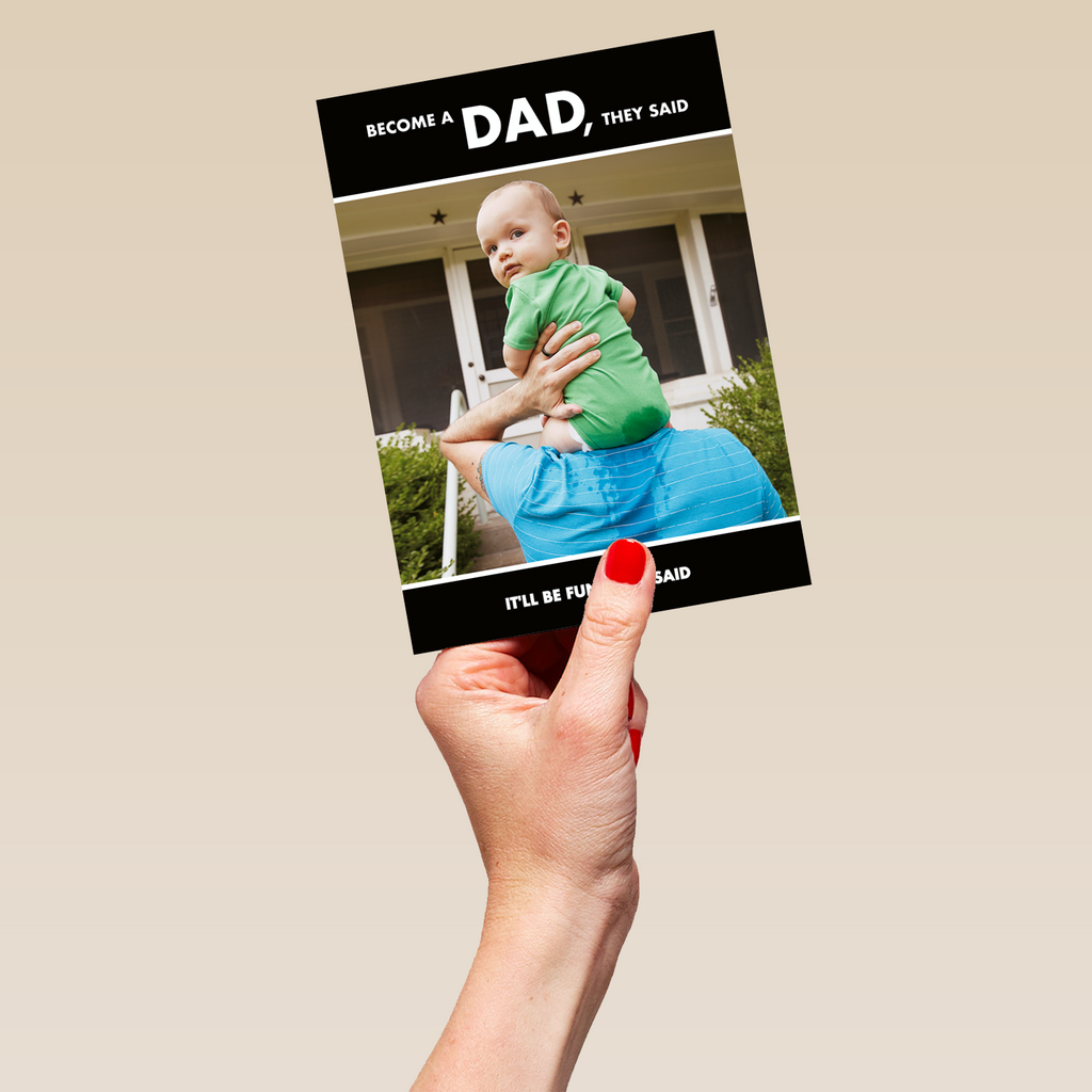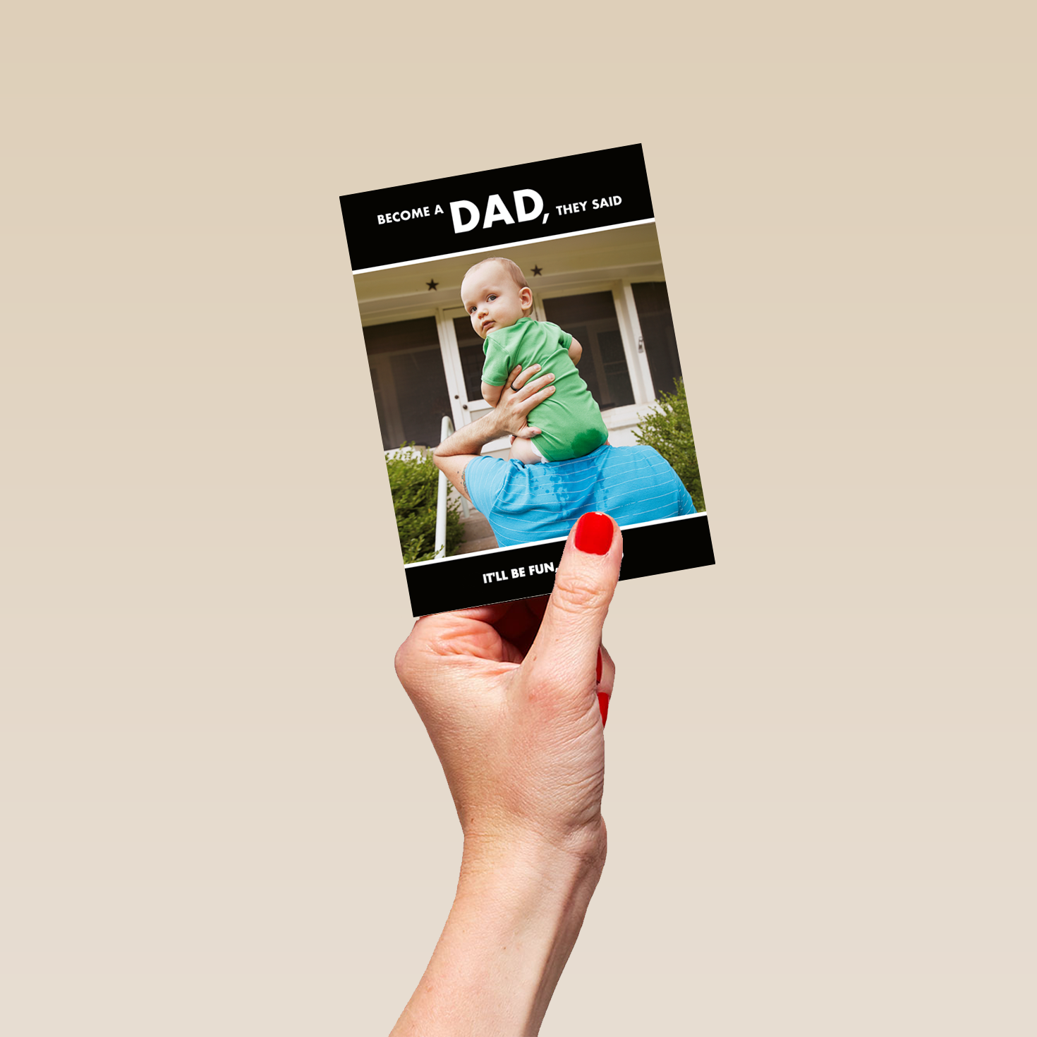 Show them you care with a personalised dad funny birthday photo card from Hallmark. Our birthday cards are printed on premium quality, FSC®-certified card & delivered nationwide. This card is available as standard 12cm by 16.7cm and large 15.5cm by 21.6cm.