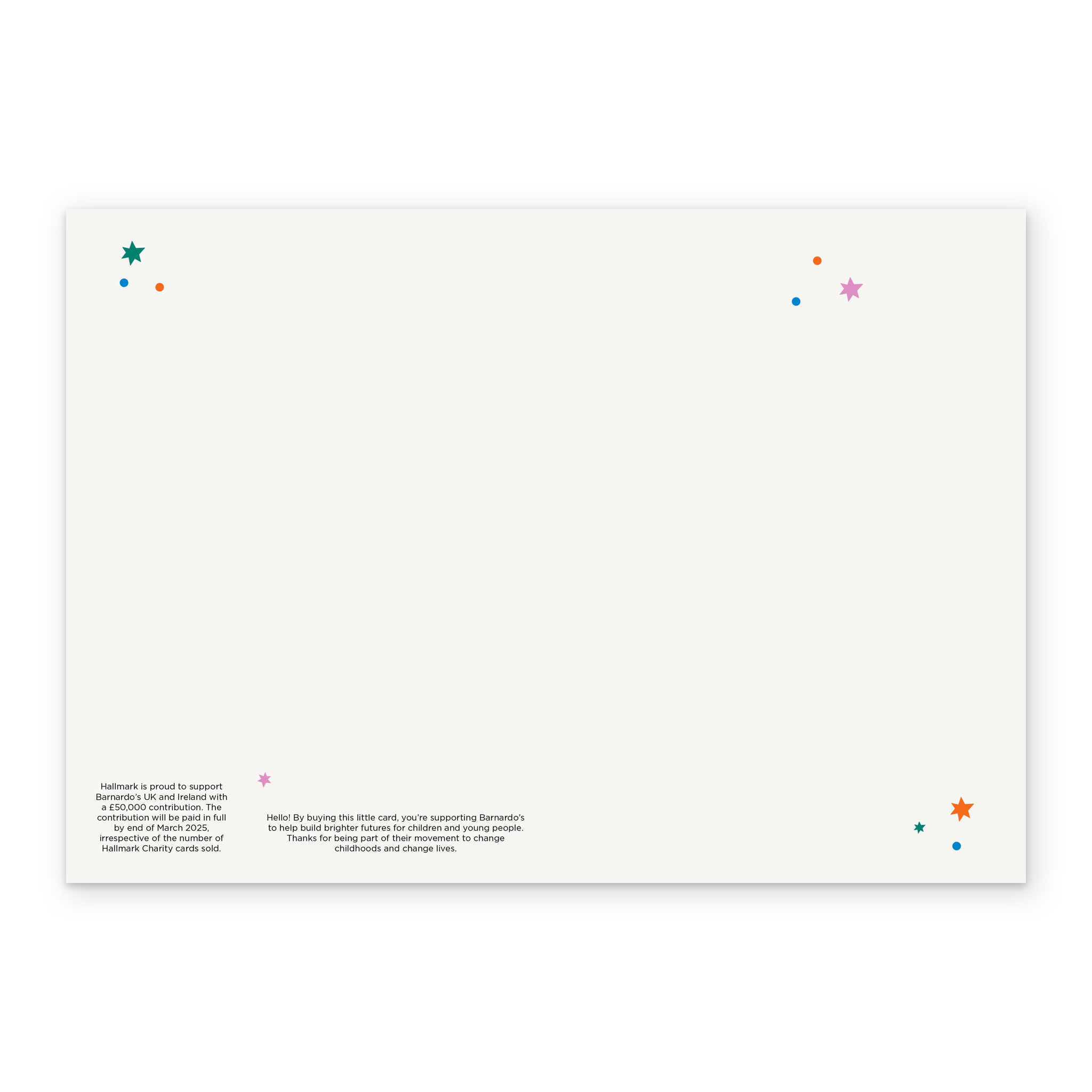 Hello! By buying this little card, you're supporting Barnardo's to help build brighter futures for children and young people. Thanks for being part of their movement to change childhoods and change lives.