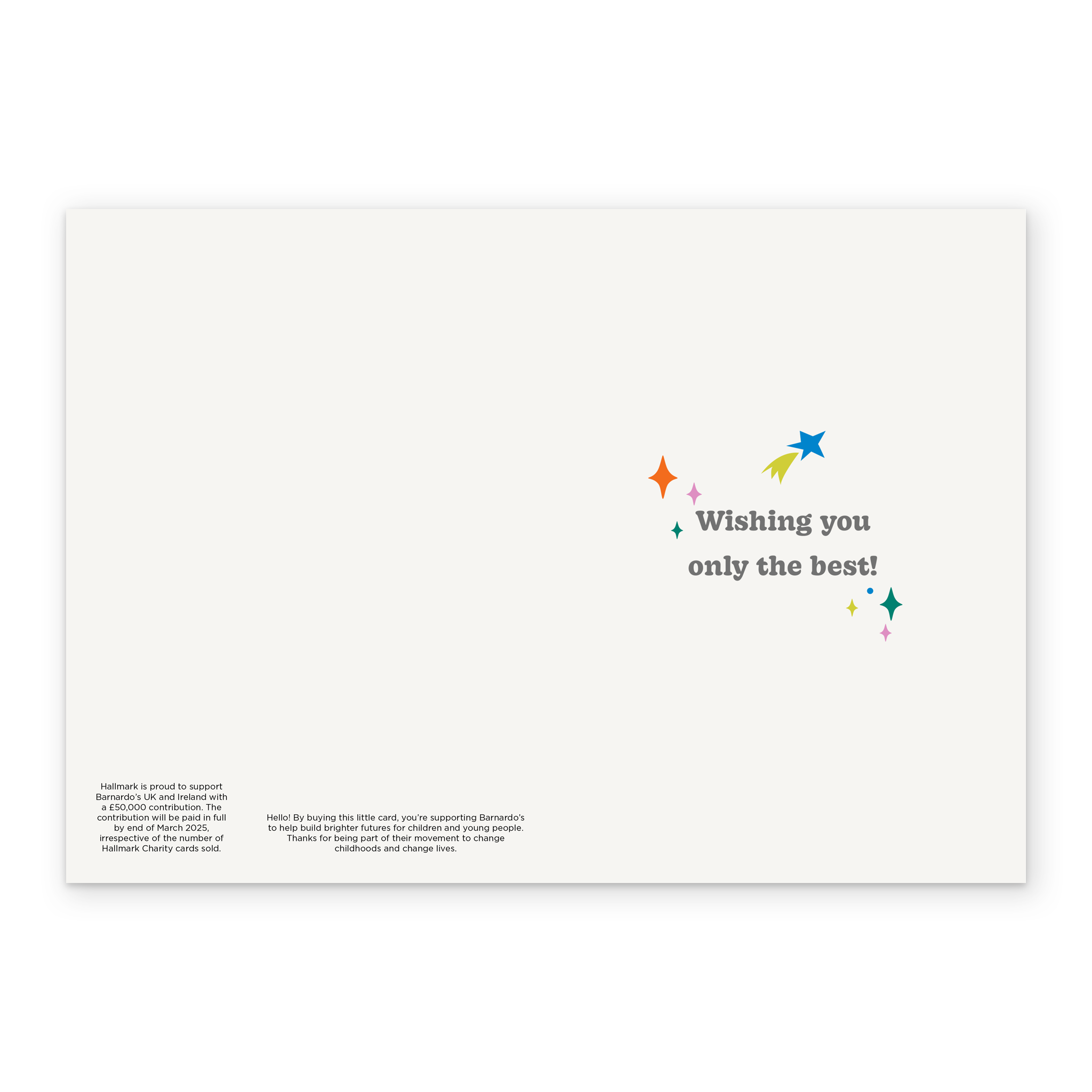 Hello! By buying this little card, you're supporting Barnardo's to help build brighter futures for children and young people. Thanks for being part of their movement to change childhoods and change lives.