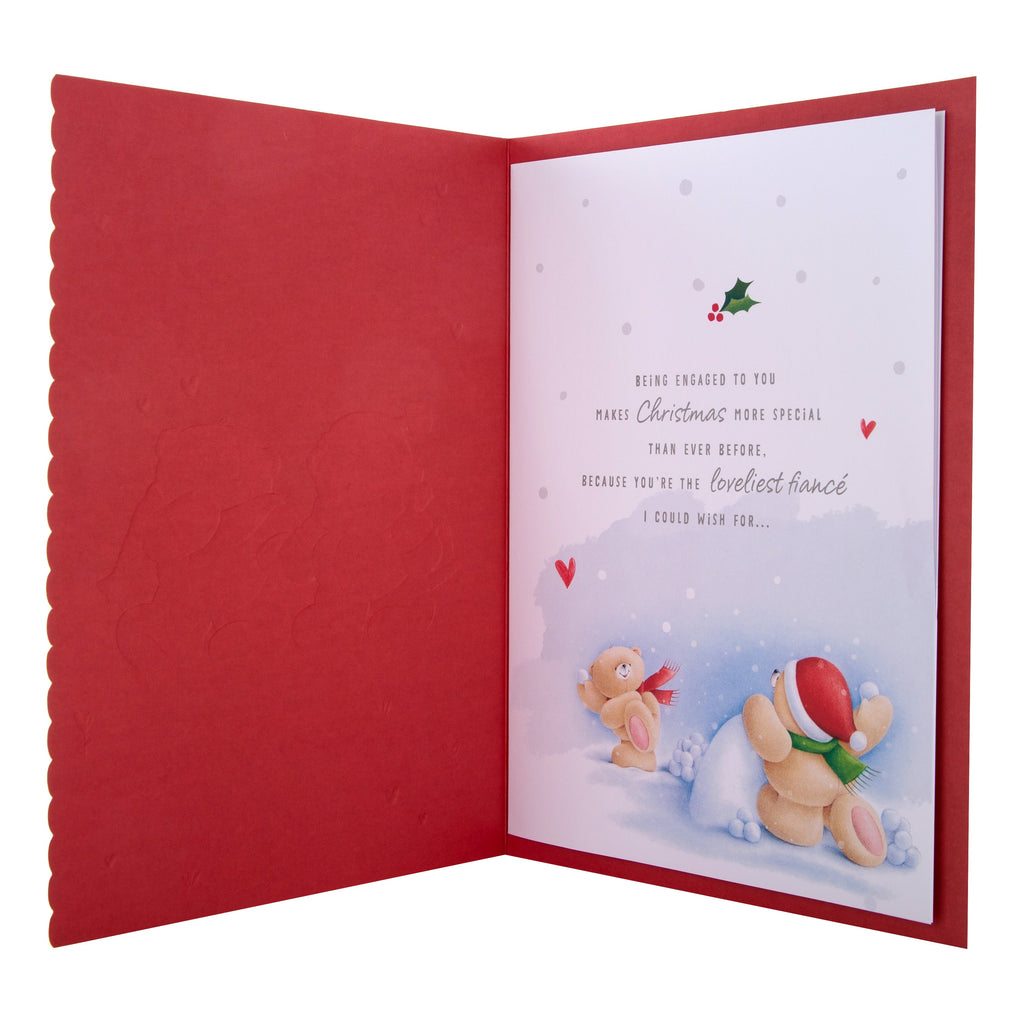 Message Inside Card Reads: Being engaged to you makes Christmas more special than ever before, because you're the loveliest fiancé I could wish for... I'm so happy we're together to celebrate all the good times and memorable moments this wonderful season will bring our way... My heart is filled with lots of love at Christmas, and you're the one who filled it - right to the very top! Wishing us a happy Christmas x