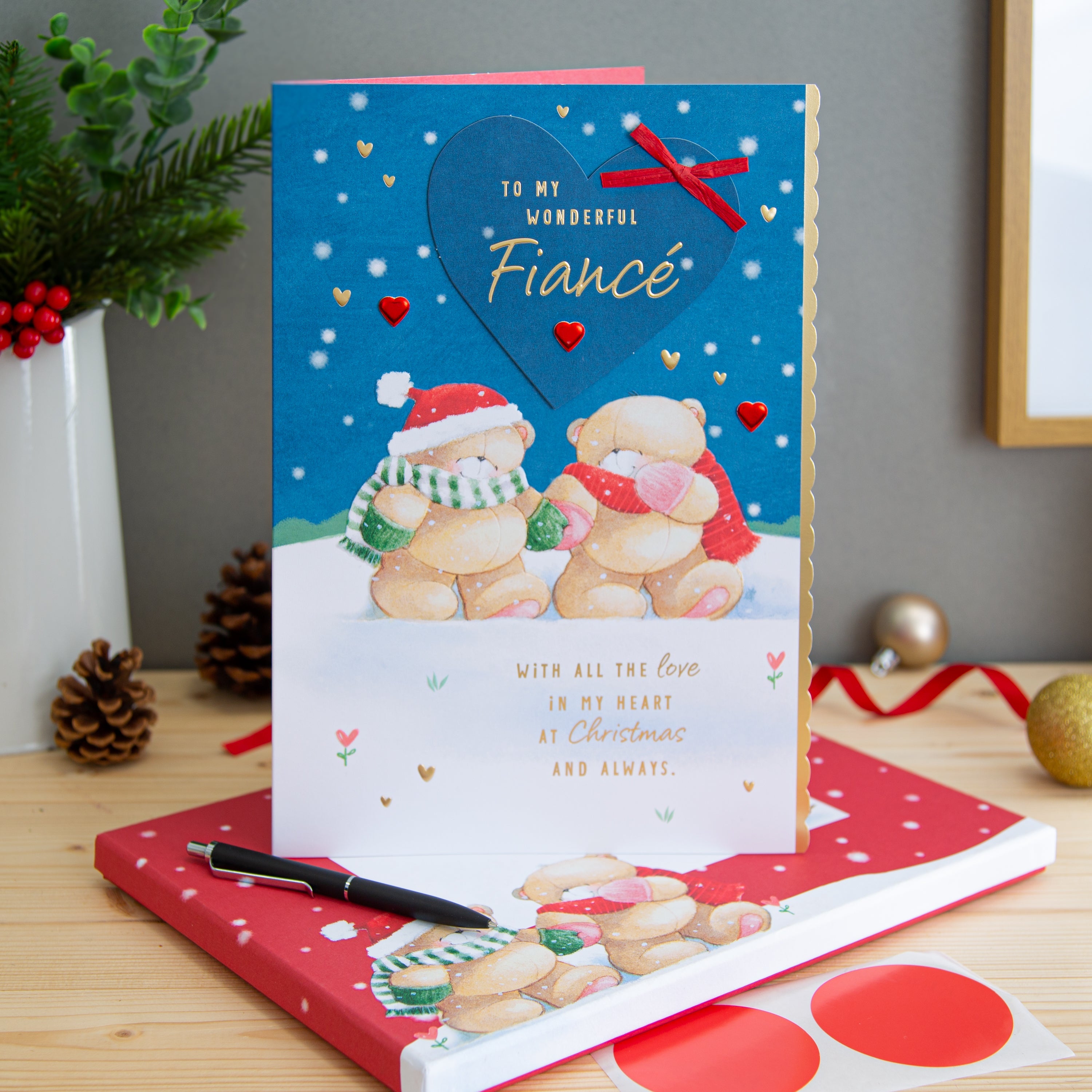 Large Luxury Boxed Christmas Card for Fiancé - Cute Forever Friends Winter Love Design