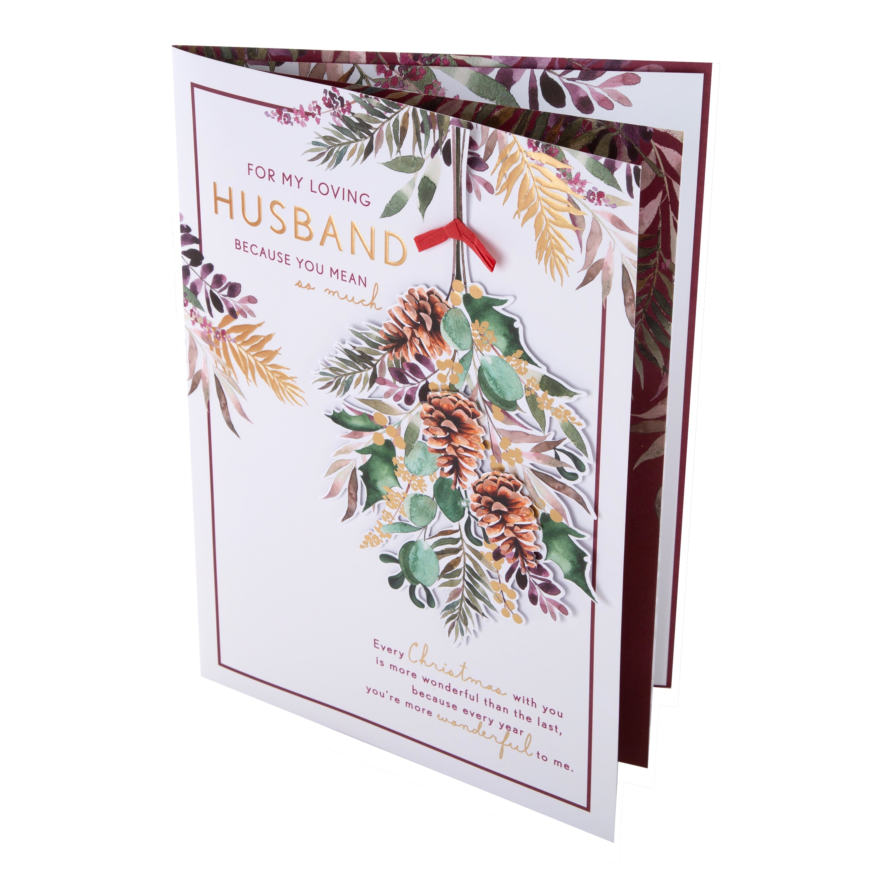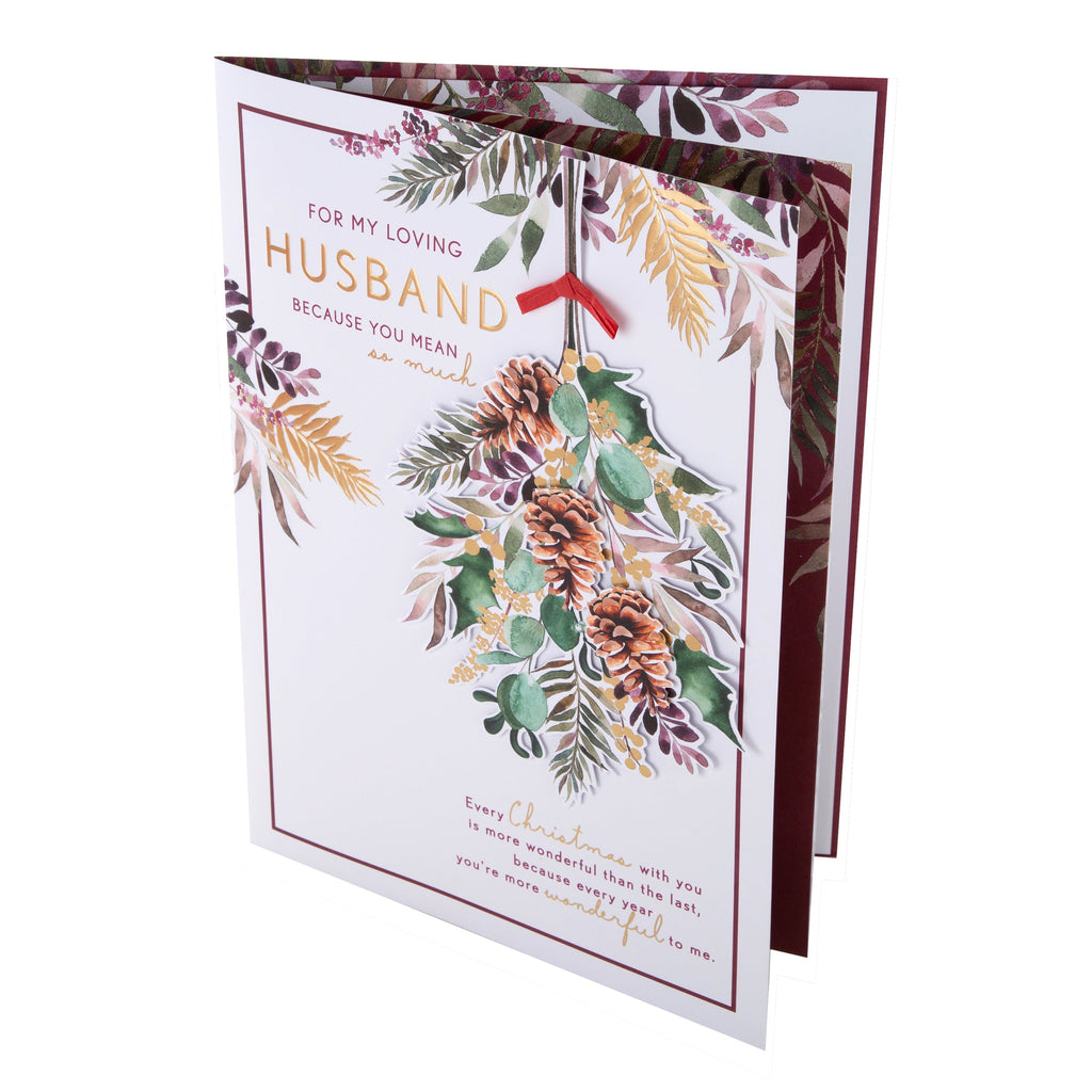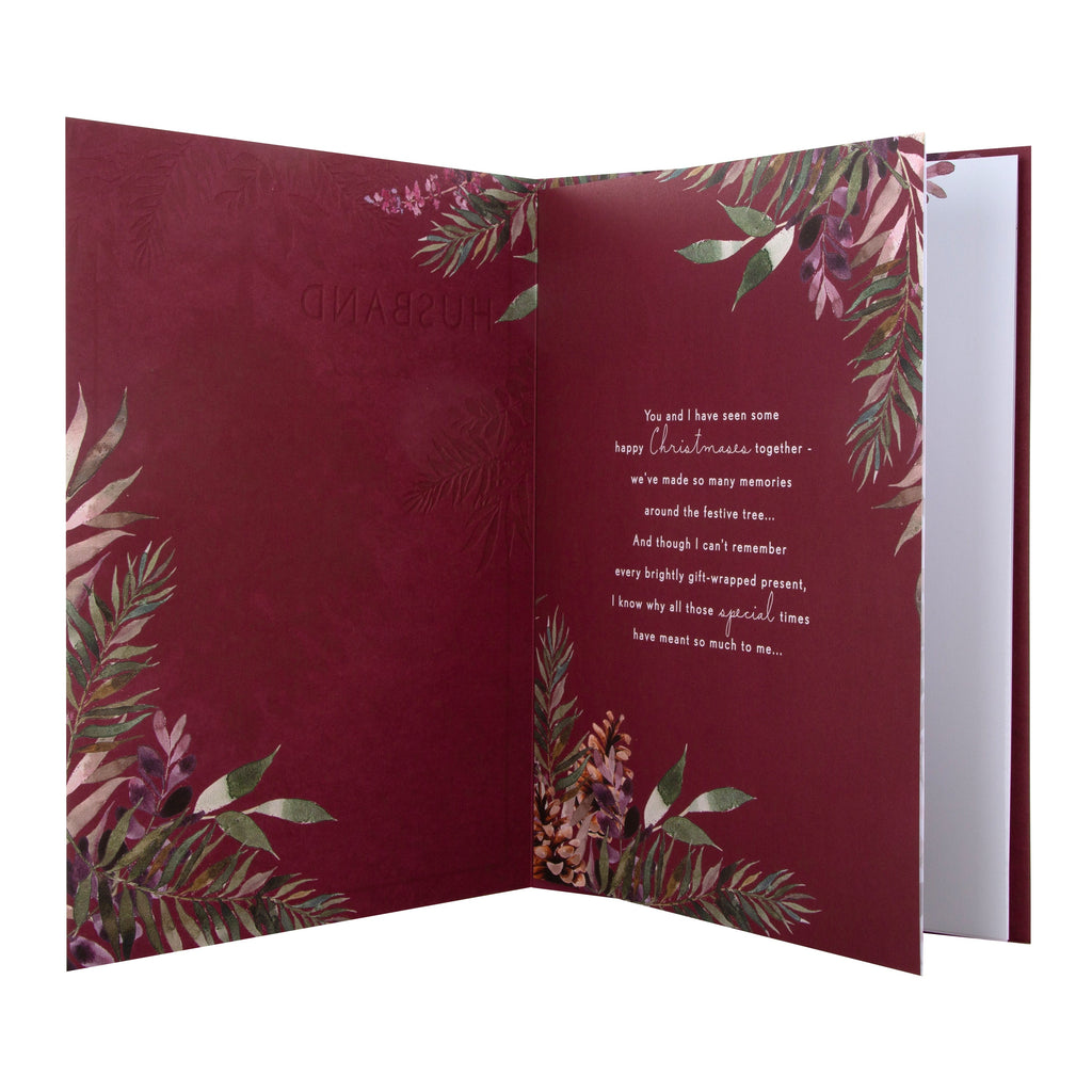 Large Luxury Boxed Christmas Card for Husband - Traditional Season Foliage Design