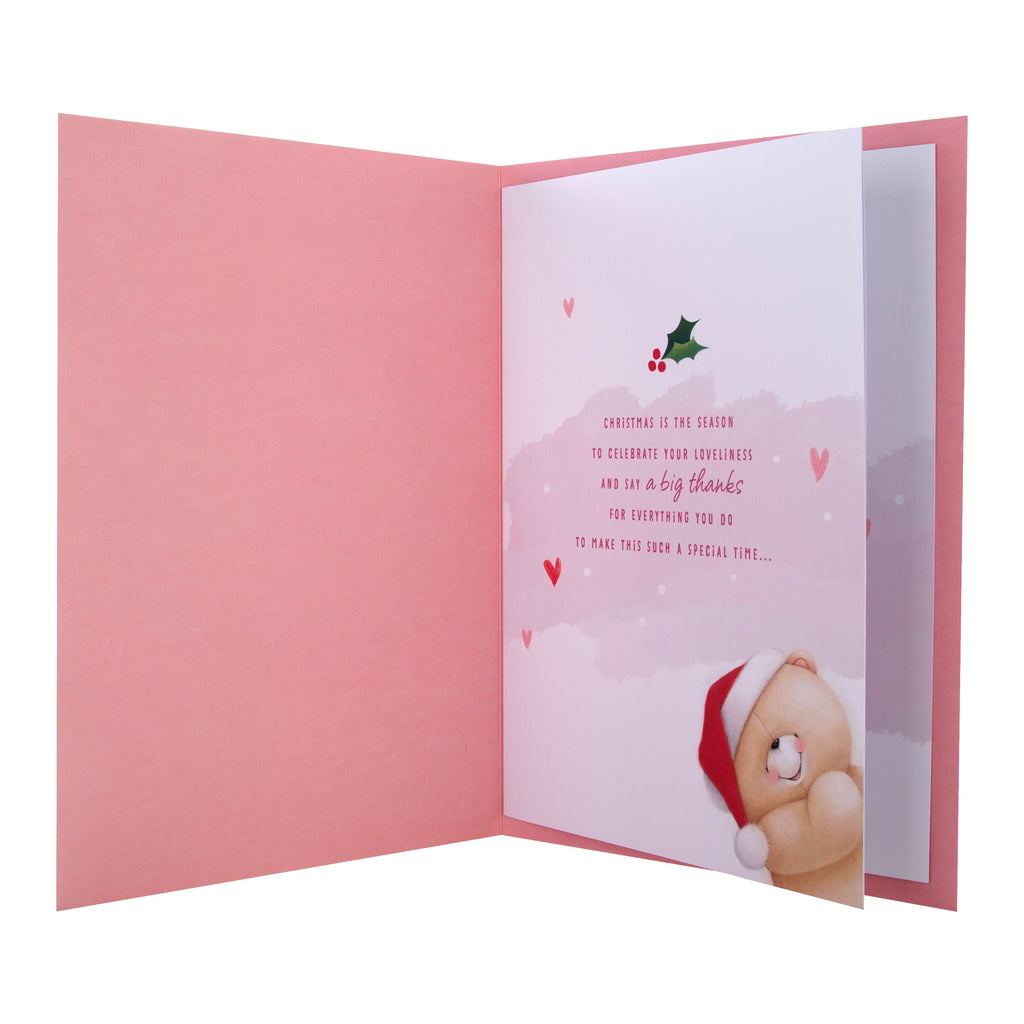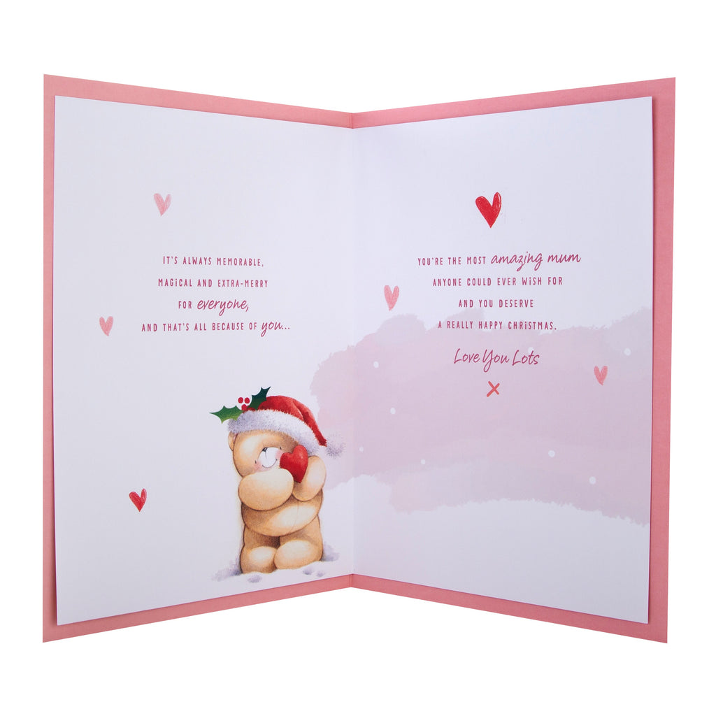Message Inside Card Reads: Christmas is the season to celebrate your loveliness and say a big thanks for everything you do to make this such a special time... It's always memorable, magical and extra-merry for everyone, and that's all because of you... You're the most amazing mum anyone could ever wish for and you deserve a really happy Christmas. Love you lots x