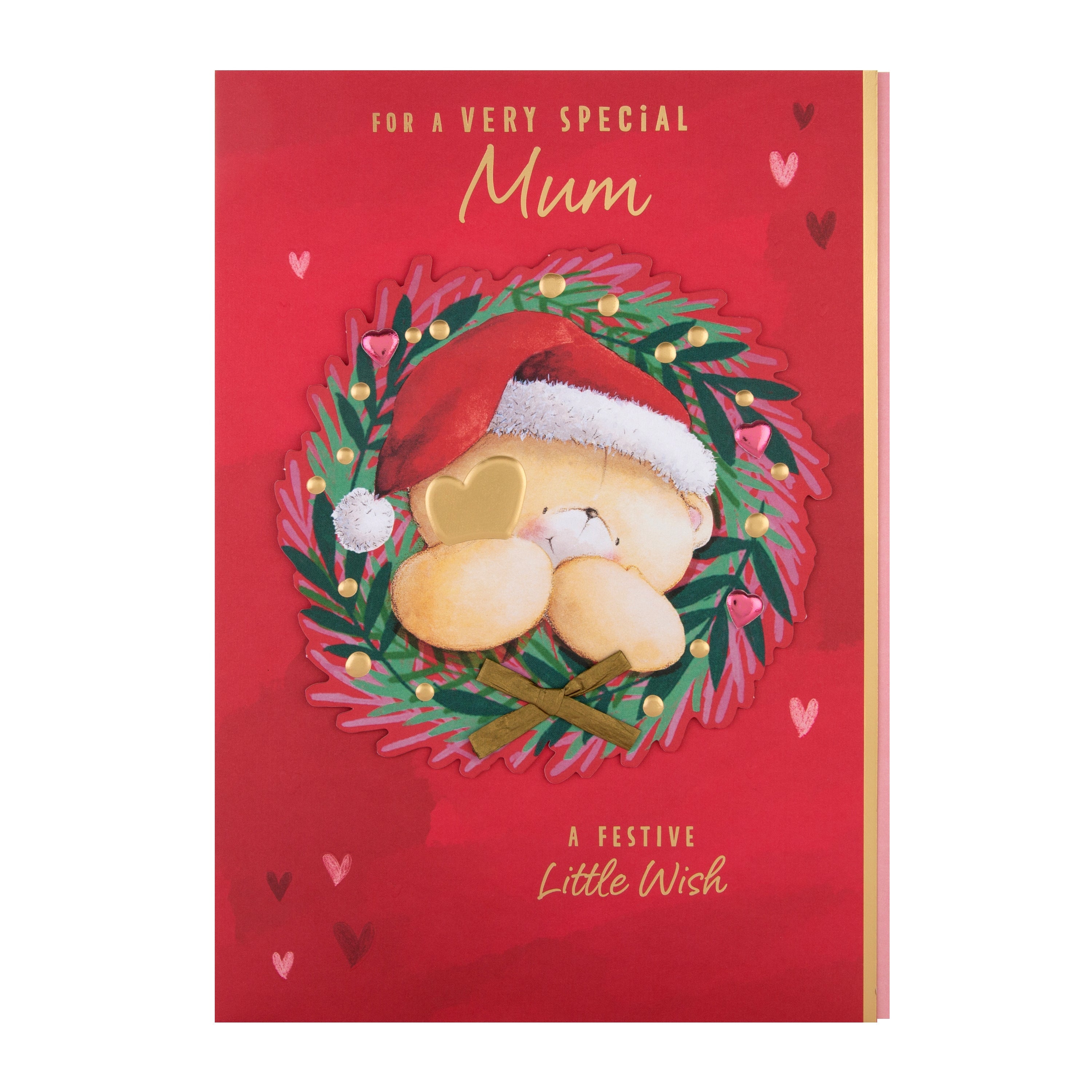 Large Luxury Boxed Christmas Card for Mum - Cute Forever Friends Bear in Wreath Design