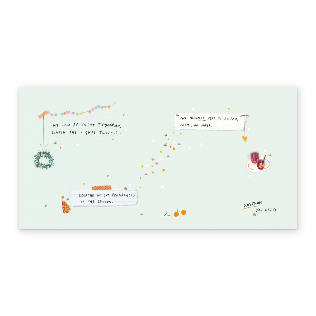Let a special friend know that you're with them every step of the way, whatever they need, as they deal with cancer, while navigating Christmas too. The Maggie's Cancer Charity Christmas card range has been created to support those diagnosed with cancer, and their families, during treatment, in recovery and after loss. This thoughtful and heartwarming card is the perfect way to show your love, care and support at Christmas and always.