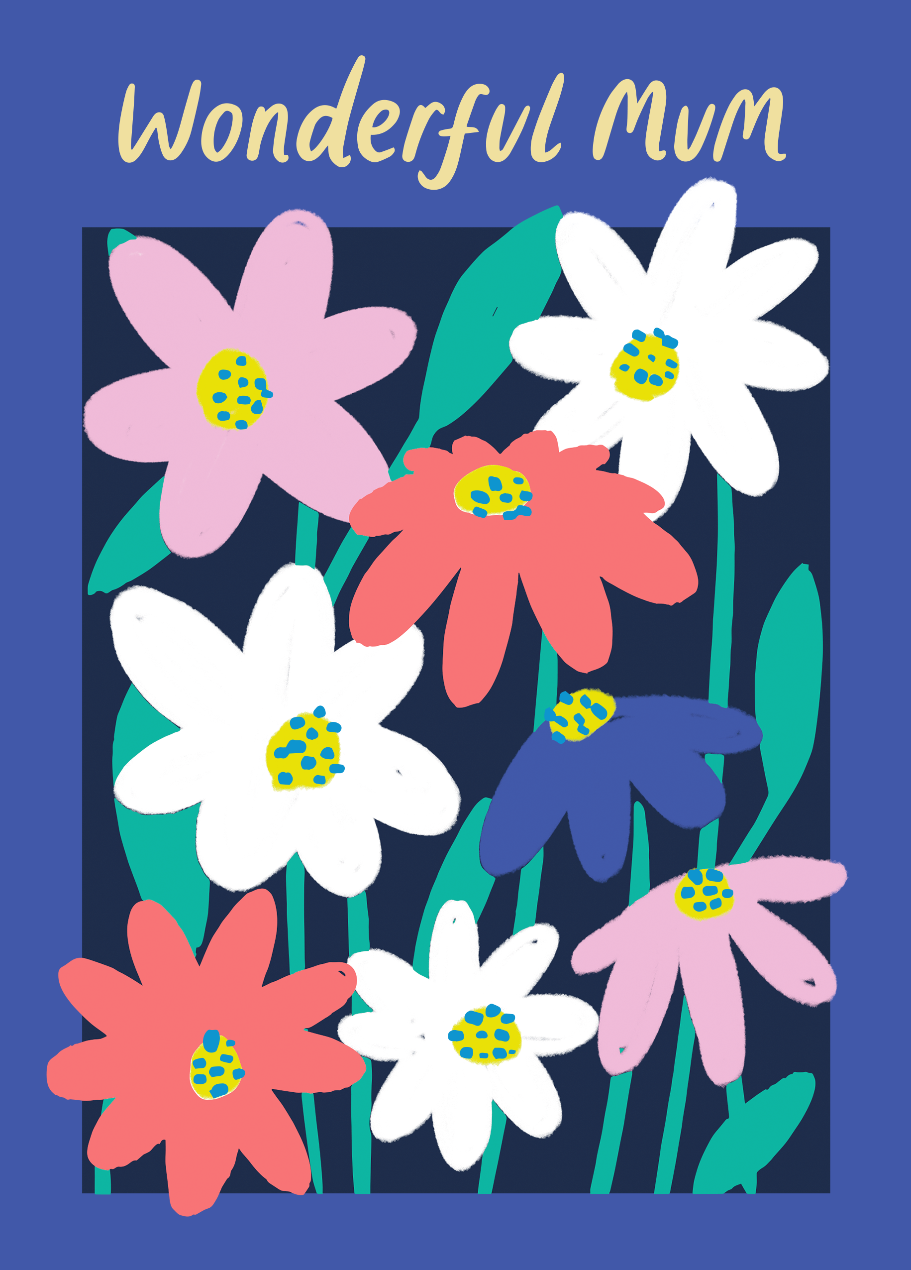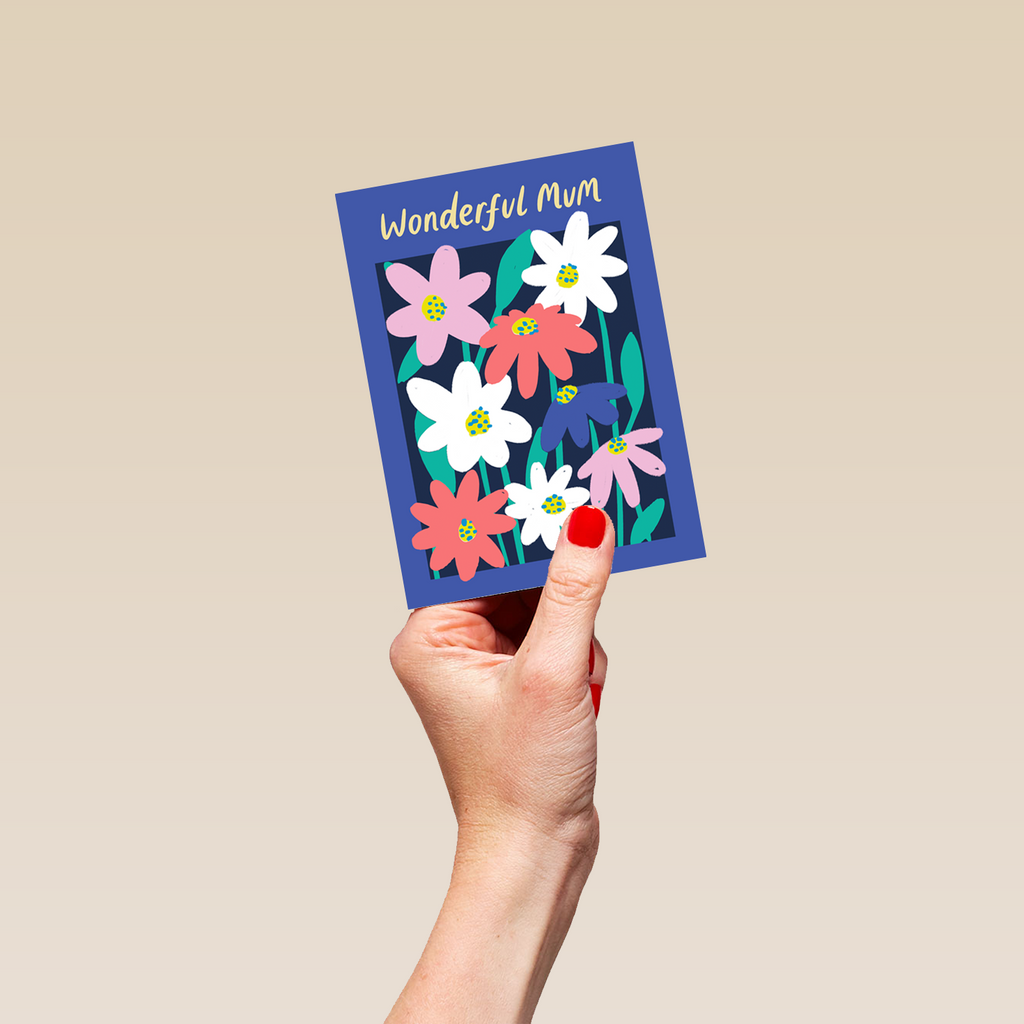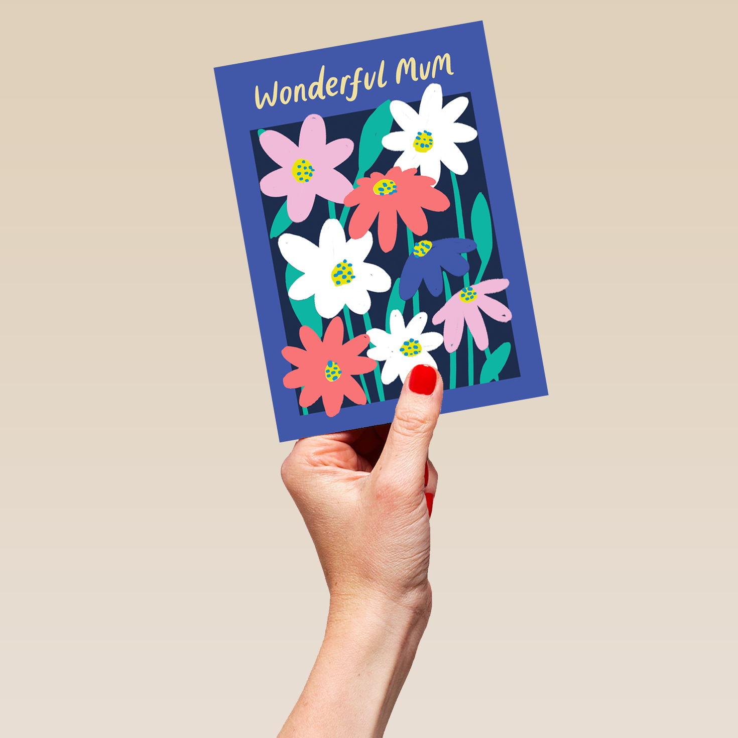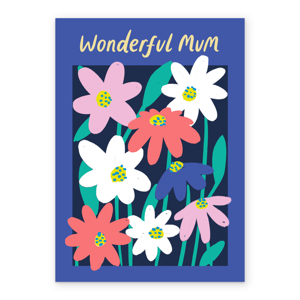 Printed on premium-quality board, this card features a wonderful illustration of flowers, with the message 'Wonderful Mum', and comes complete with a co-ordinating white envelope.