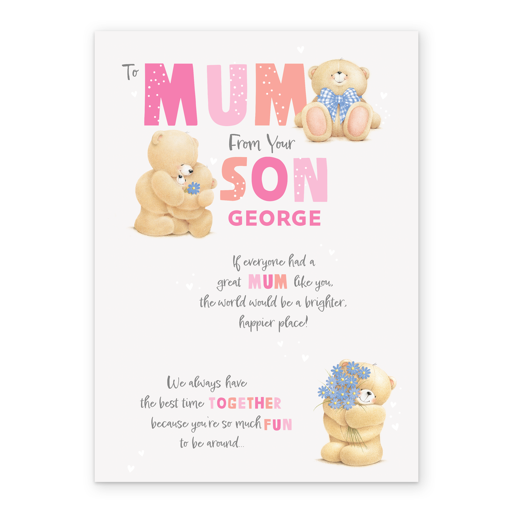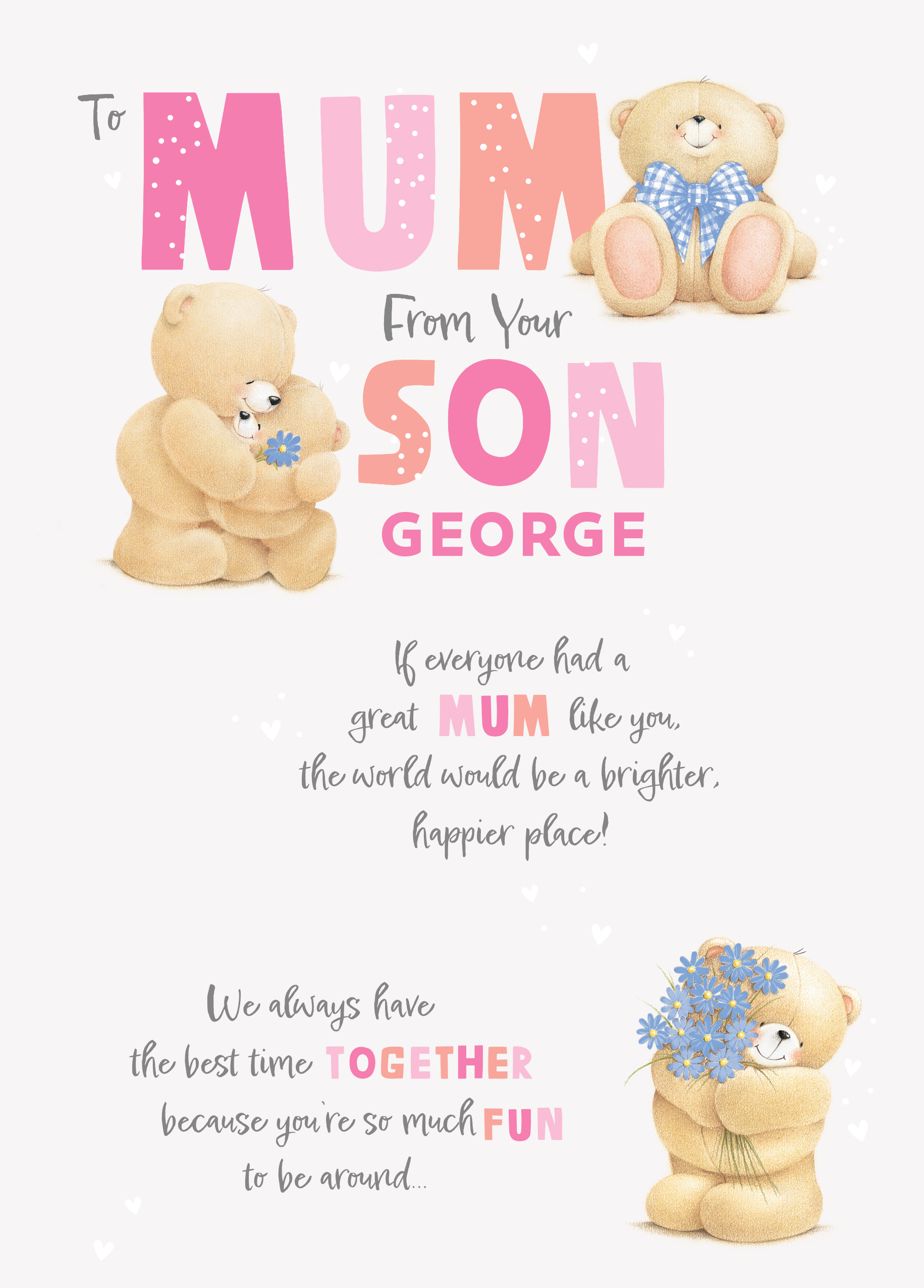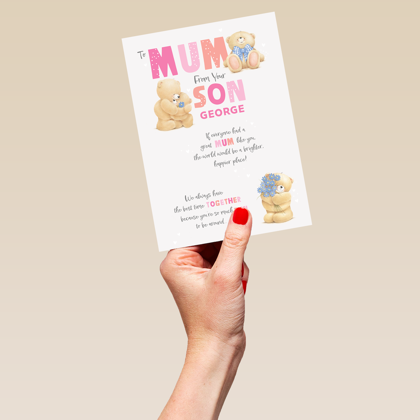 Personalised Editable Forever Friends Bear Mother's Day Card for Mum from Son