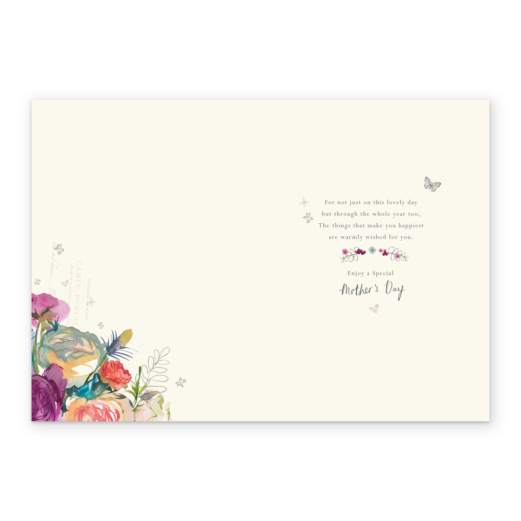 Message inside reads: For not just on this lovely day but through the whole year too, The things that make you happiest are warmly wished for you. Enjoy a Special Mother's Day