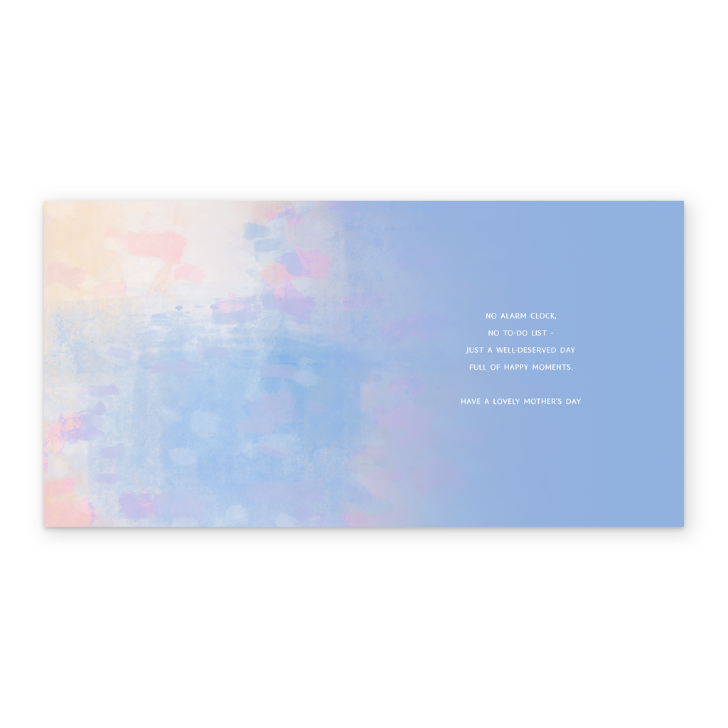 Message inside reads: No alarm clock, no to-do list - just a well-deserved day full of happy moments. Have a Lovely Mother's Day