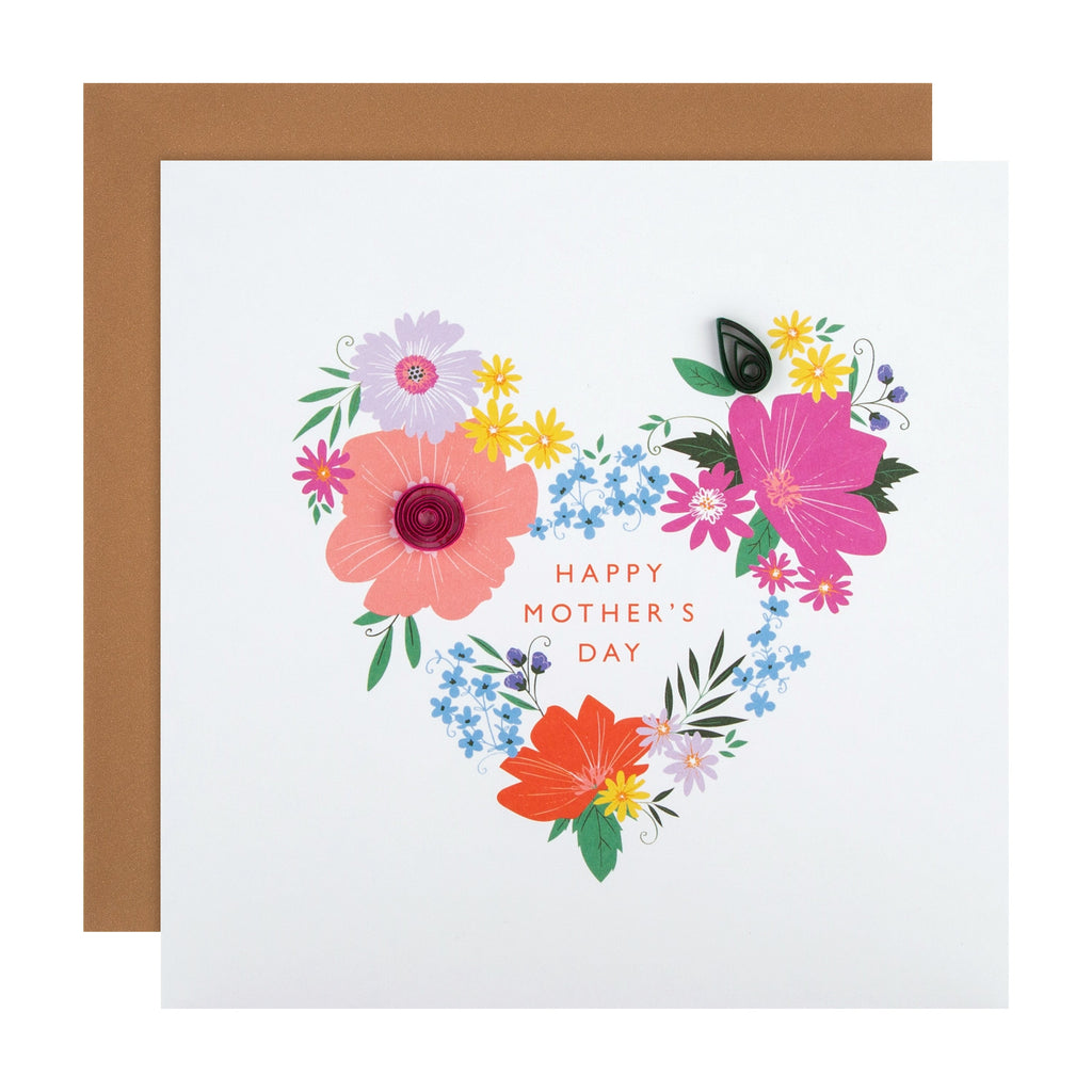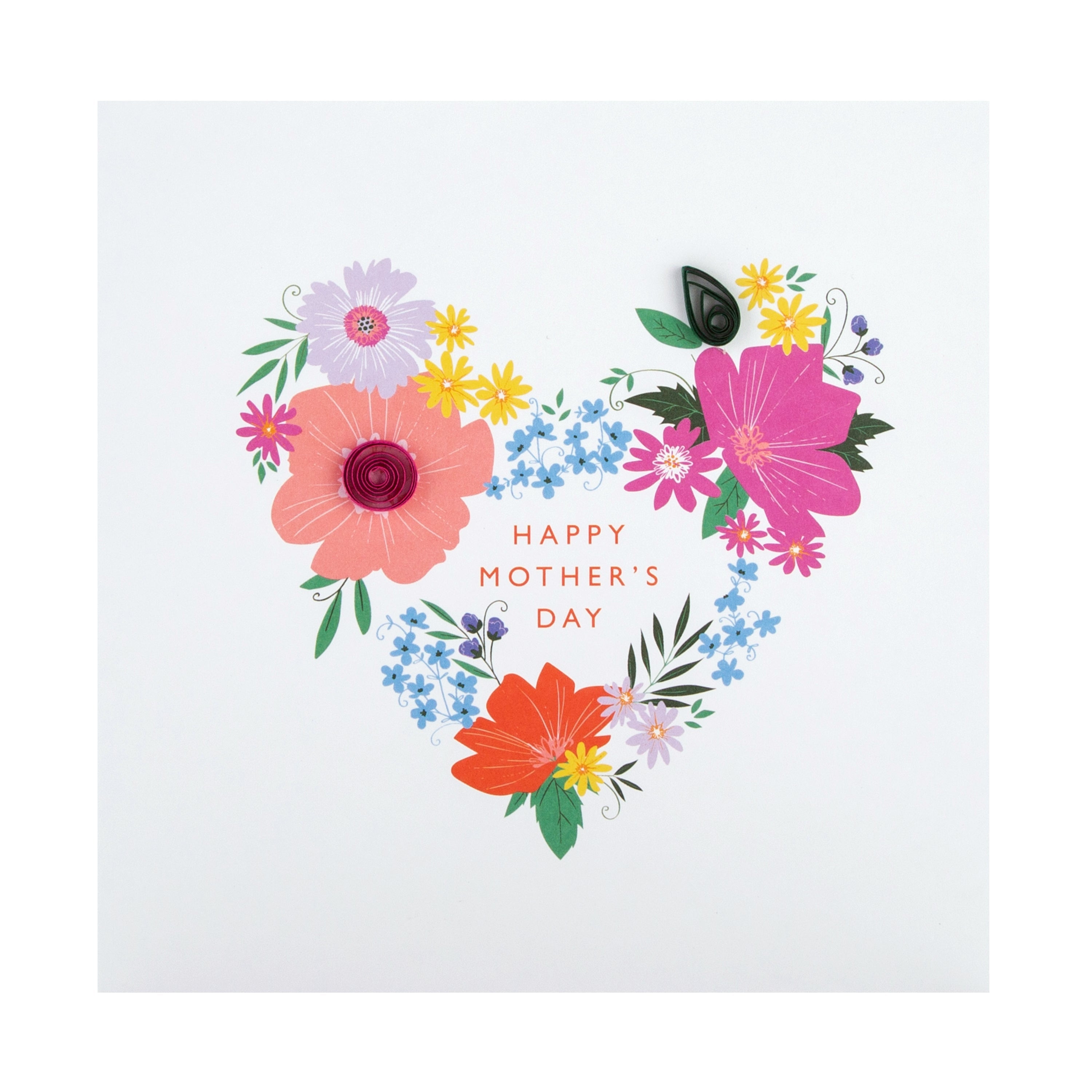 Contemporary Mother's Day Card - Floral Heart Design with Quilled Paper Details