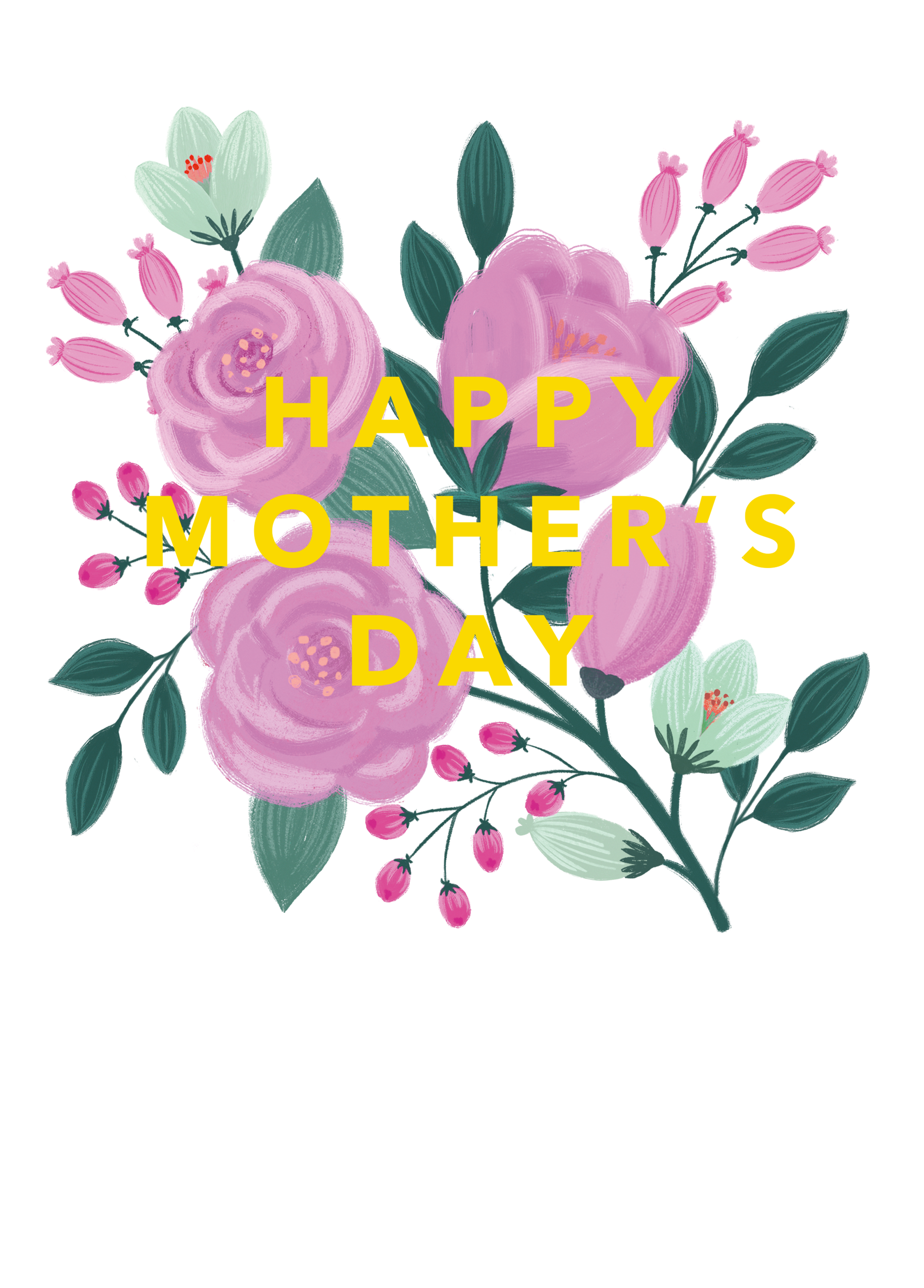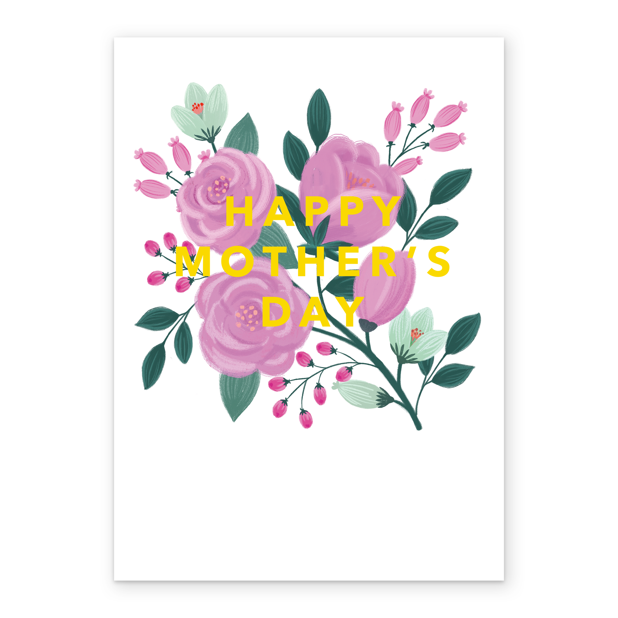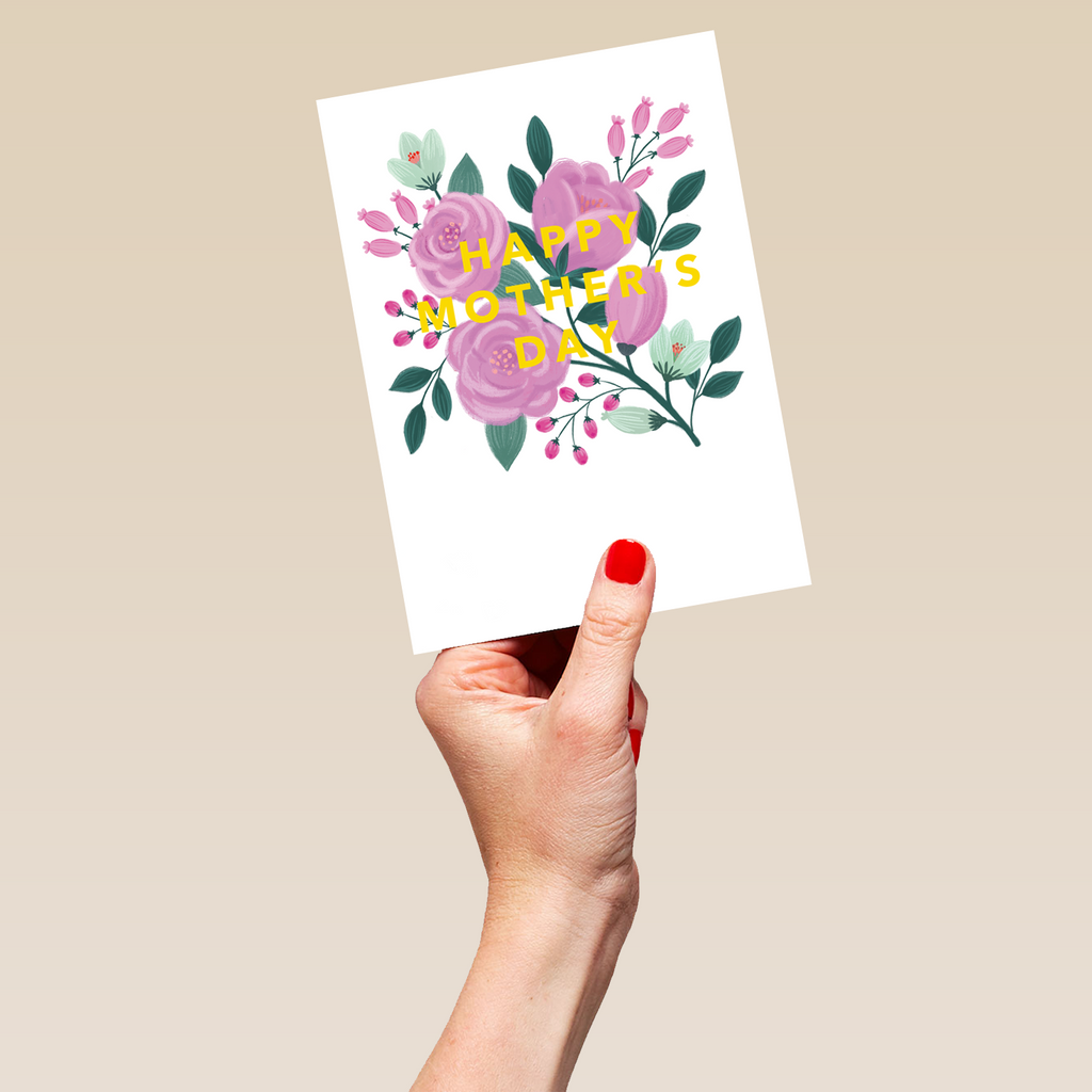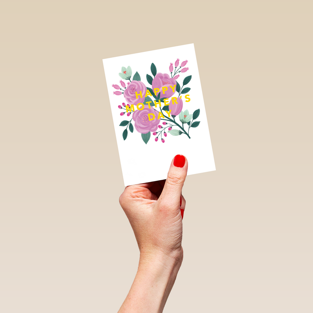 Printed on premium-quality board, this card features a simple contemporary illustrated floral design of pink and white flowers on a white background, with the message 'Happy Mother's Day', and comes complete with a co-ordinating white envelope.