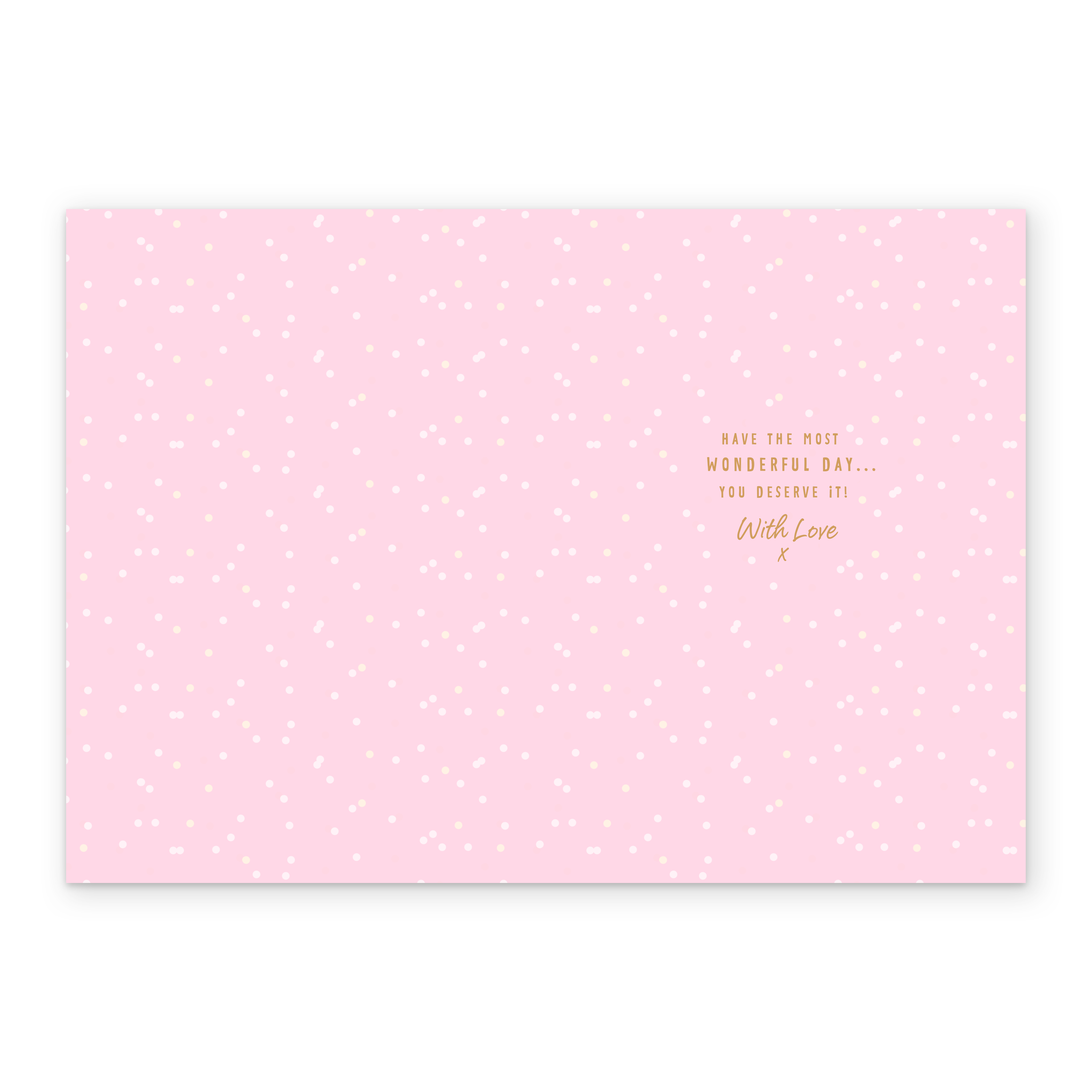 Message inside reads: Have the most wonderful day… You deserve it! With love x