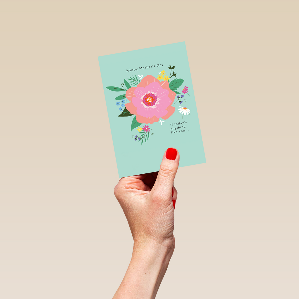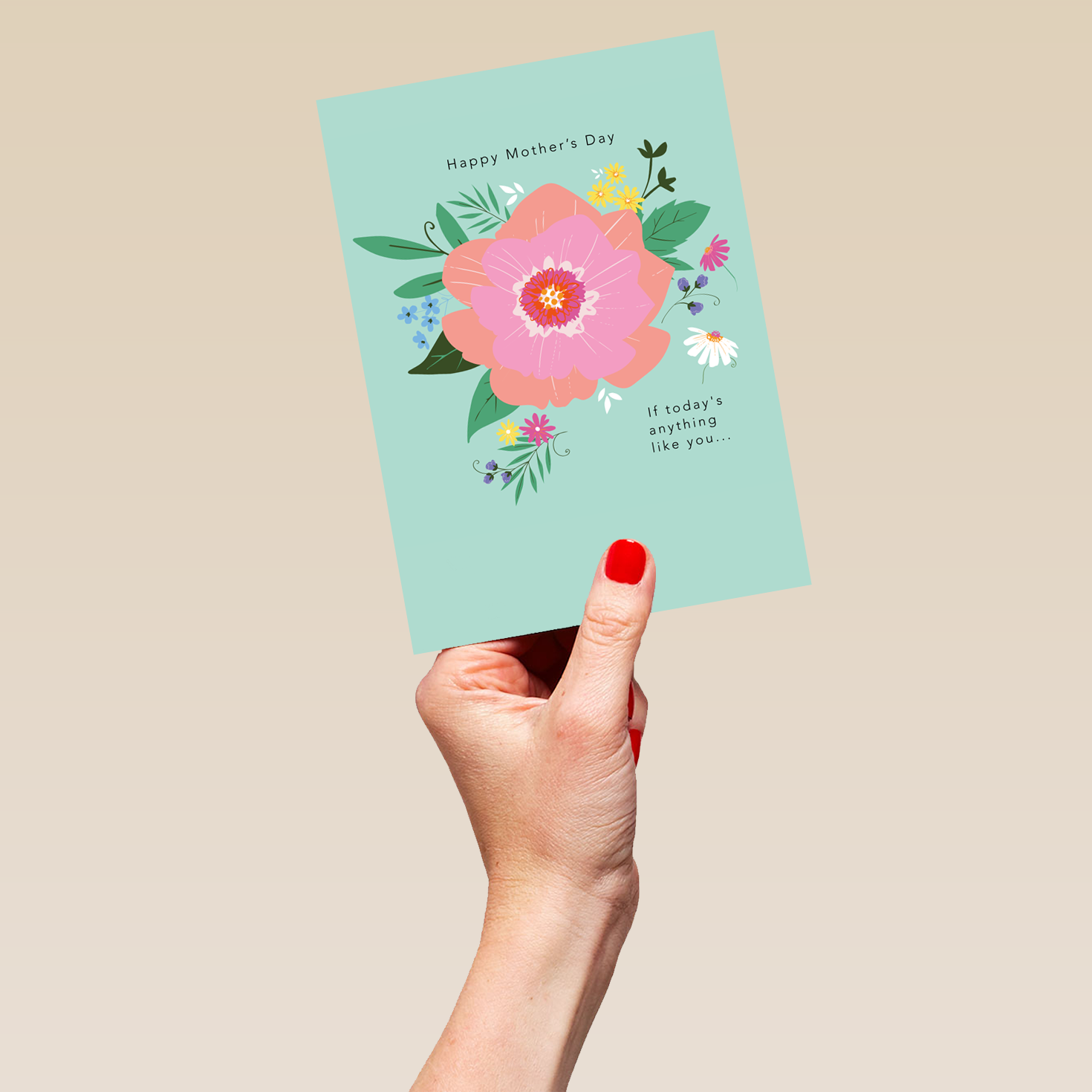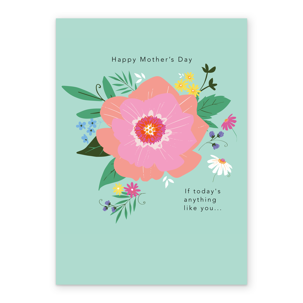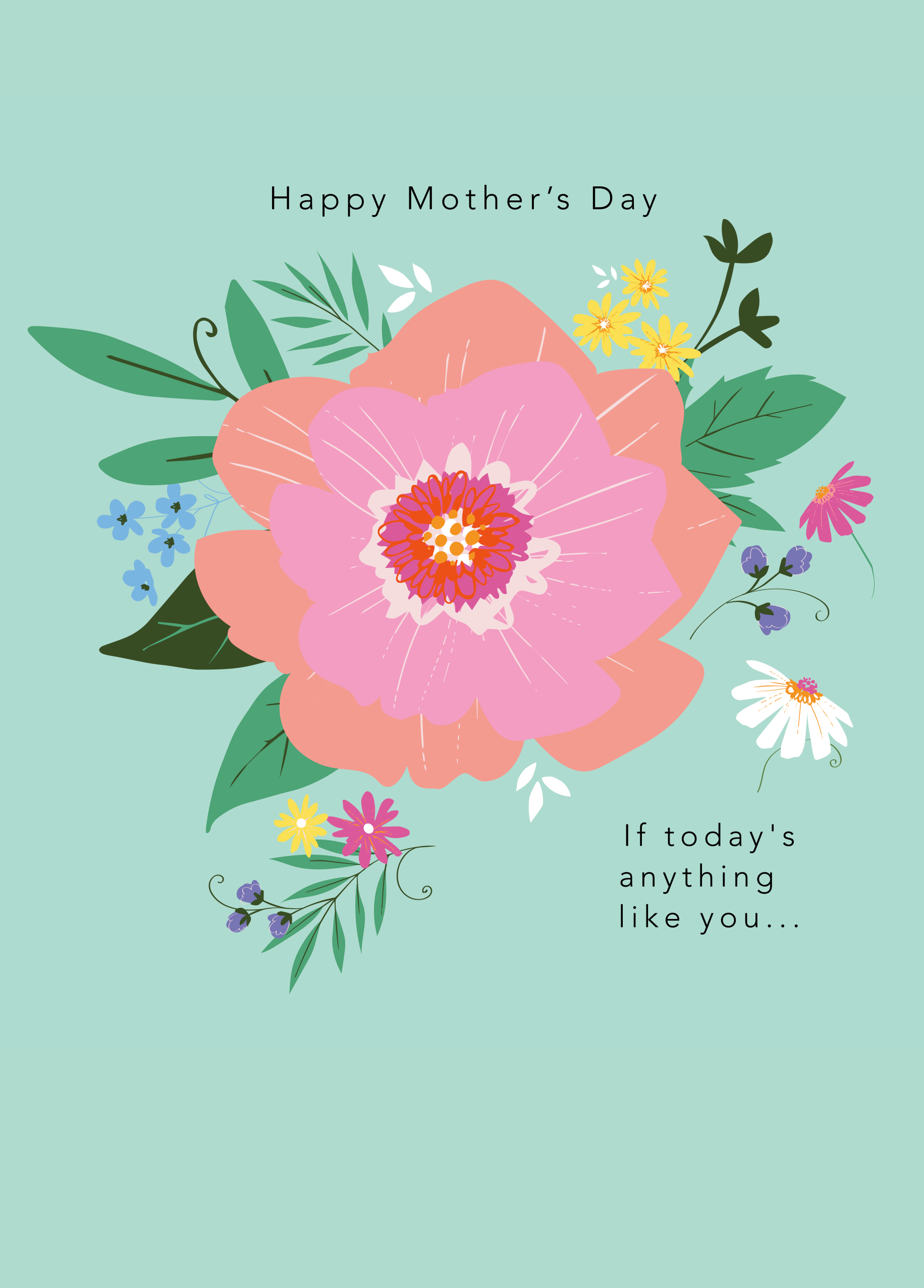 Printed on premium-quality board, this card features a contemporary floral illustration, on a light green background, with the message 'Happy Mother's Day. If today's anything like you…', and comes complete with a co-ordinating white envelope.