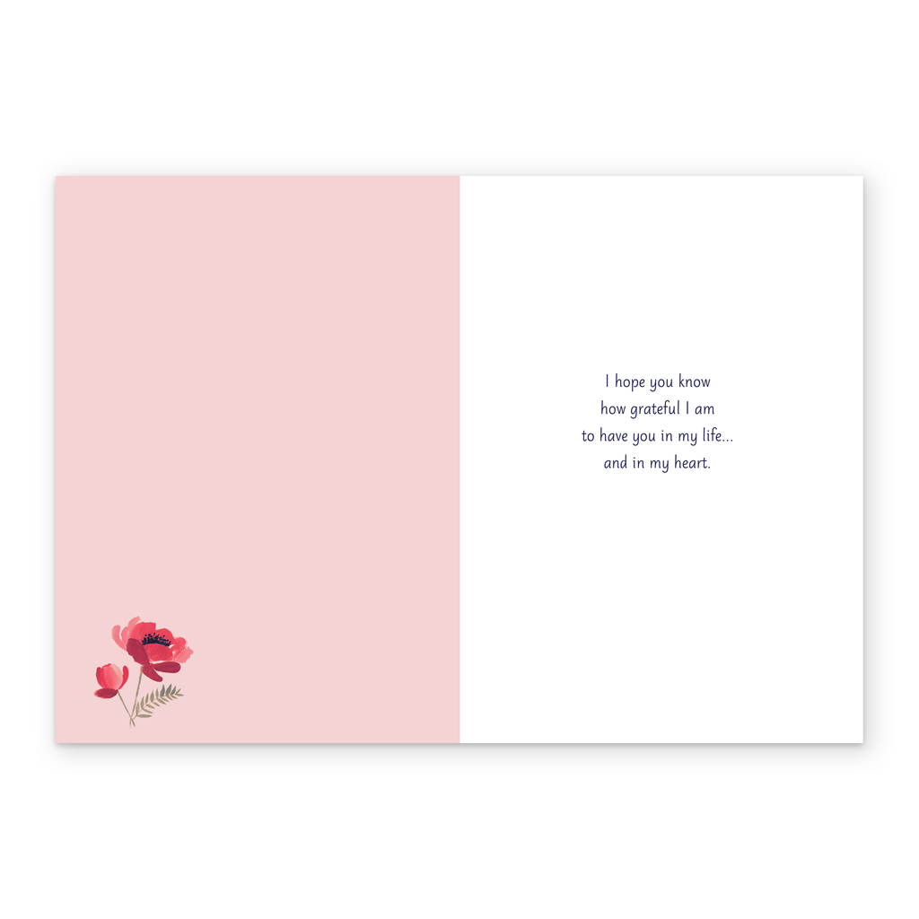 Message inside reads: I hope you know how grateful I am to have you in my life... and in my heart.