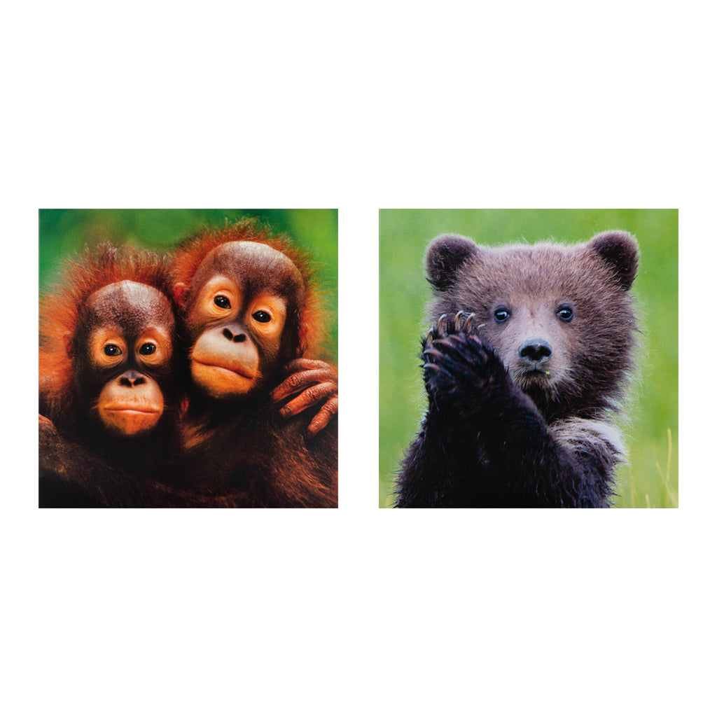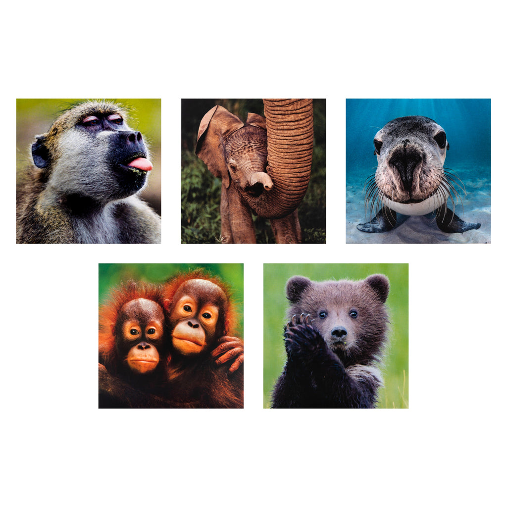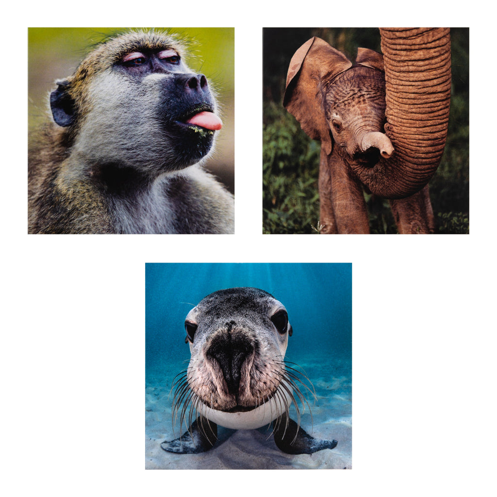 Printed on high-quality board, this pack of 10 greeting cards comes in 5 photographic animal designs, including a cheeky baboon poking out its tongue, a baby elephant being held by its mother's trunk, an Australian sea lion underwater, baby orangutans hugging and grizzly bear cub raising its paws.