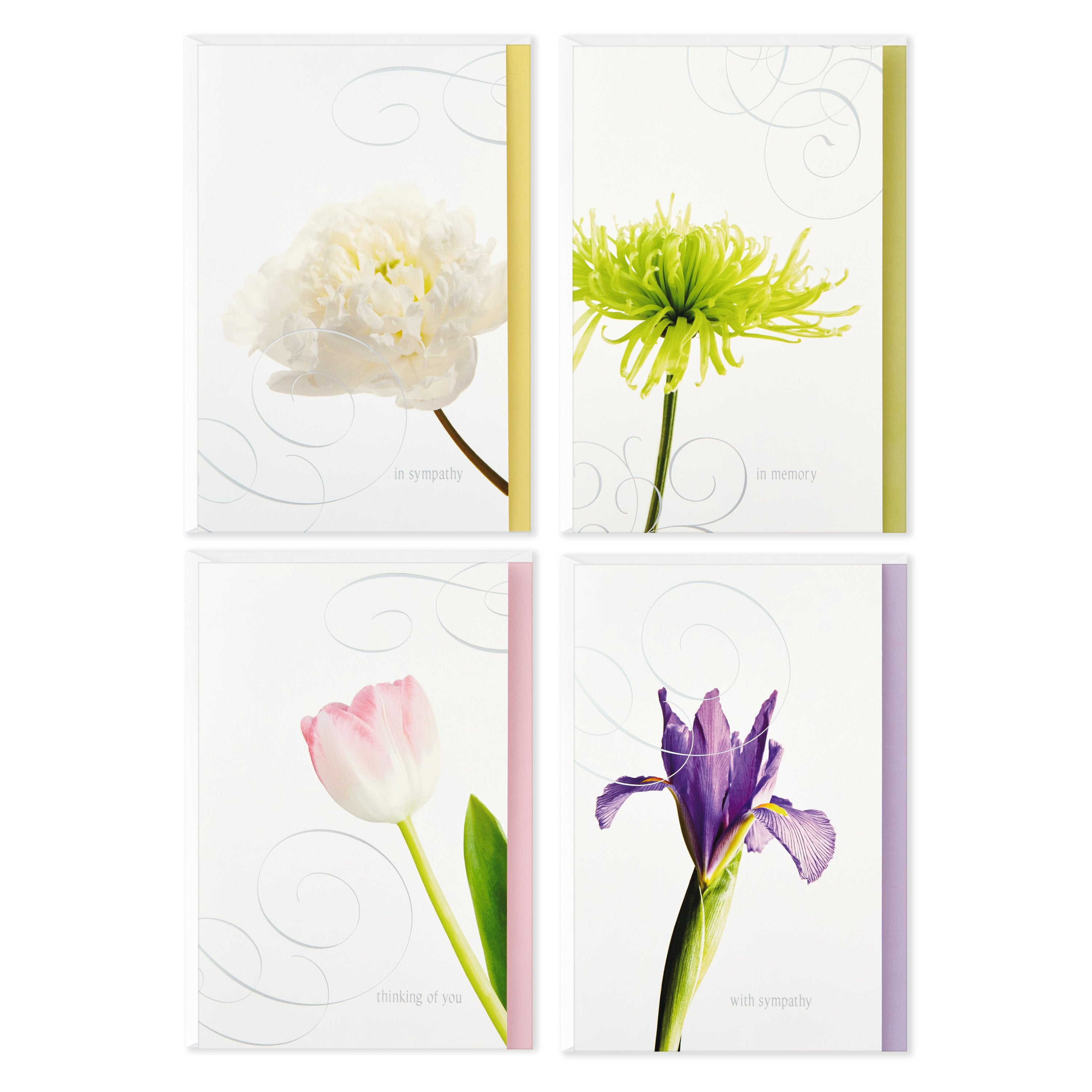 Sympathy Cards - Pack of 12 in 4 Photographic Floral Designs