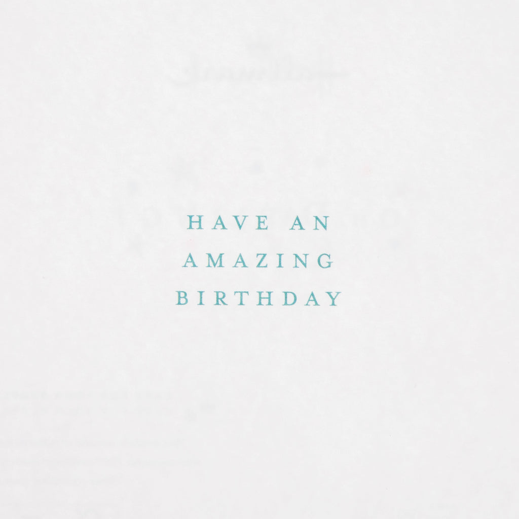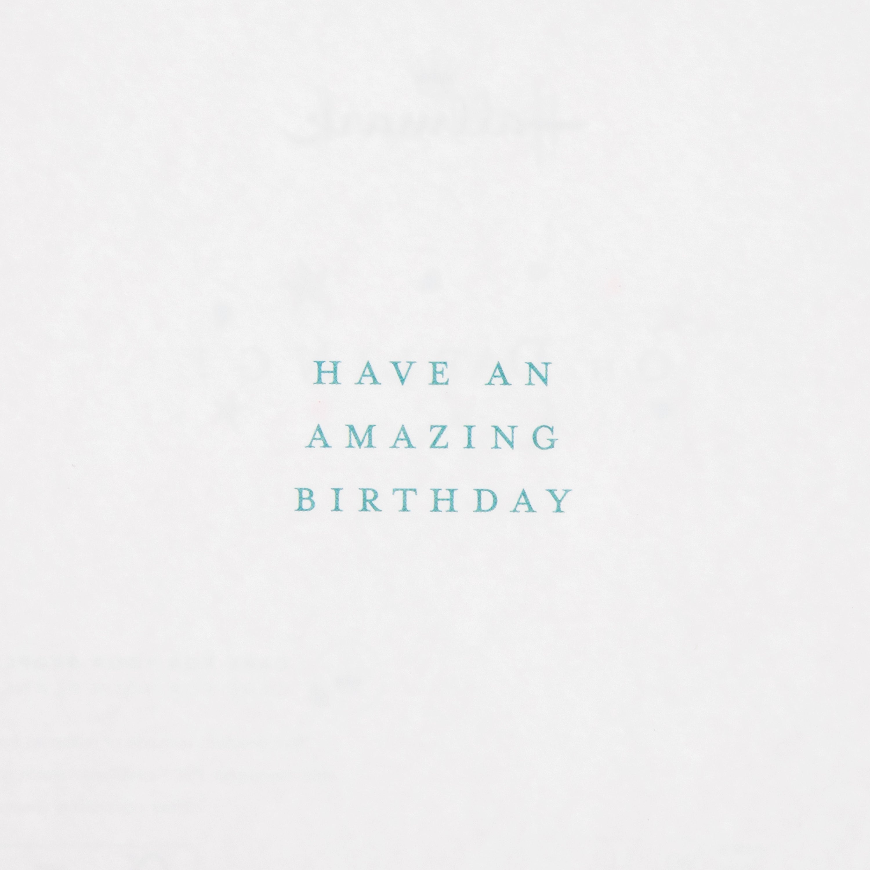 Printed on high-quality textured board, this card features embossed elements, textured embossed foil elements, neon print design, shaped edges, and comes complete with a co-ordinating Hallmark branded, Kraft envelope.