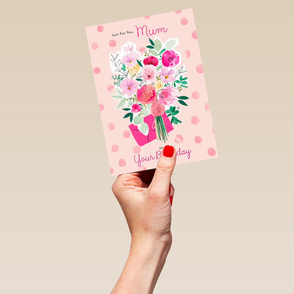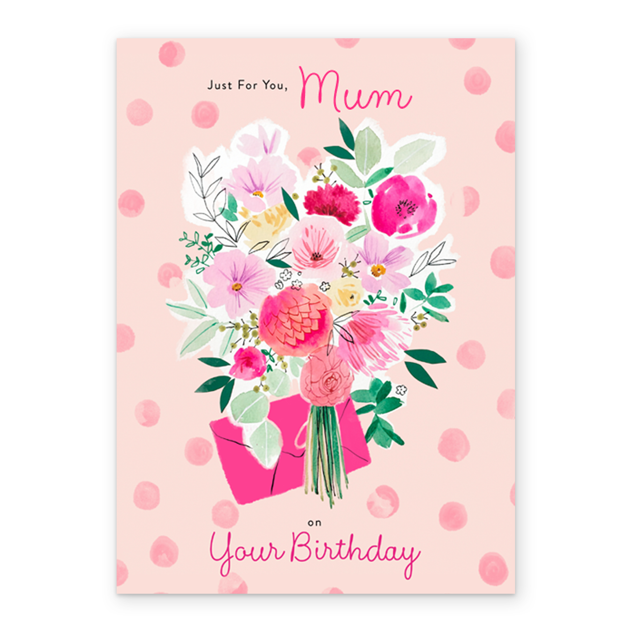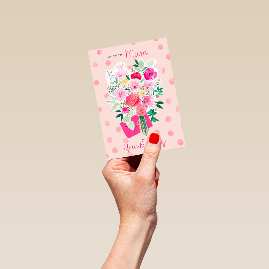 Show them you care with a personalised floral bouquet for mum card from Hallmark. Our birthday cards are printed on premium quality, FSC®-certified card & delivered nationwide. This card is available as standard 12cm by 16.7cm and large 15.5cm by 21.6cm.