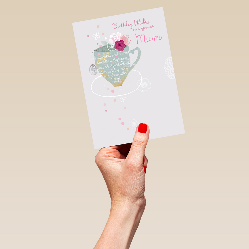 Show them you care with a personalised teapot for mum birthday card from Hallmark. Our birthday cards are printed on premium quality, FSC®-certified card & delivered nationwide. This card is available as standard 12cm by 16.7cm and large 15.5cm by 21.6cm.