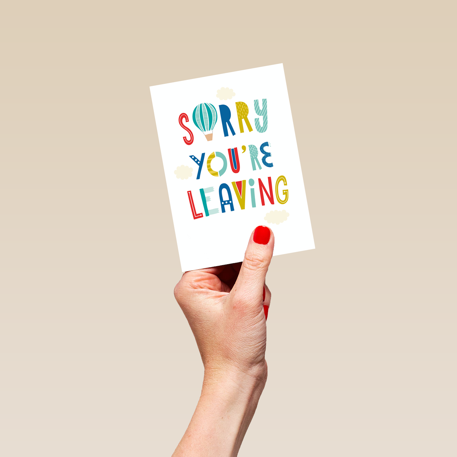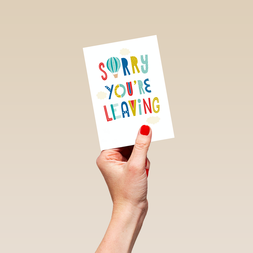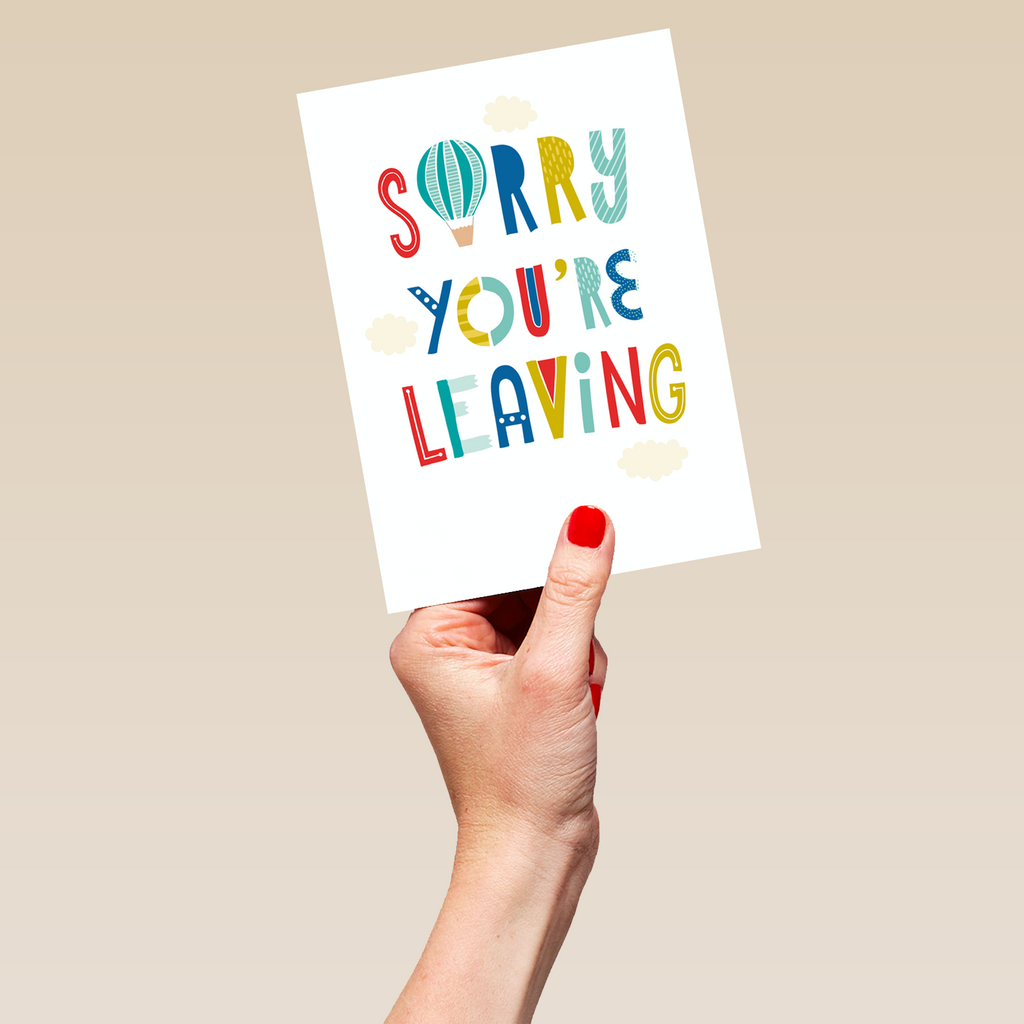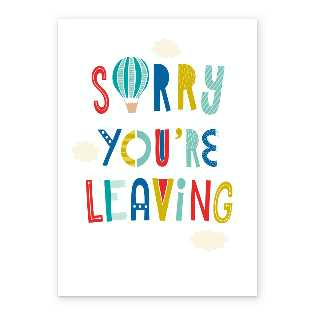 Show them you care with a personalised balloons leaving card from Hallmark. Our sorry you're leaving cards are printed on premium quality, FSC®-certified card & delivered nationwide. This card is available as standard 12cm by 16.7cm and large 15.5cm by 21.6cm.