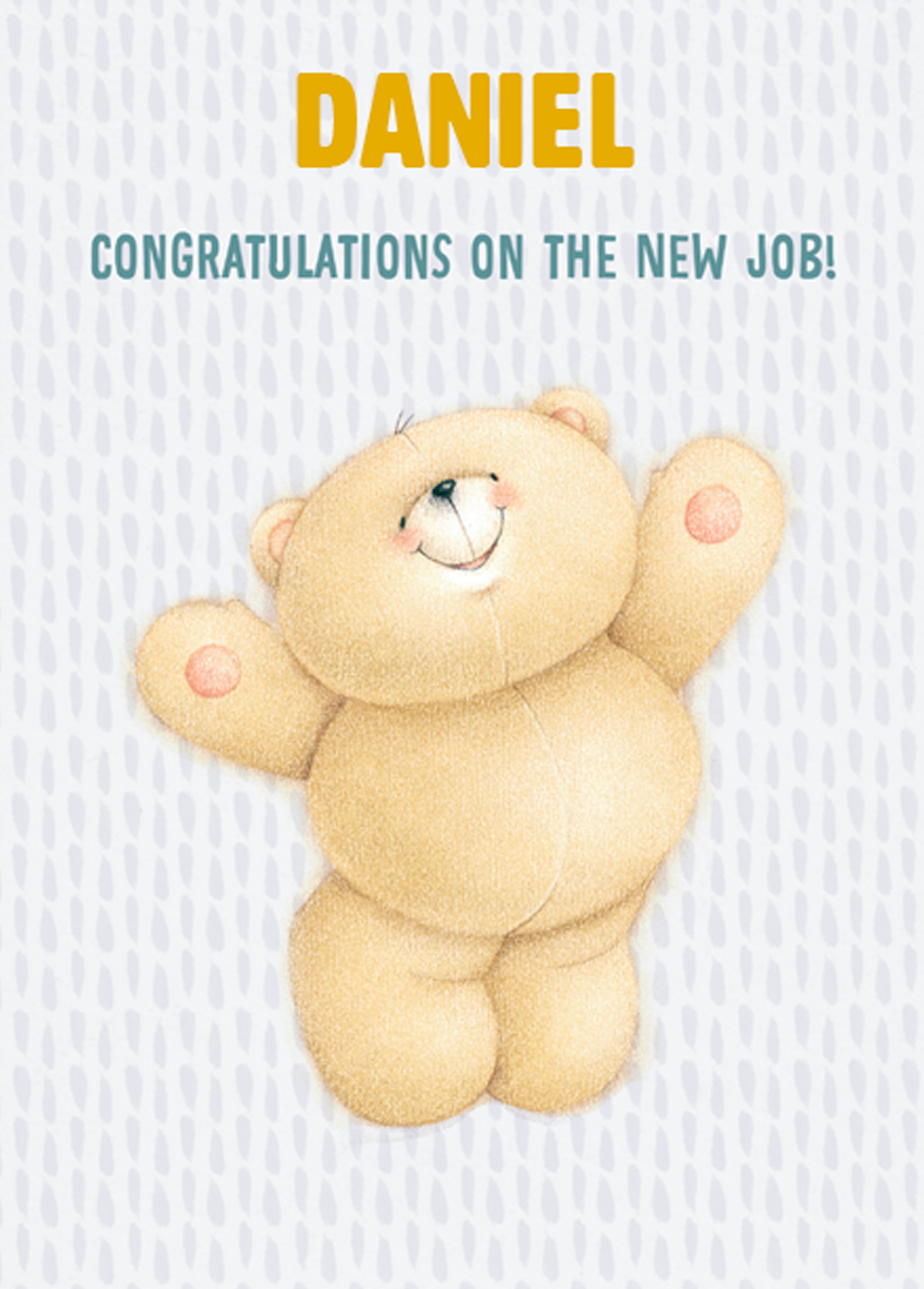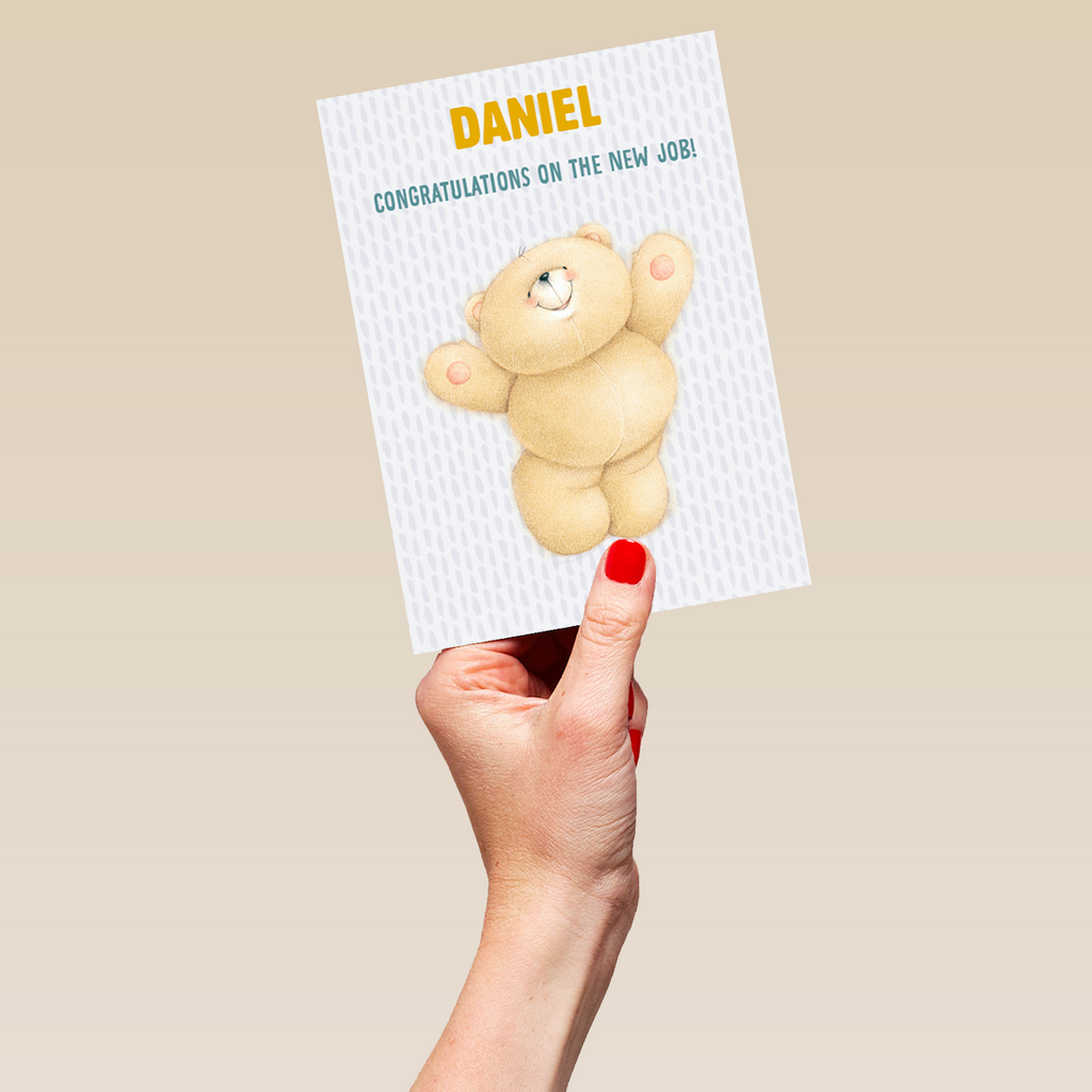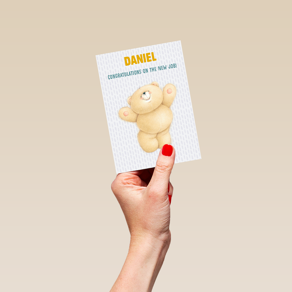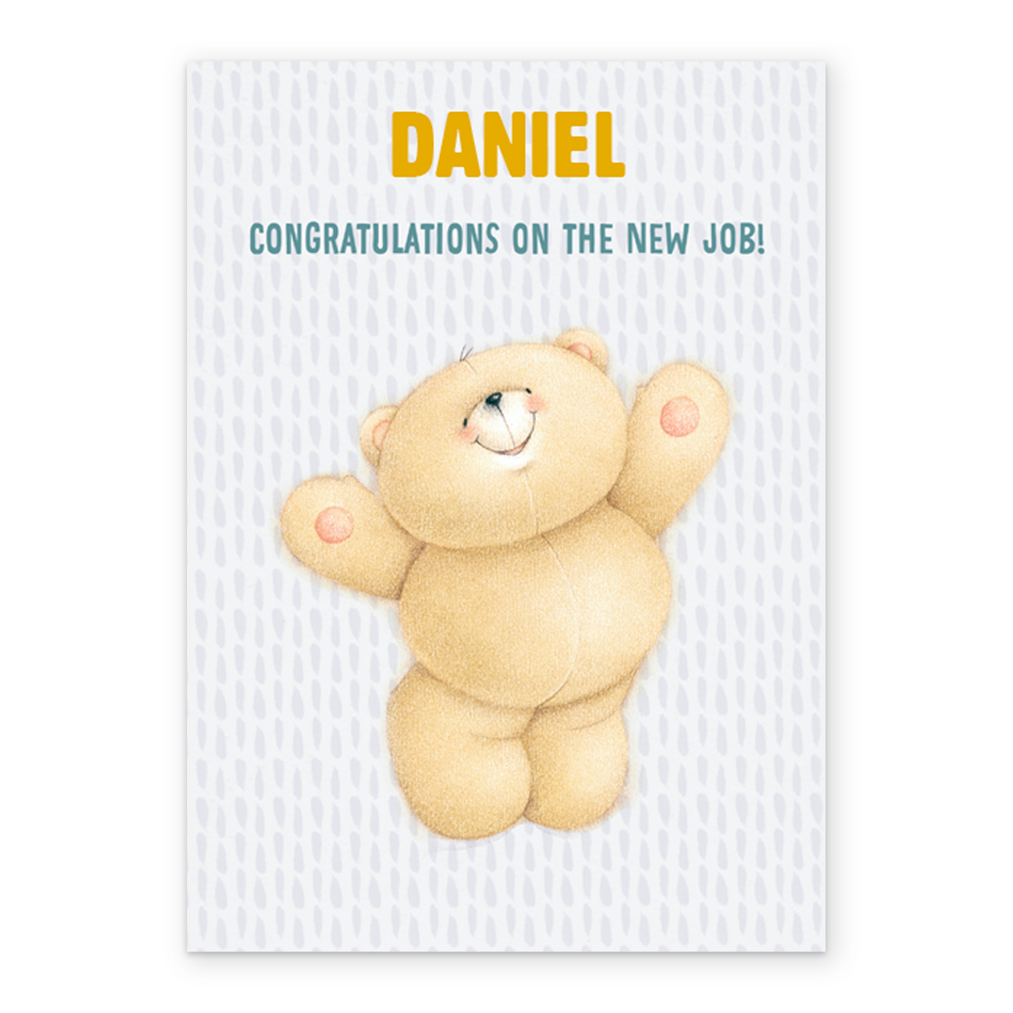 Show them you care with a personalised Forever Friends new job card from Hallmark. Our bear cards are printed on premium quality, FSC®-certified card & delivered nationwide. This card is available as standard 12cm by 16.7cm and large 15.5cm by 21.6cm.