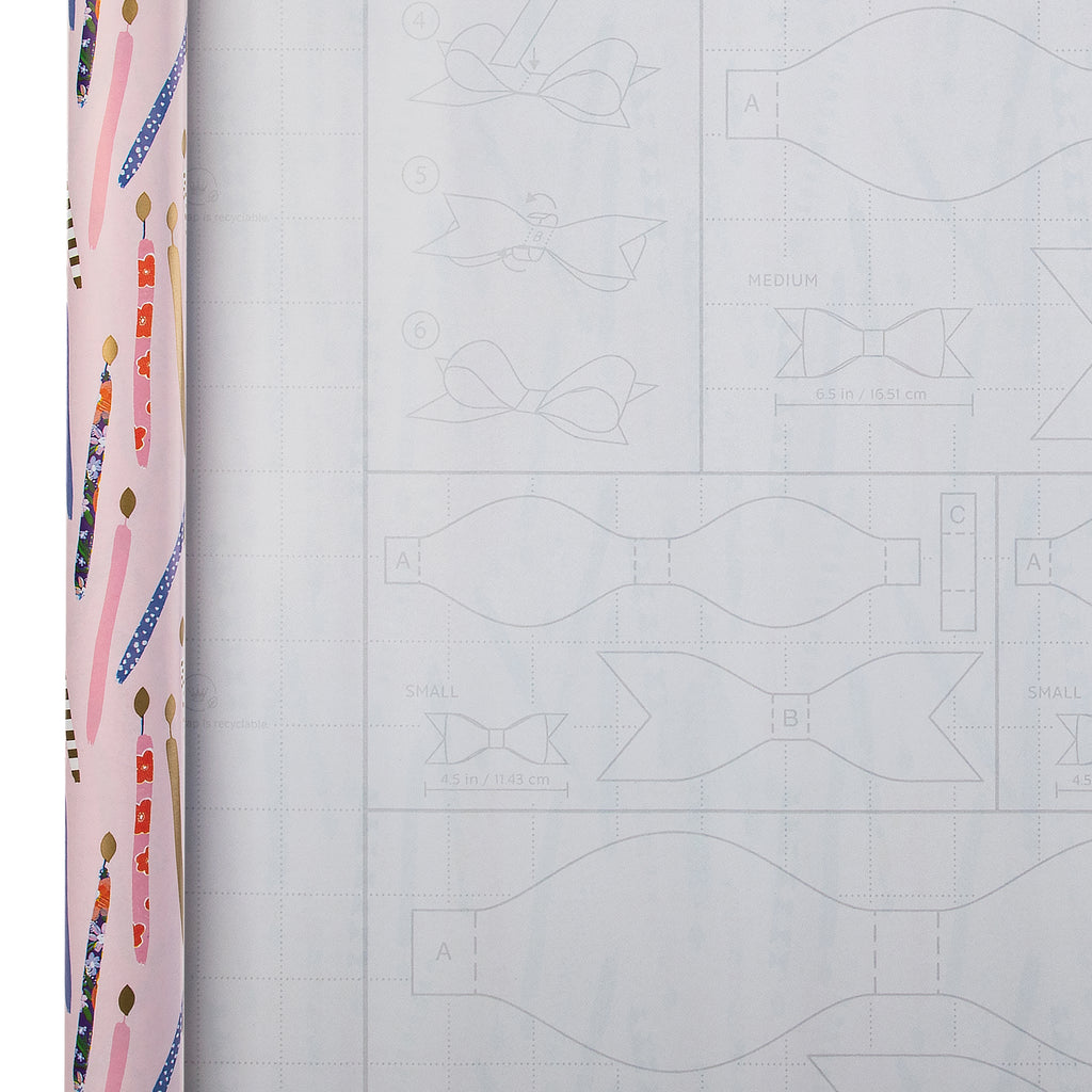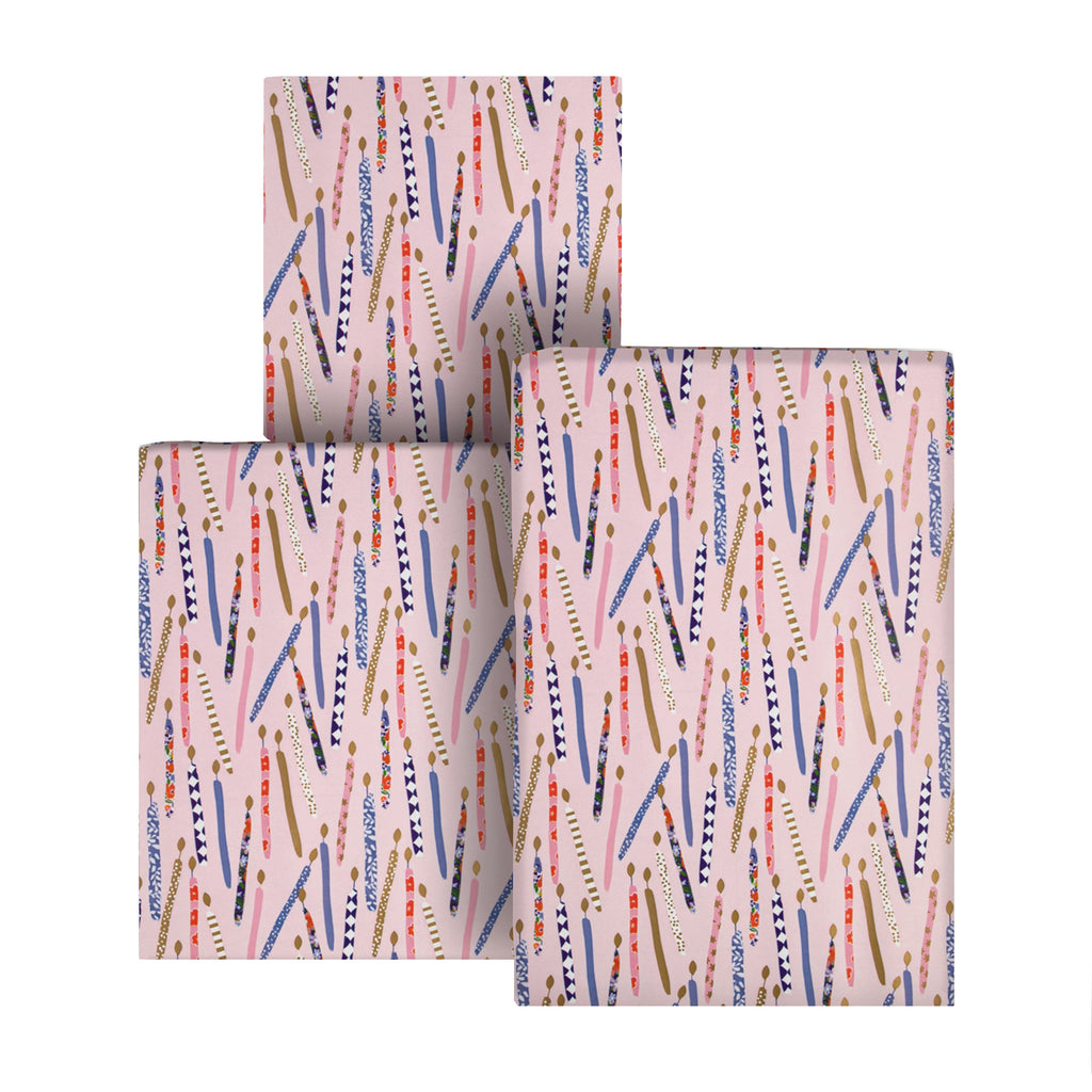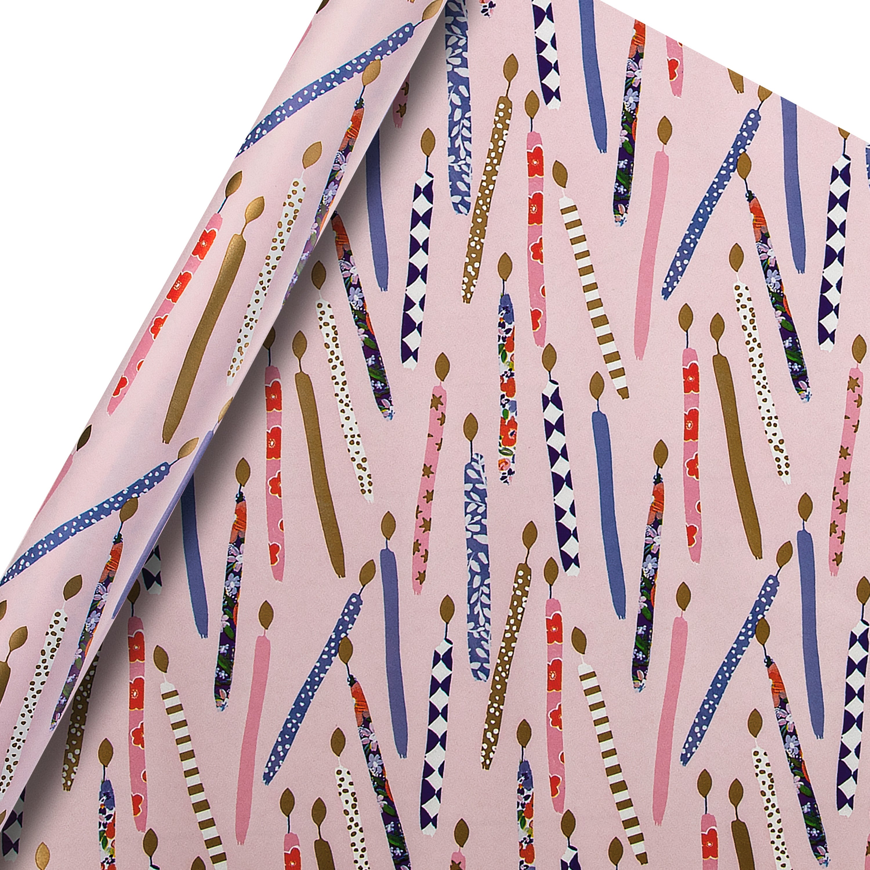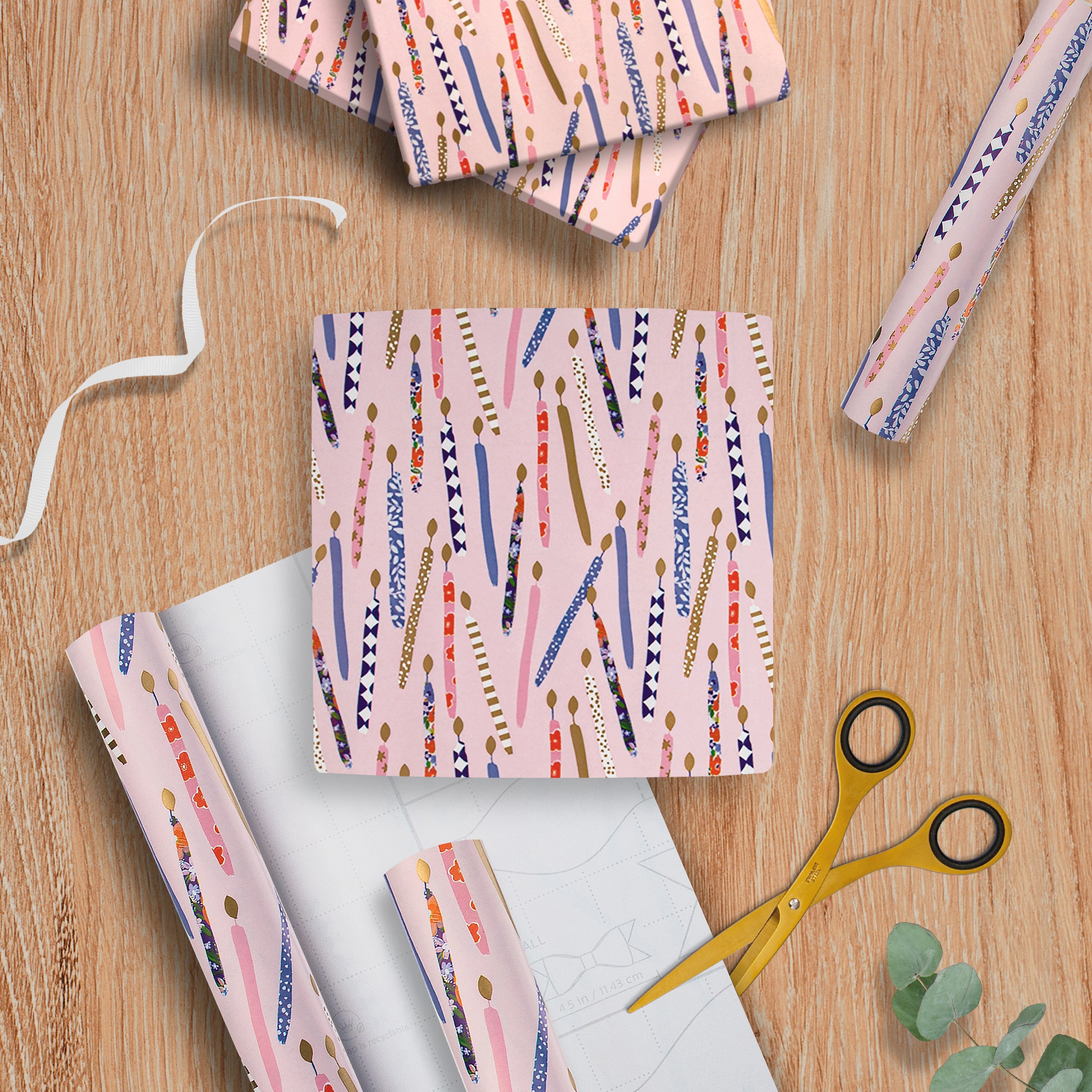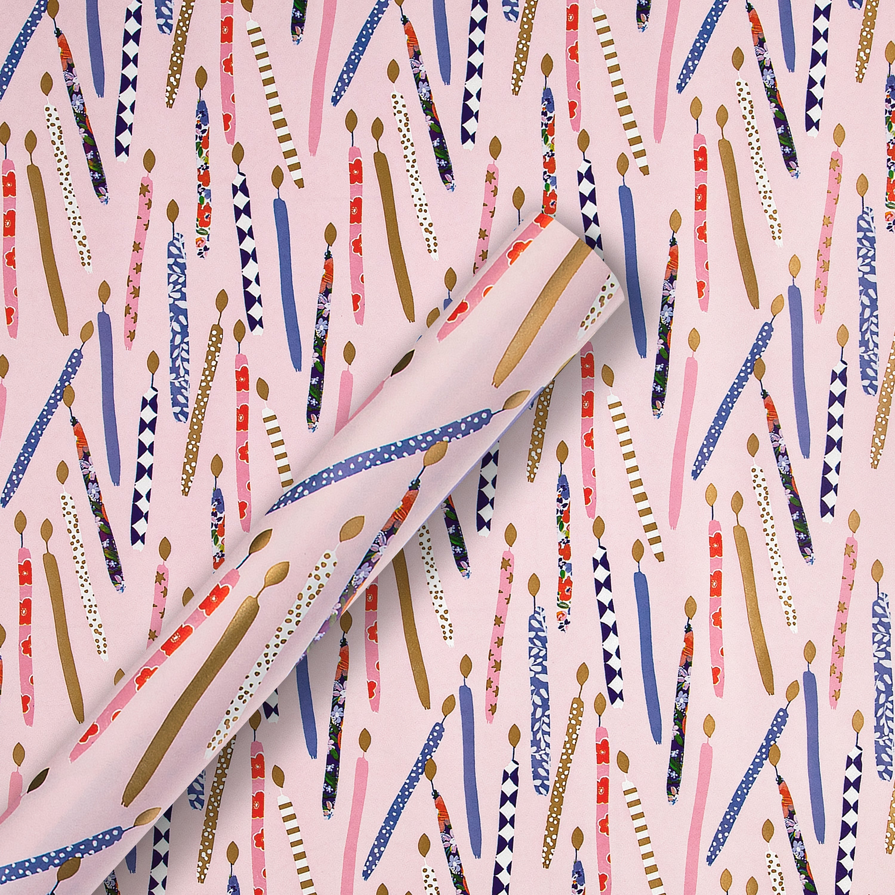 This pack features 3 rolls of wrapping paper in 1 pink background with colourful candles design.