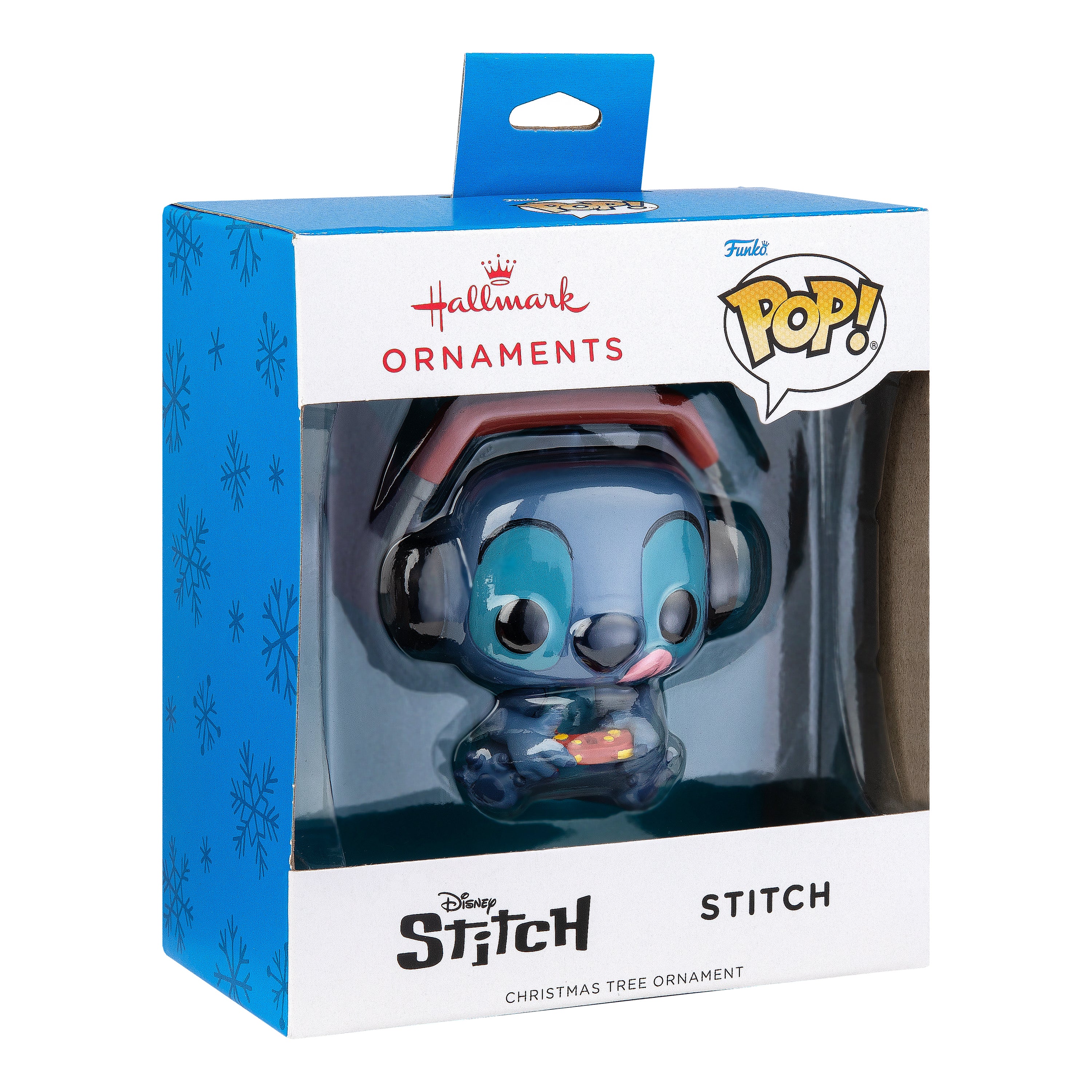 This ornament is made from hard-wearing resin and features Disney's Stitch wearing a headset and holding a controller in a Funko POP! Design, with a hanging loop and a white ribbon to hang the ornament up. Perfect for a Birthday, Christmas or Just Because.