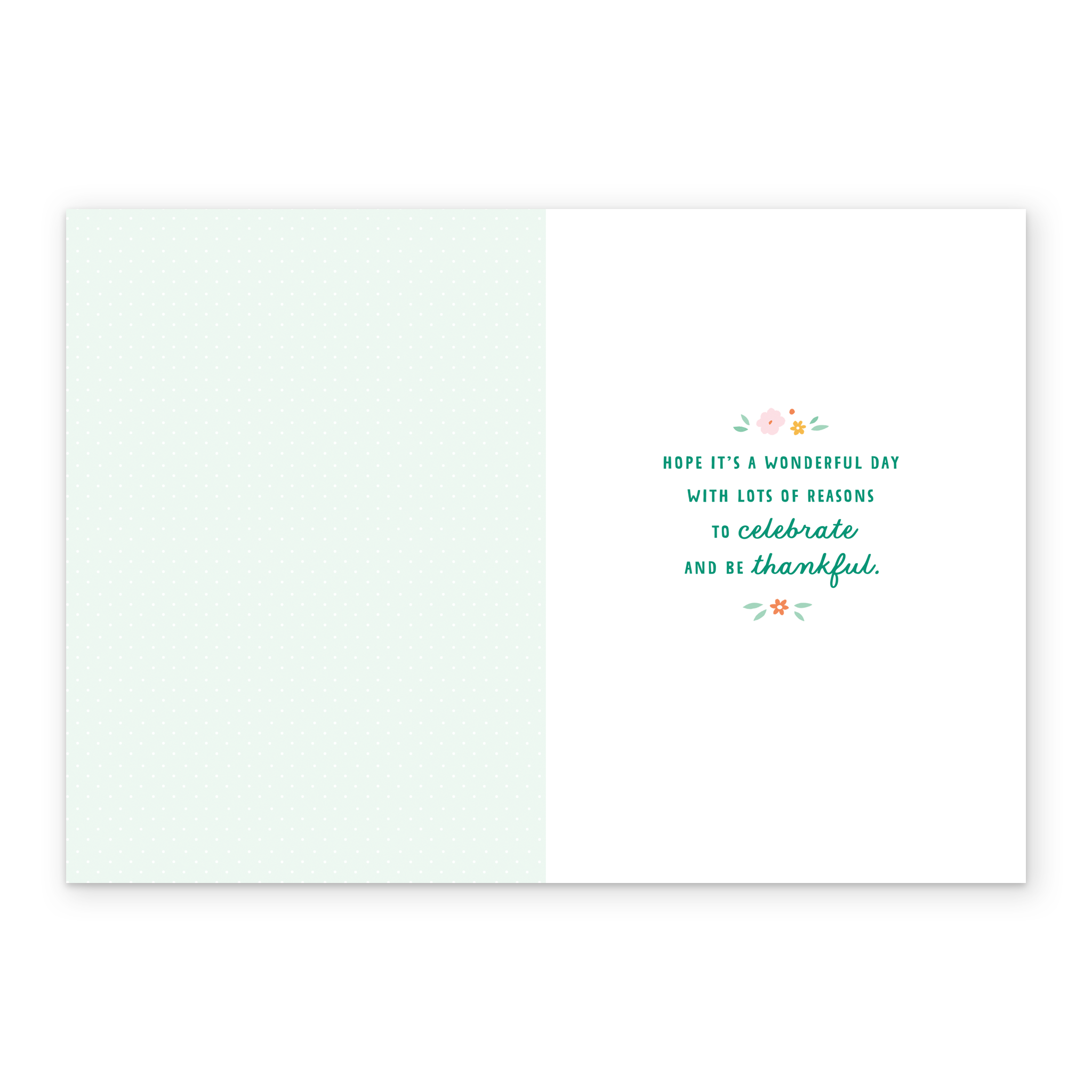 Message inside reads: Hope it's a wonderful day with lots of reasons to celebrate and be thankful.