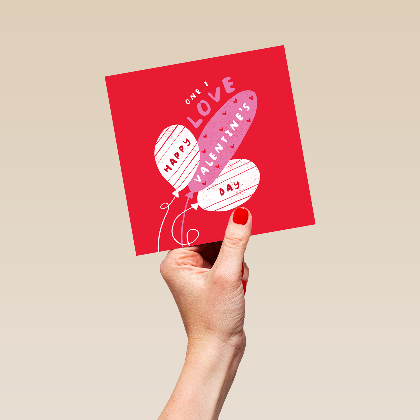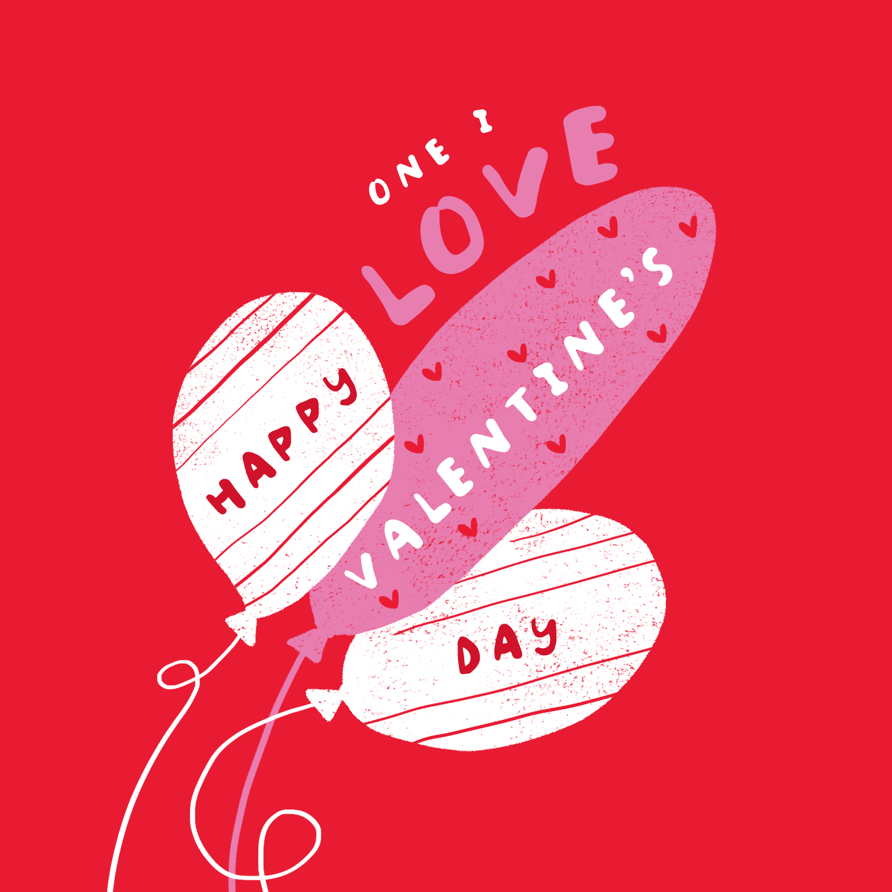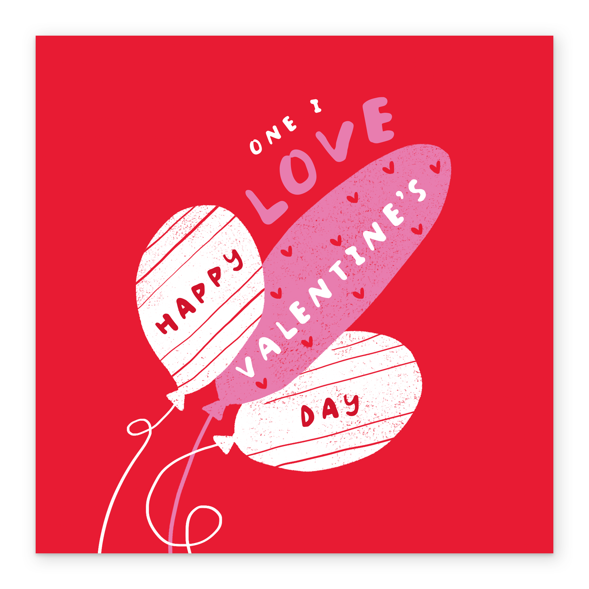 Printed on premium-quality board, this card features a quirky (and slightly rude) illustrated bunch of balloons set against a bright red background with white, pink and red lettering, with the message 'One I Love. Happy Valentine's Day', and comes complete with a co-ordinating white envelope.