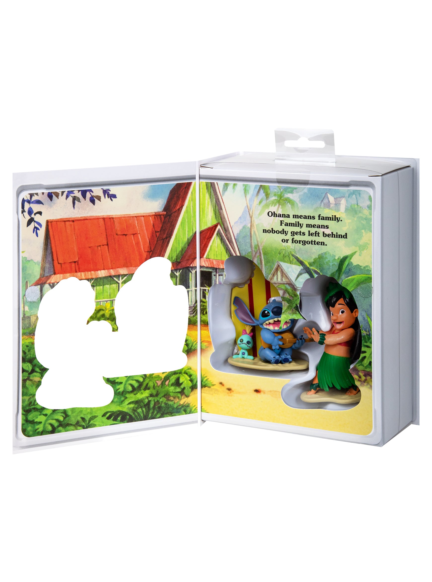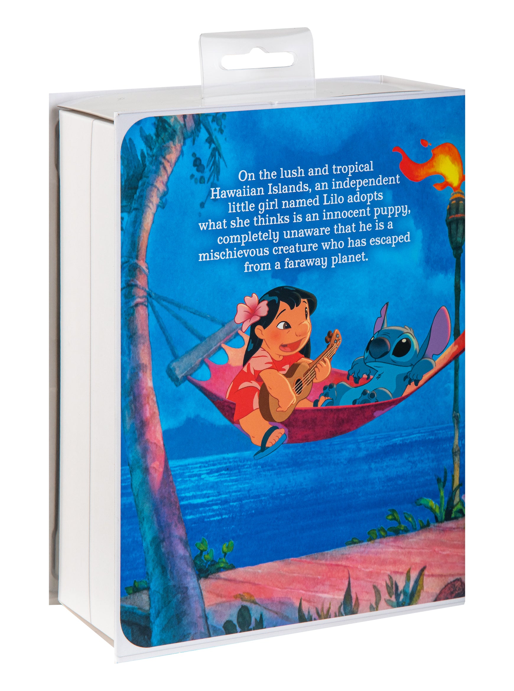 This Storied Moment collectible features a set of 2 ornaments, Stitch sat by a surf board with Scrump and Lilo hula dancing. Each ornament is made of hard-wearing plastic with a hanging attachment for easy display and comes in a Lilo and Stitch VHS inspired box.