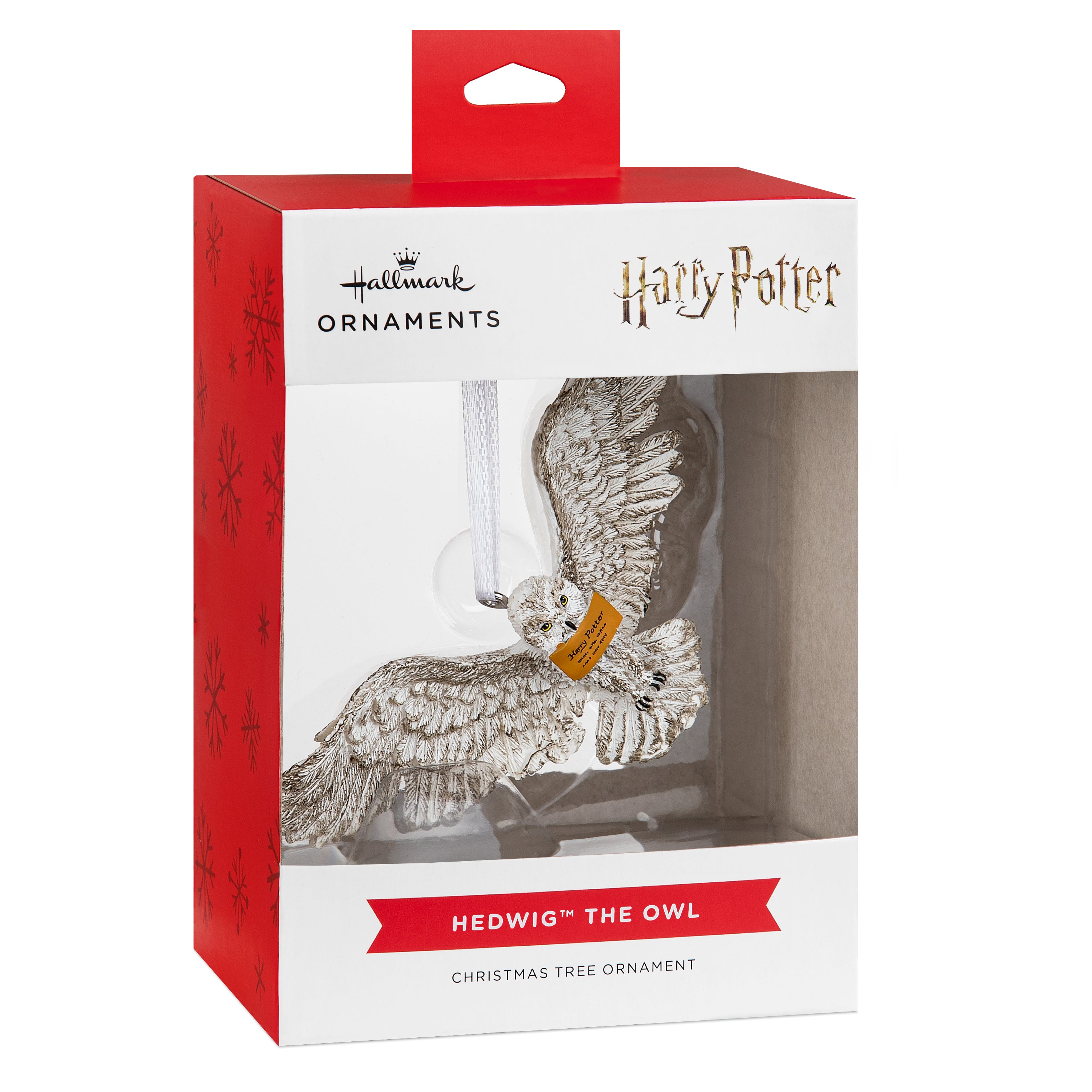 This hanging ornament is made from hardwearing resin and features Harry Potter's™ owl, Hedwig™ with her wings spread wide and carrying a Hogwarts™ letter to Harry in her beak, with a hanging loop and white ribbon for easy display.