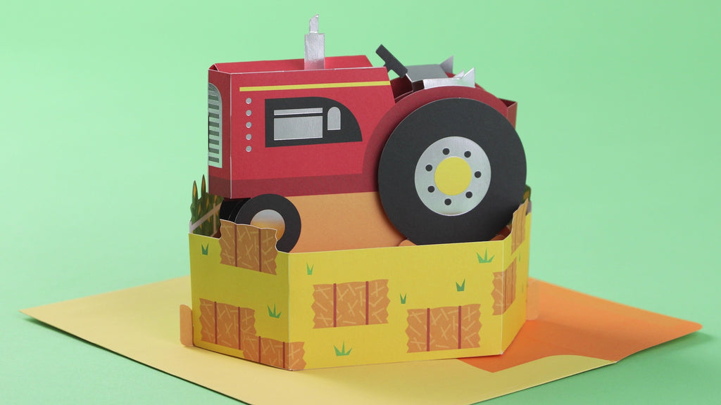 Make their entire day with a card they'll love forever, with this exciting 3D and pop-up red farmer's tractor card, perfect for kids birthdays, graduations, retirements, father's day and more.