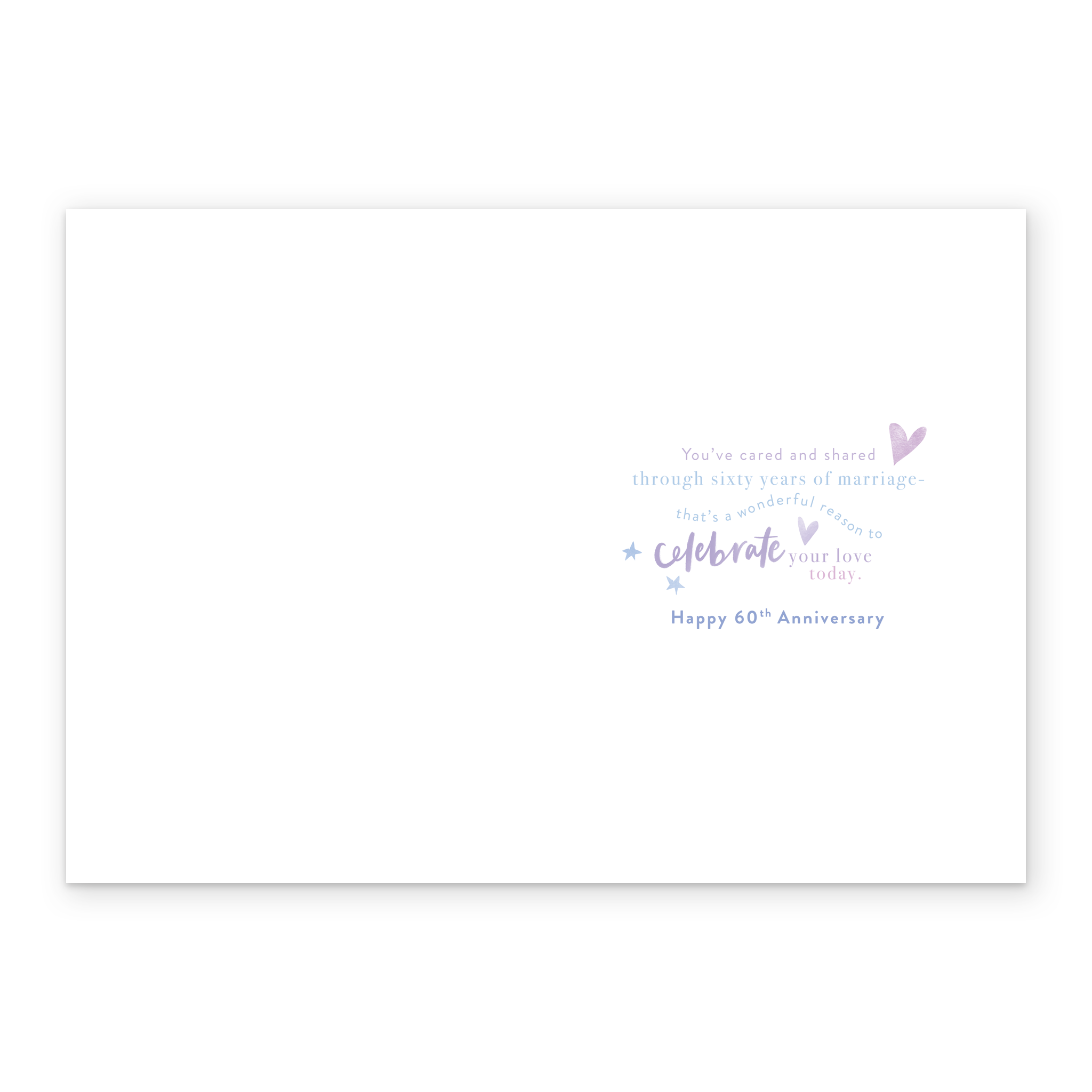 Message inside reads: You've cared and shared through sixty years of marriage - that's a wonderful reason to celebrate your love today. Happy 60th Anniversary