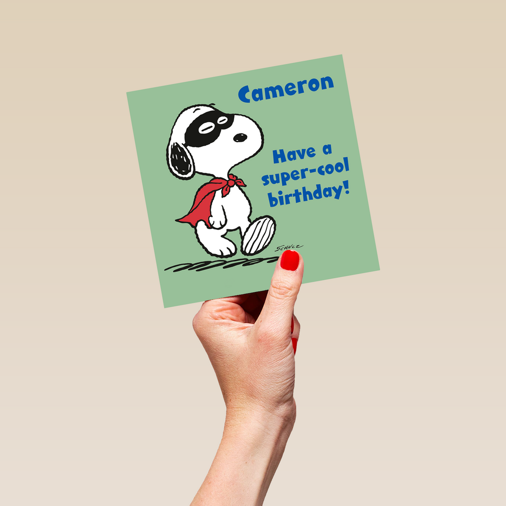 Personalised PEANUTS™ SNOOPY Superhero Birthday Card