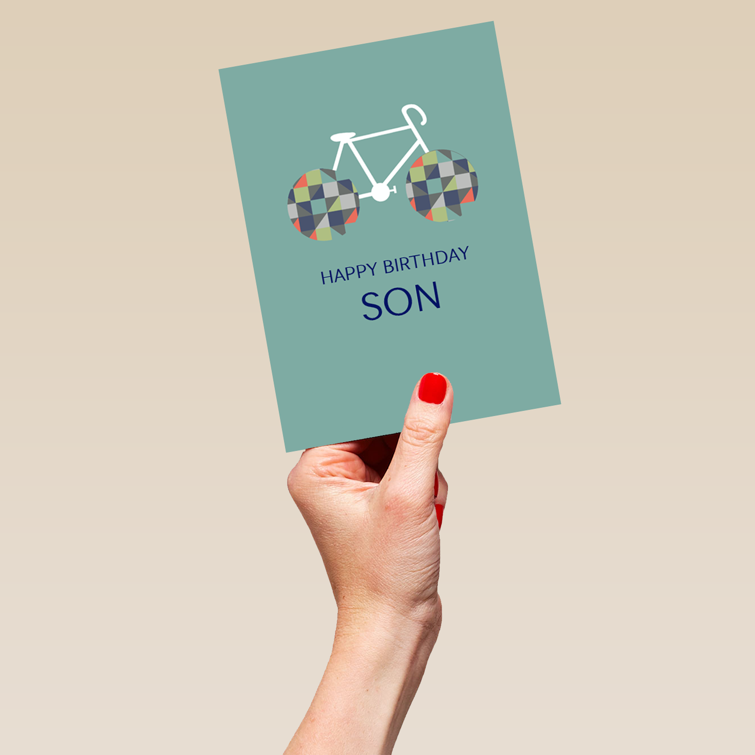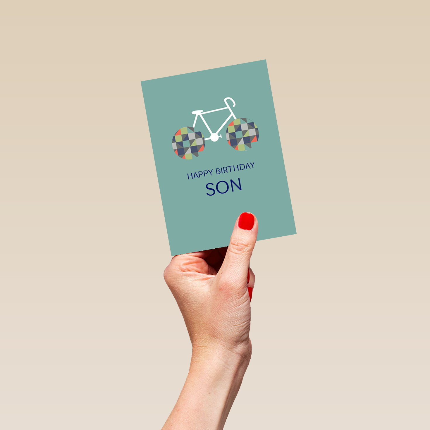 Show them you care with a personalised son birthday bicycle card from Hallmark. Our birthday cards are printed on premium quality, FSC®-certified card & delivered nationwide. This card is available as standard 12cm by 16.7cm and large 15.5cm by 21.6cm.