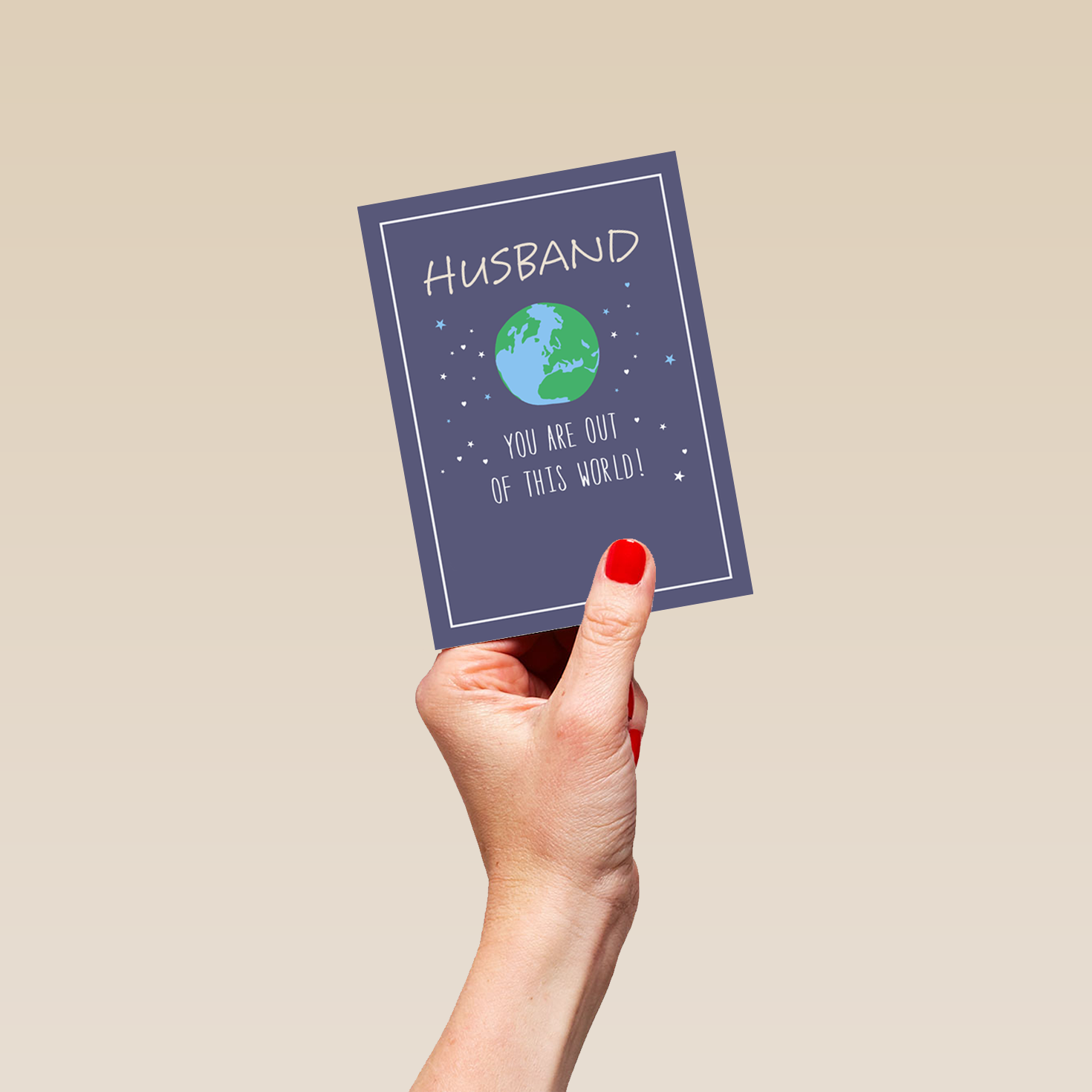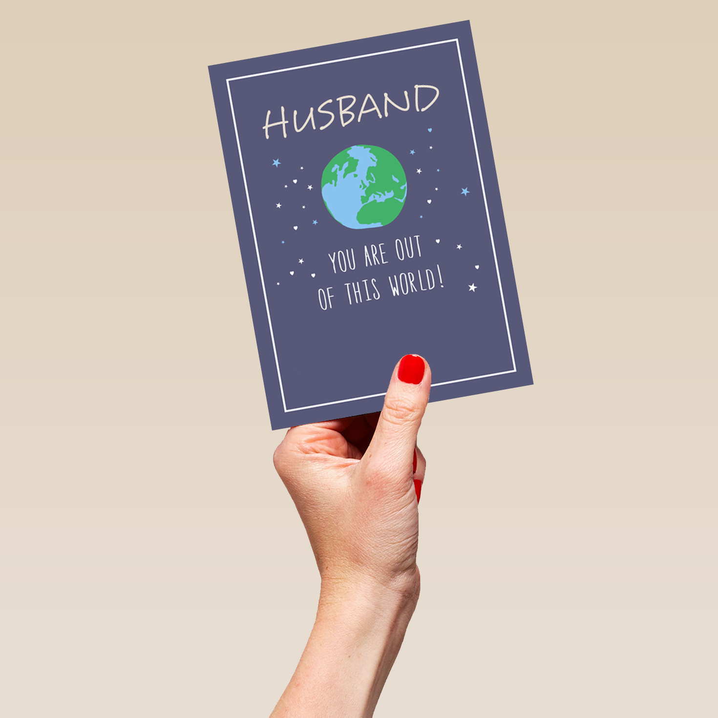 Show them you care with a personalised universe themed husband card from Hallmark. Our birthday cards are printed on premium quality, FSC®-certified card & delivered nationwide. This card is available as standard 12cm by 16.7cm and large 15.5cm by 21.6cm.