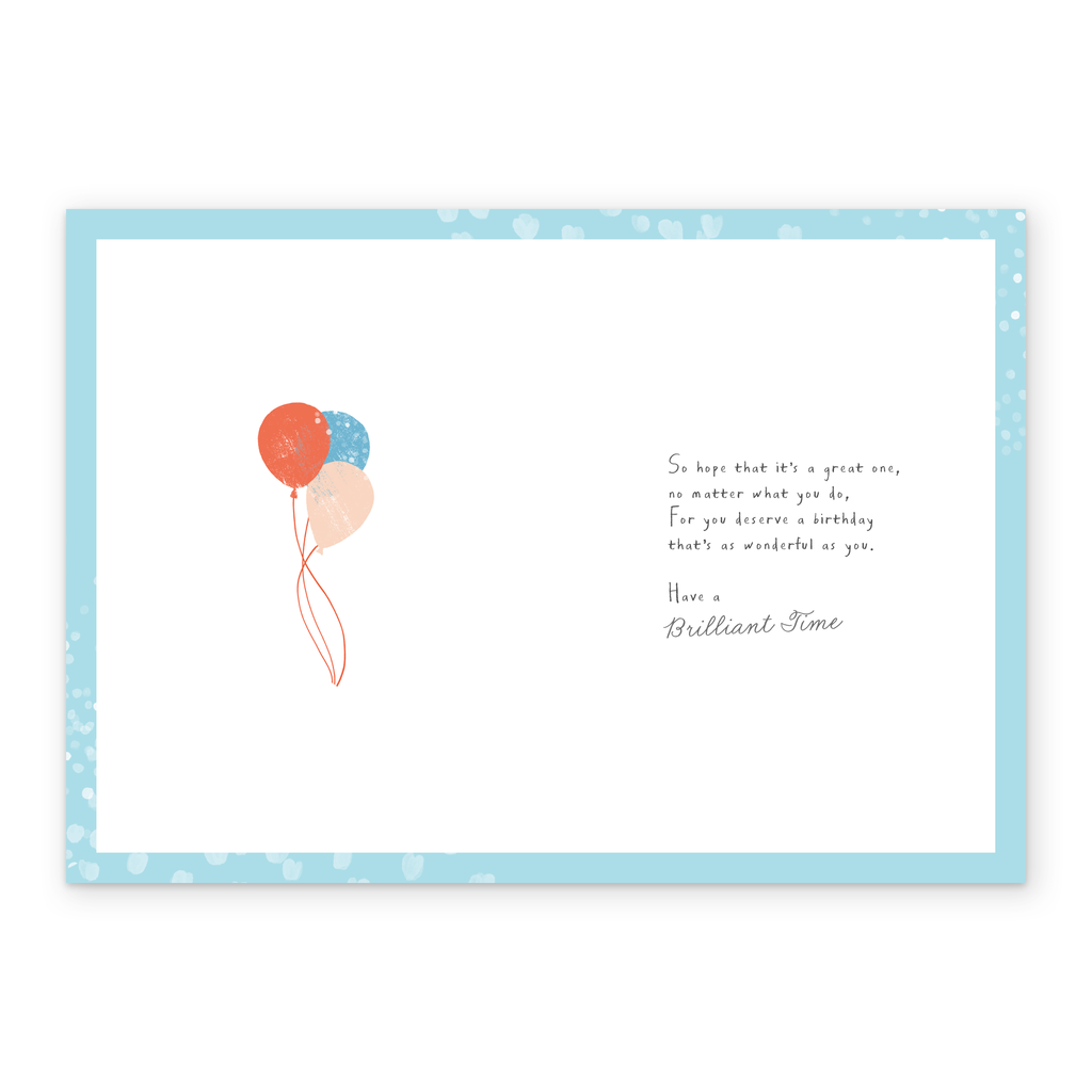 Message inside reads: So hope that it's a great one, no matter what you do, For you deserve a birthday that's as wonderful as you. Have a brilliant time