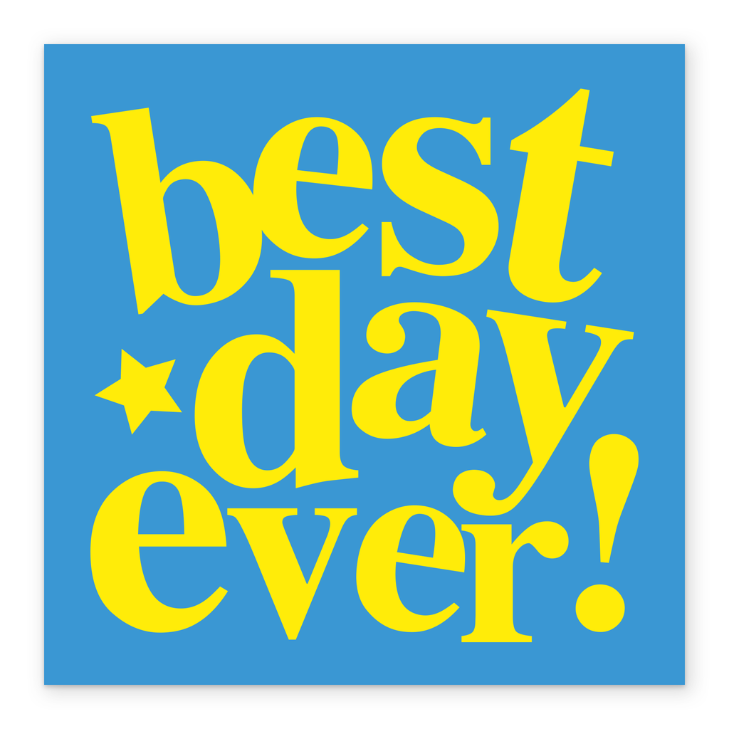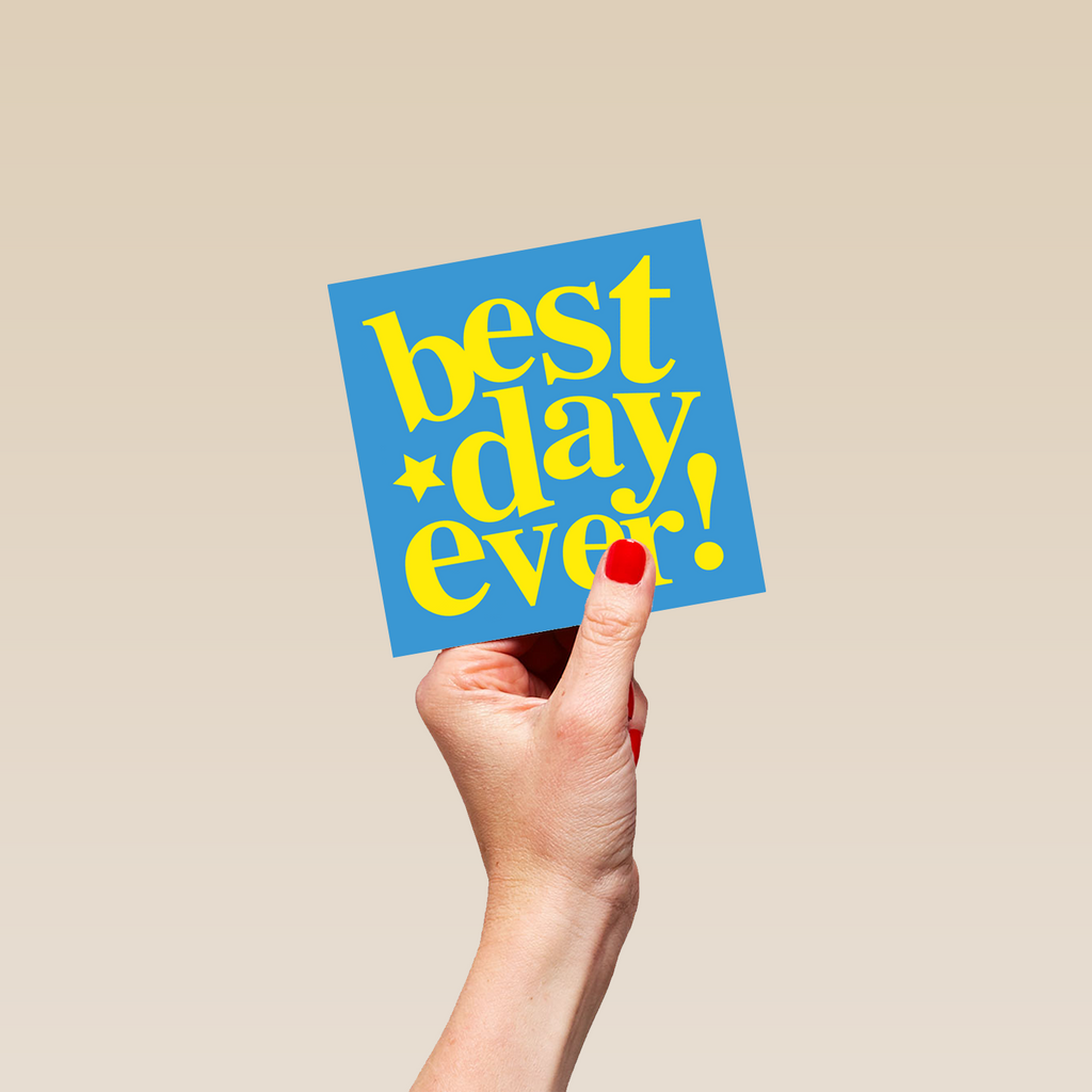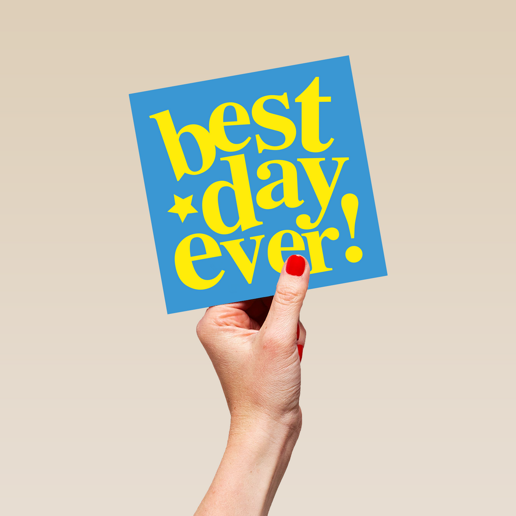 Printed on premium-quality board, this card features a blue background and bold text, with the message 'Best Day Ever', and comes complete with a co-ordinating white envelope.